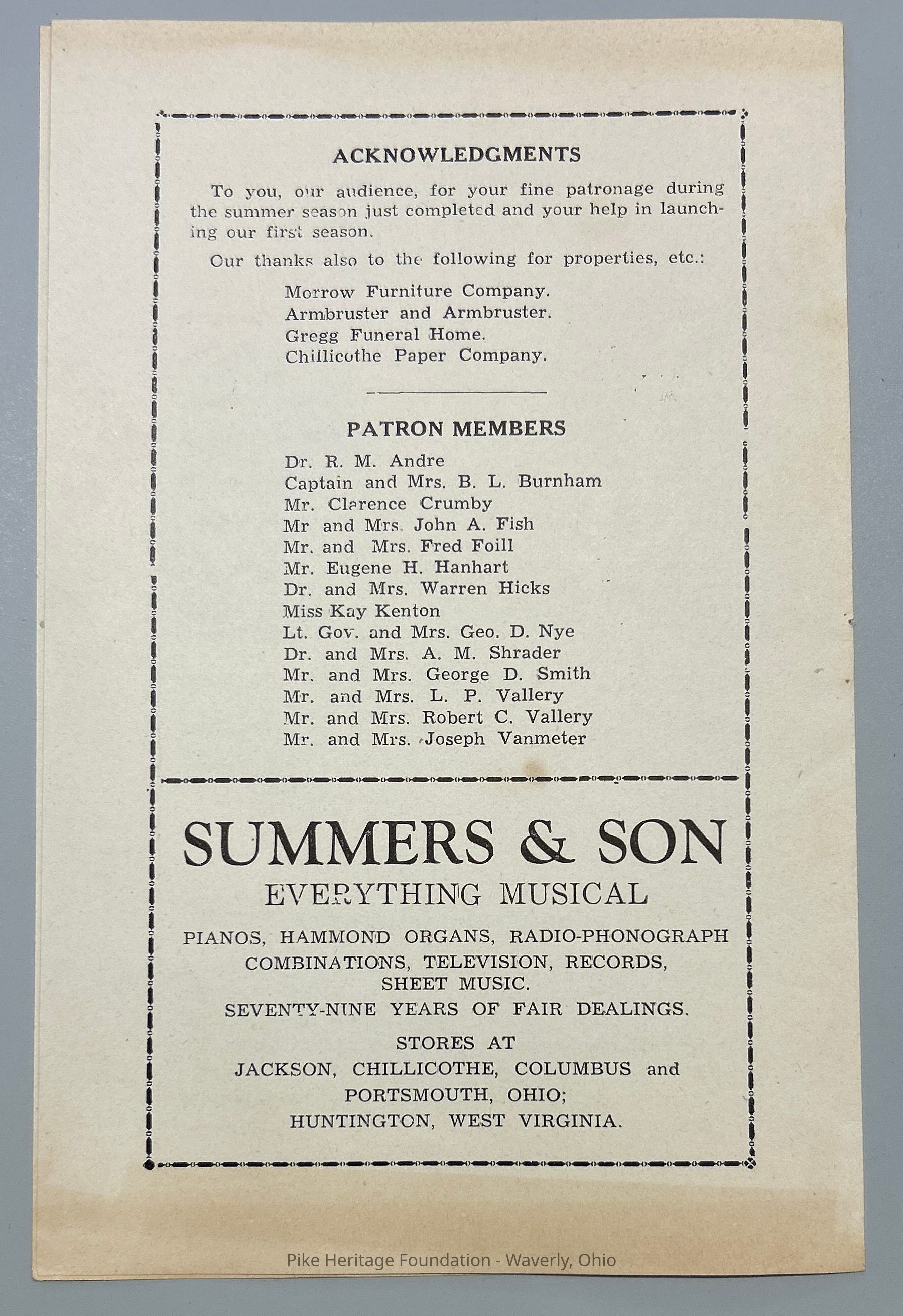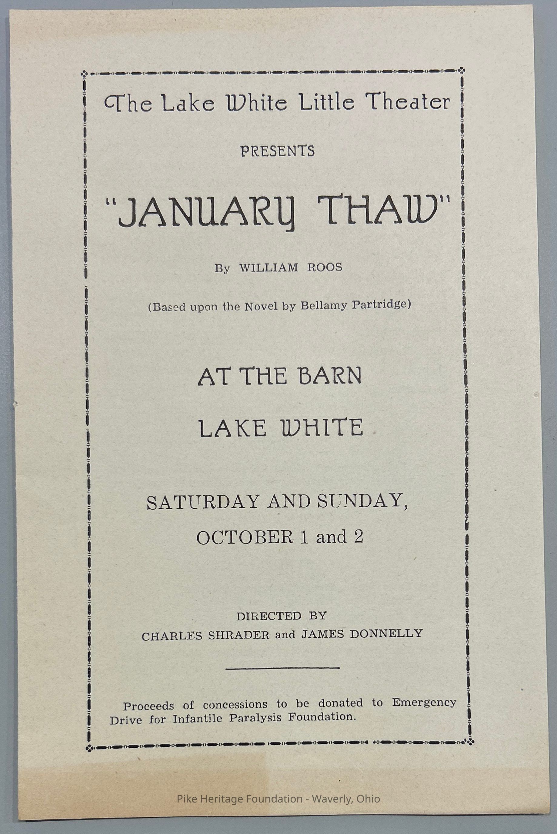 Program for the Lake White Little Theater play entitled “January Thaw” held October 1949.Collection