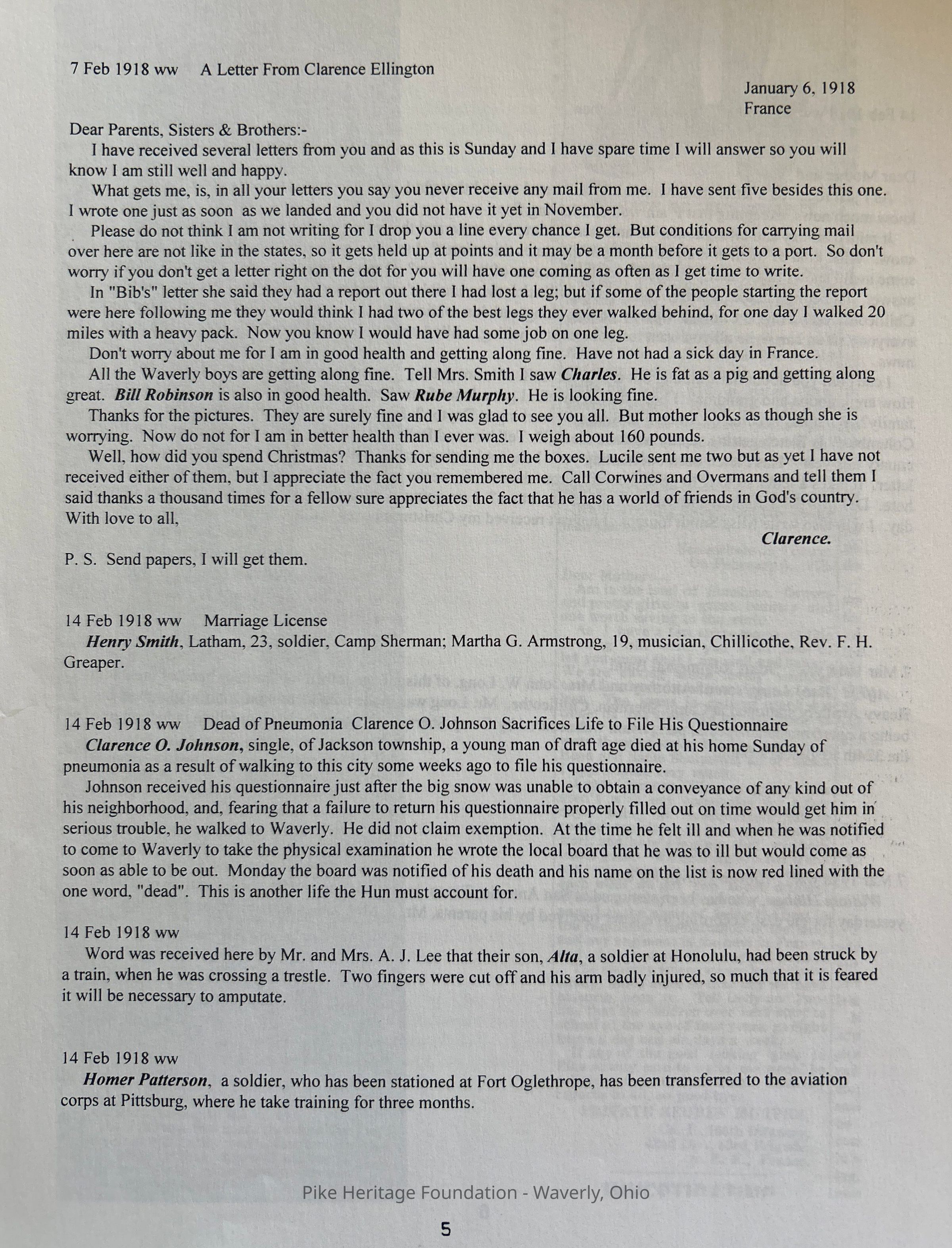 Abstracts from the Waverly Watchaman newspaper – 1918Entry/Object ID