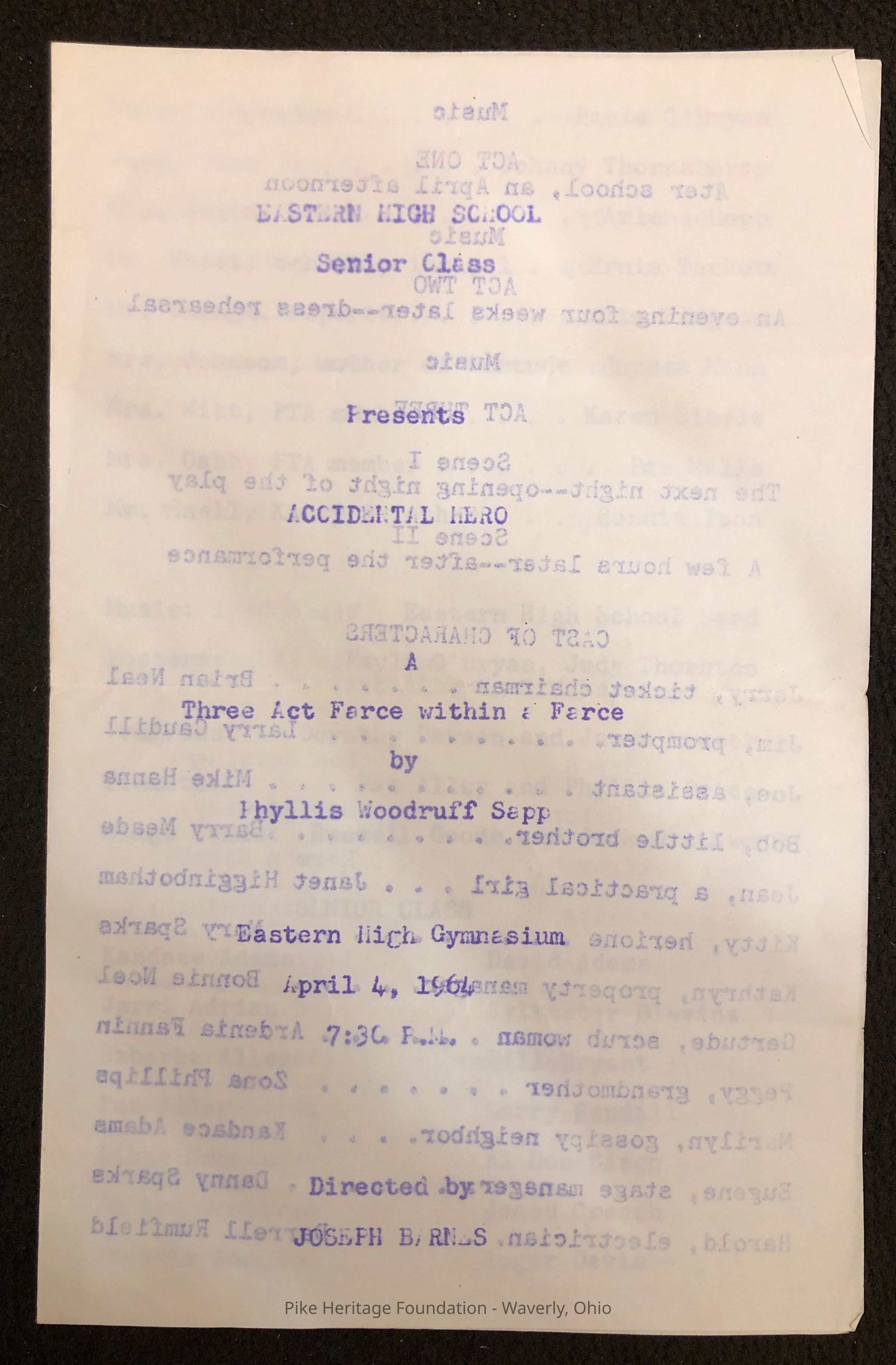Eastern High School Senior Class Play “Accidental Hero” - 1964Entry/Object ID