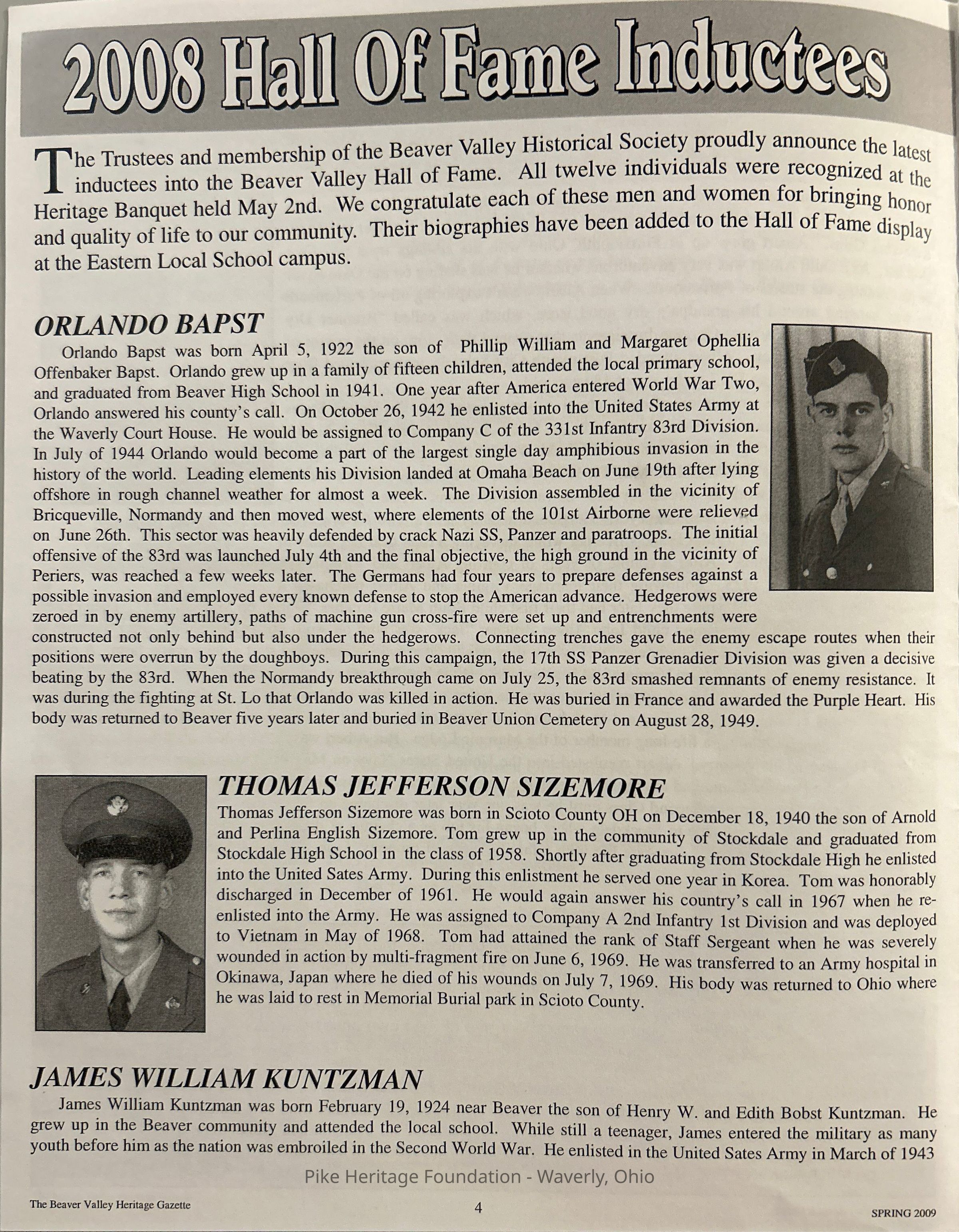 The Beaver Valley Heritage Gazette - Spring 2009Entry/Object ID
