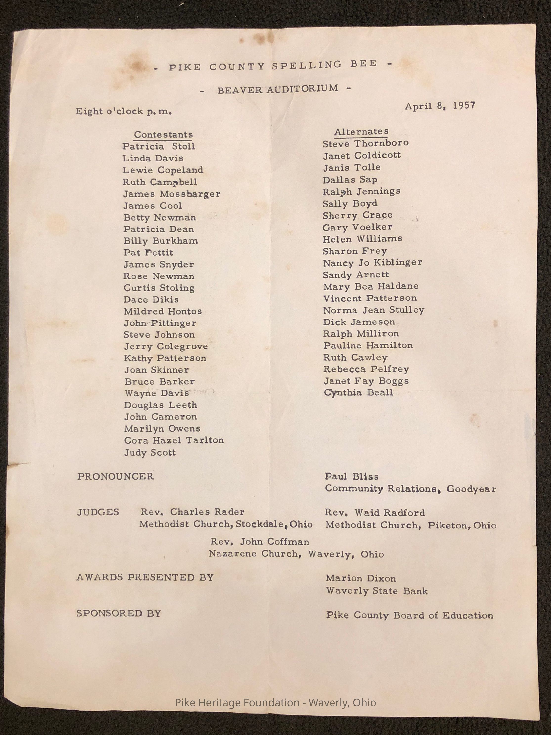 Pike County Spelling Bee Program - 1957Entry/Object ID