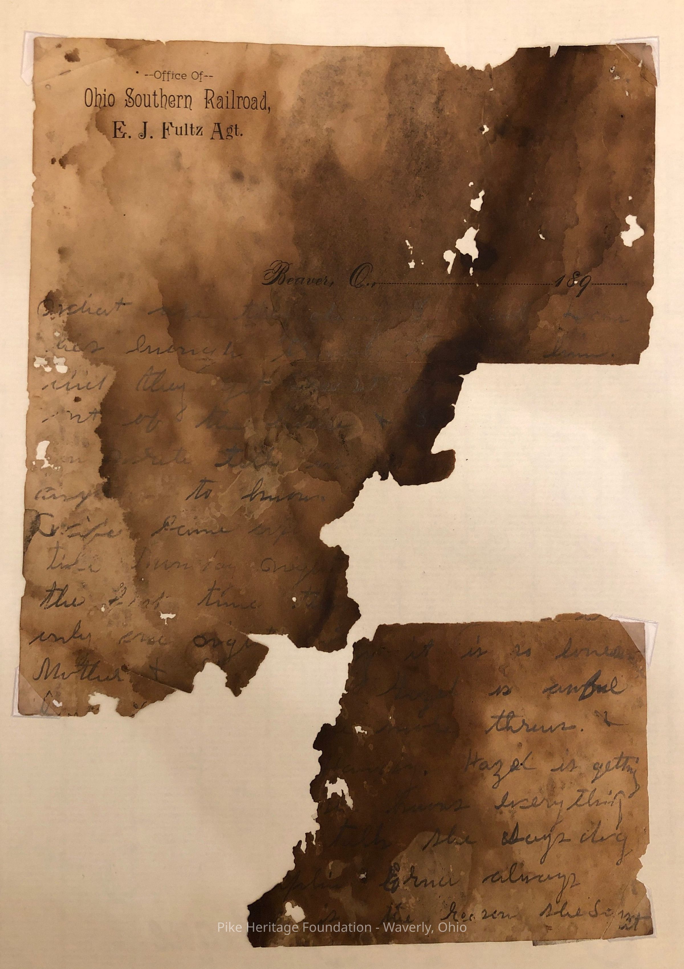 19th century stationary from the Ohio Southern Railroad Company depot in Beaver, Ohio. E. J. Faulzt was the station agent in the 1890s.Collection