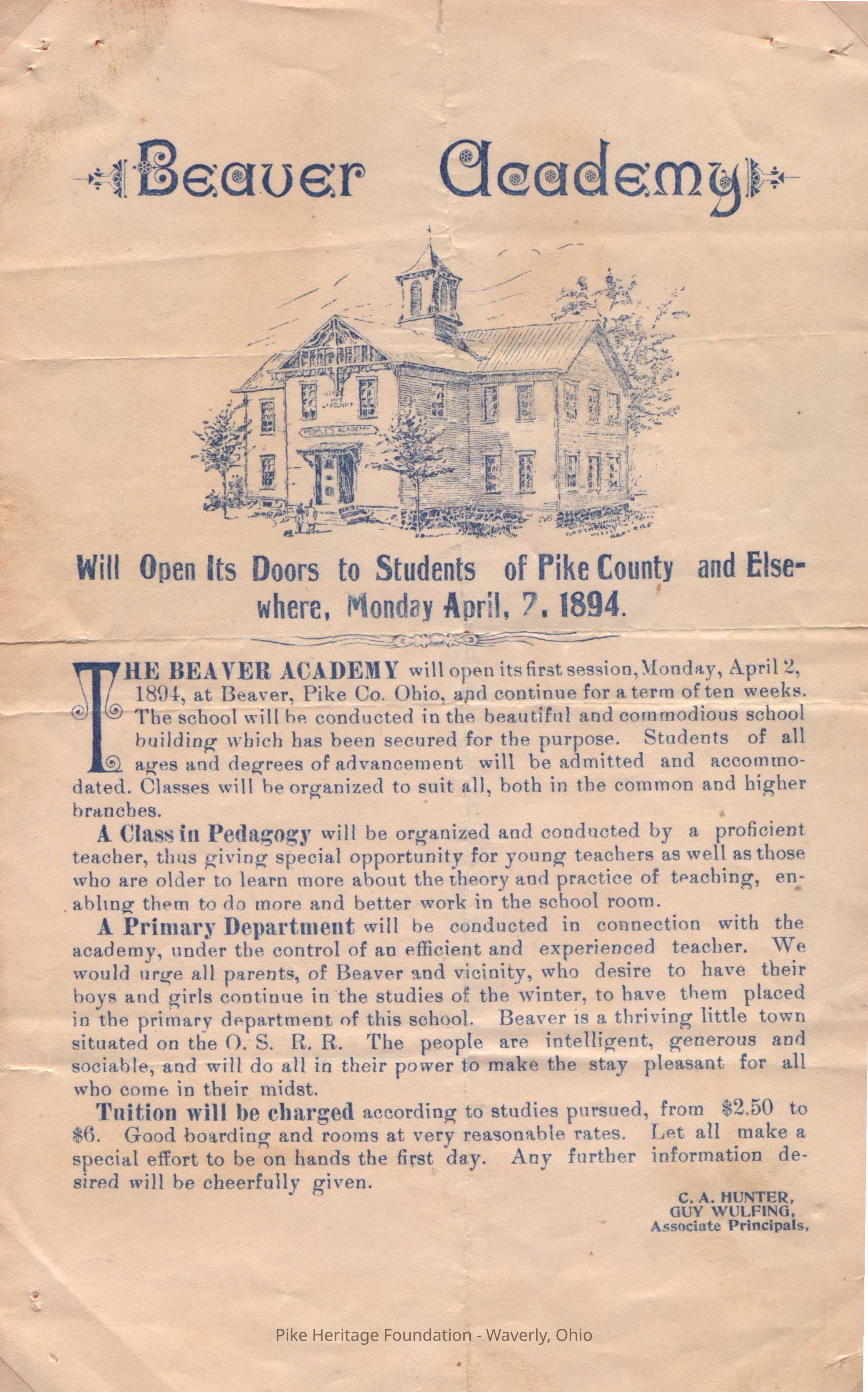 Beaver Academy Advertisement - 1894Entry/Object ID