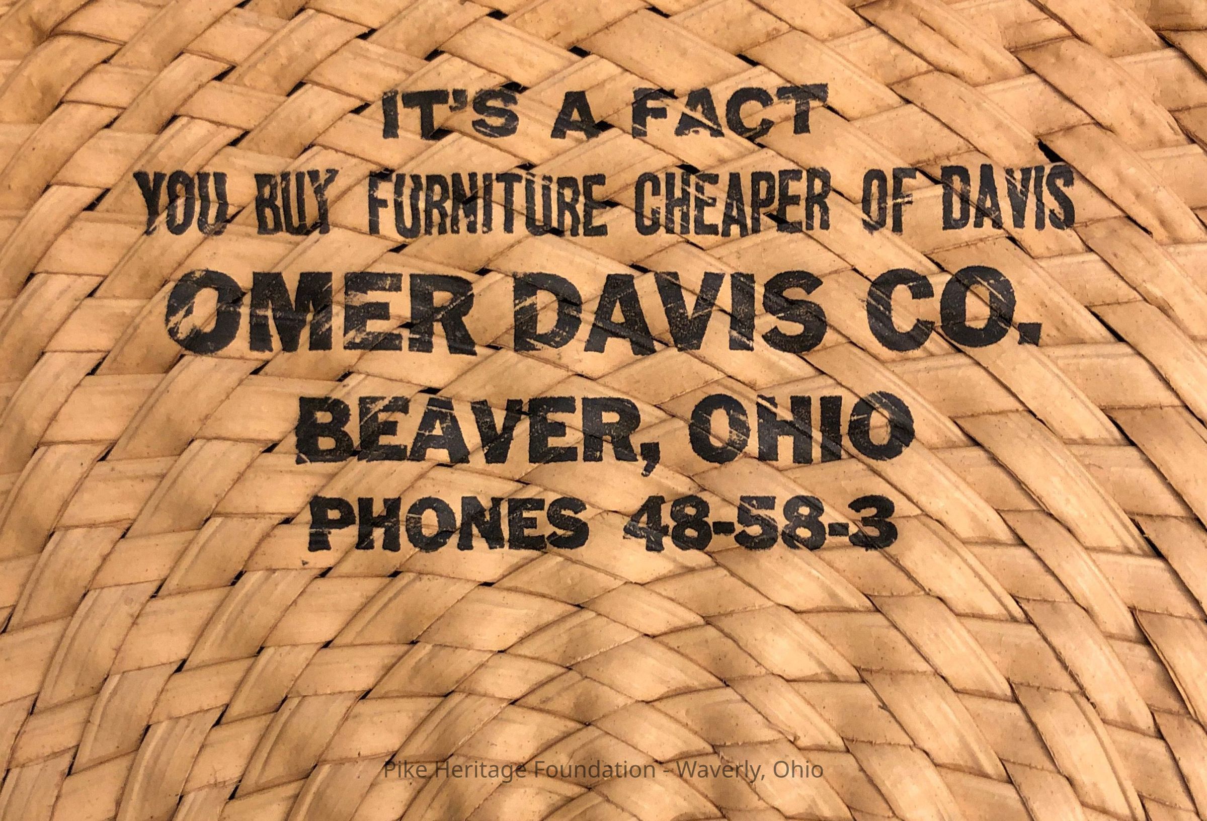 Omer Davis Company wicker fan advertising his furniture and undertaking business located on Main Street in Beaver, Ohio.Collection