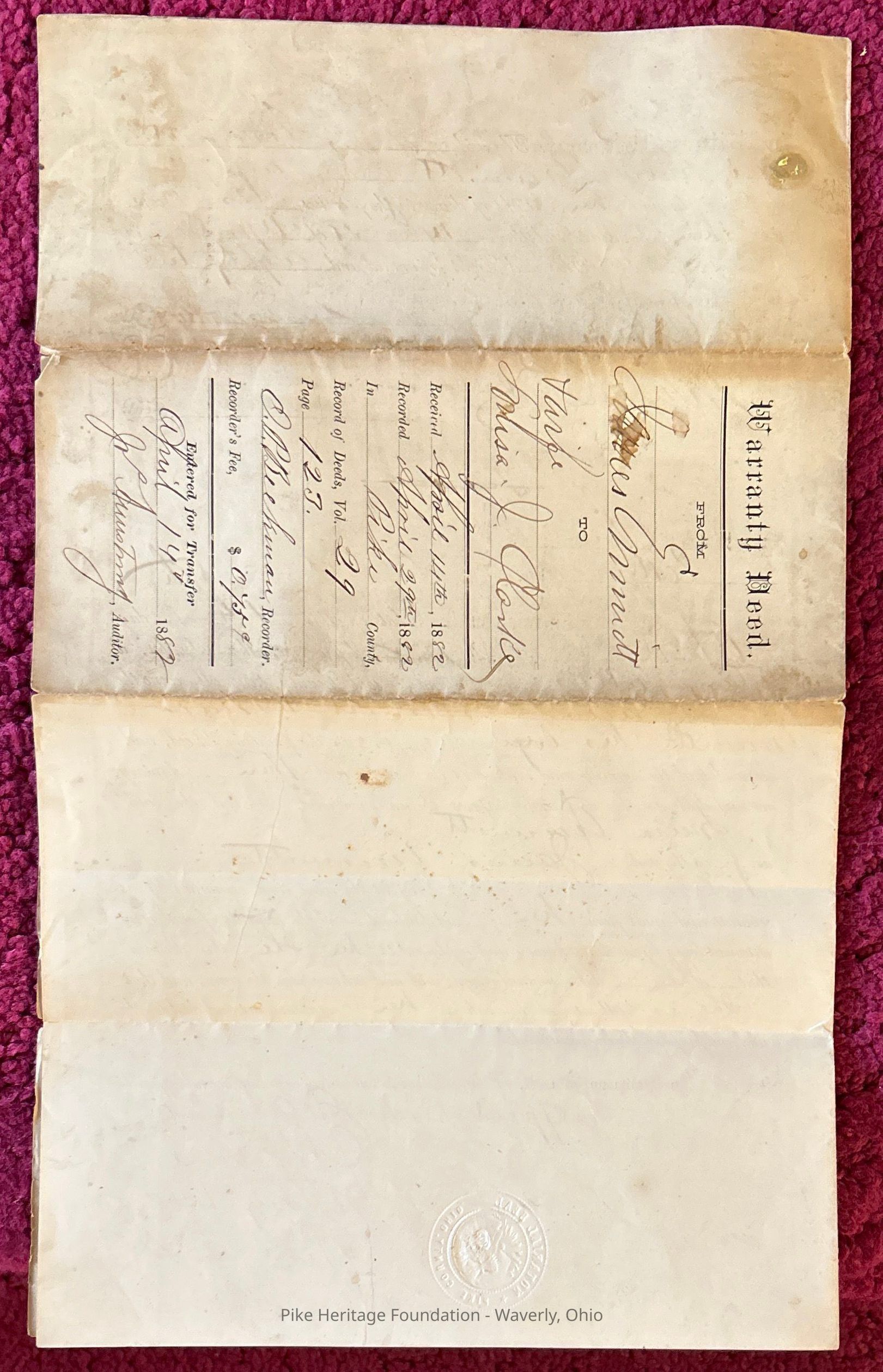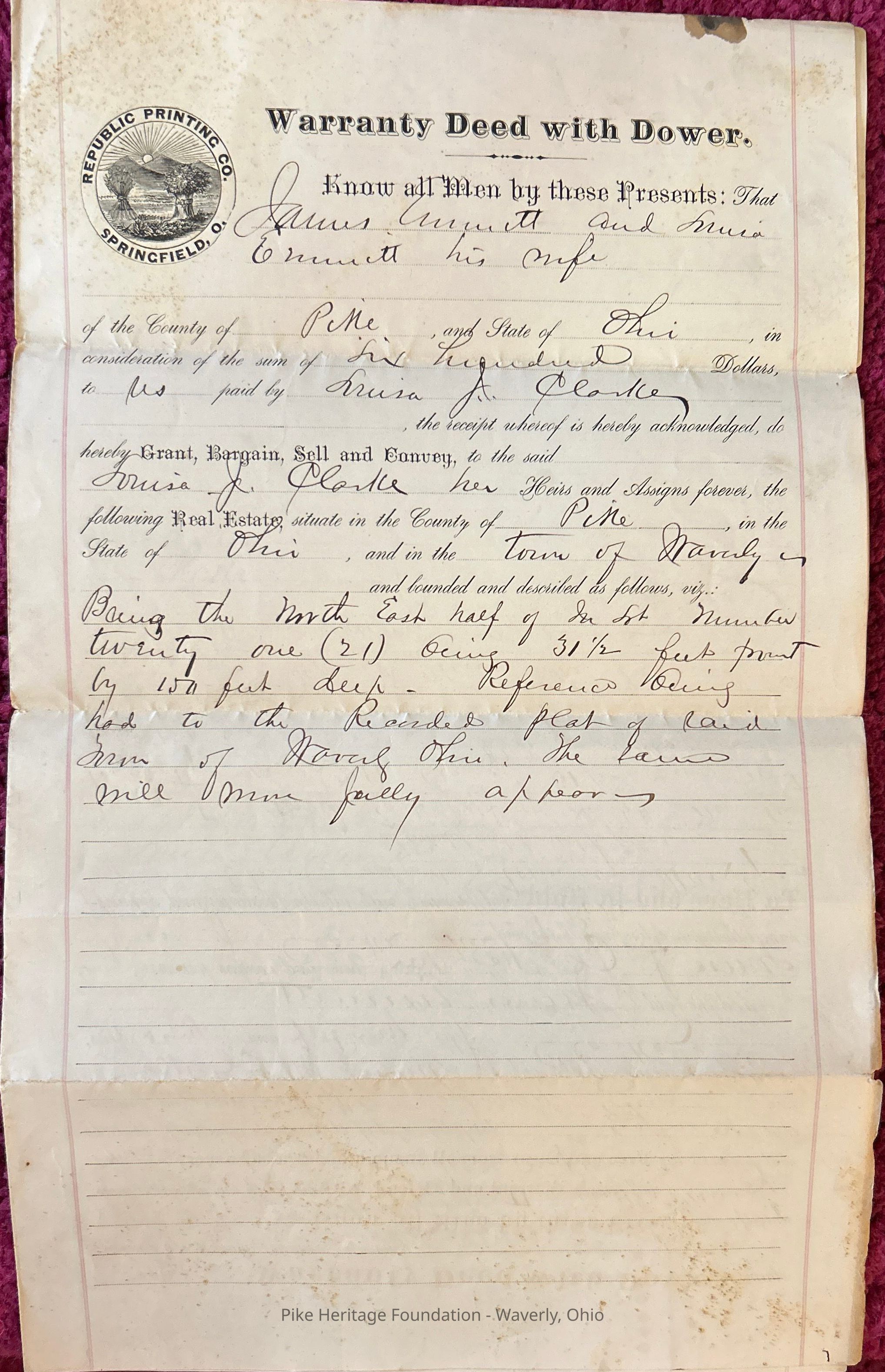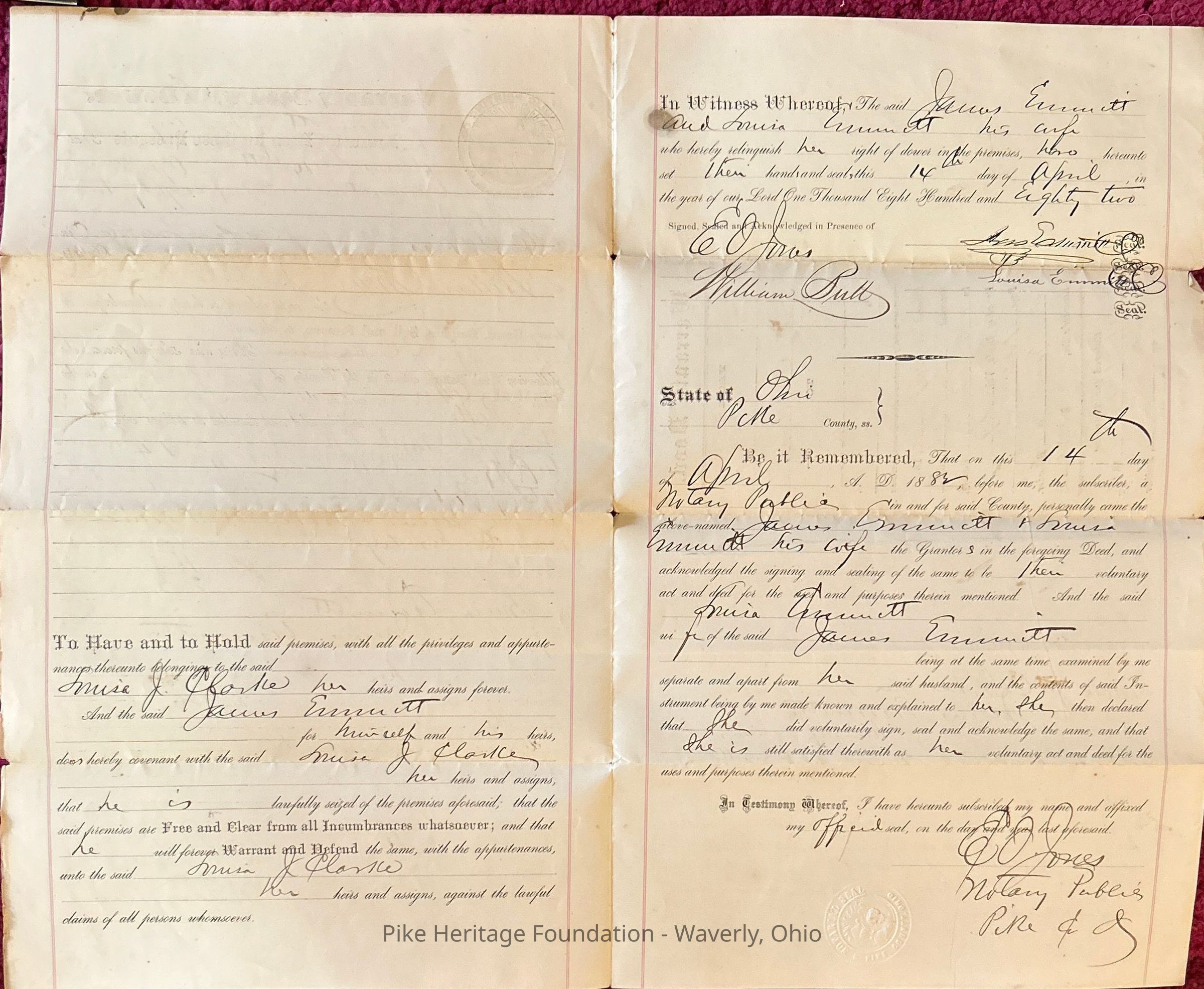 Land deed from James Emmitt to Louisa Clark dated April 1882.Create Date