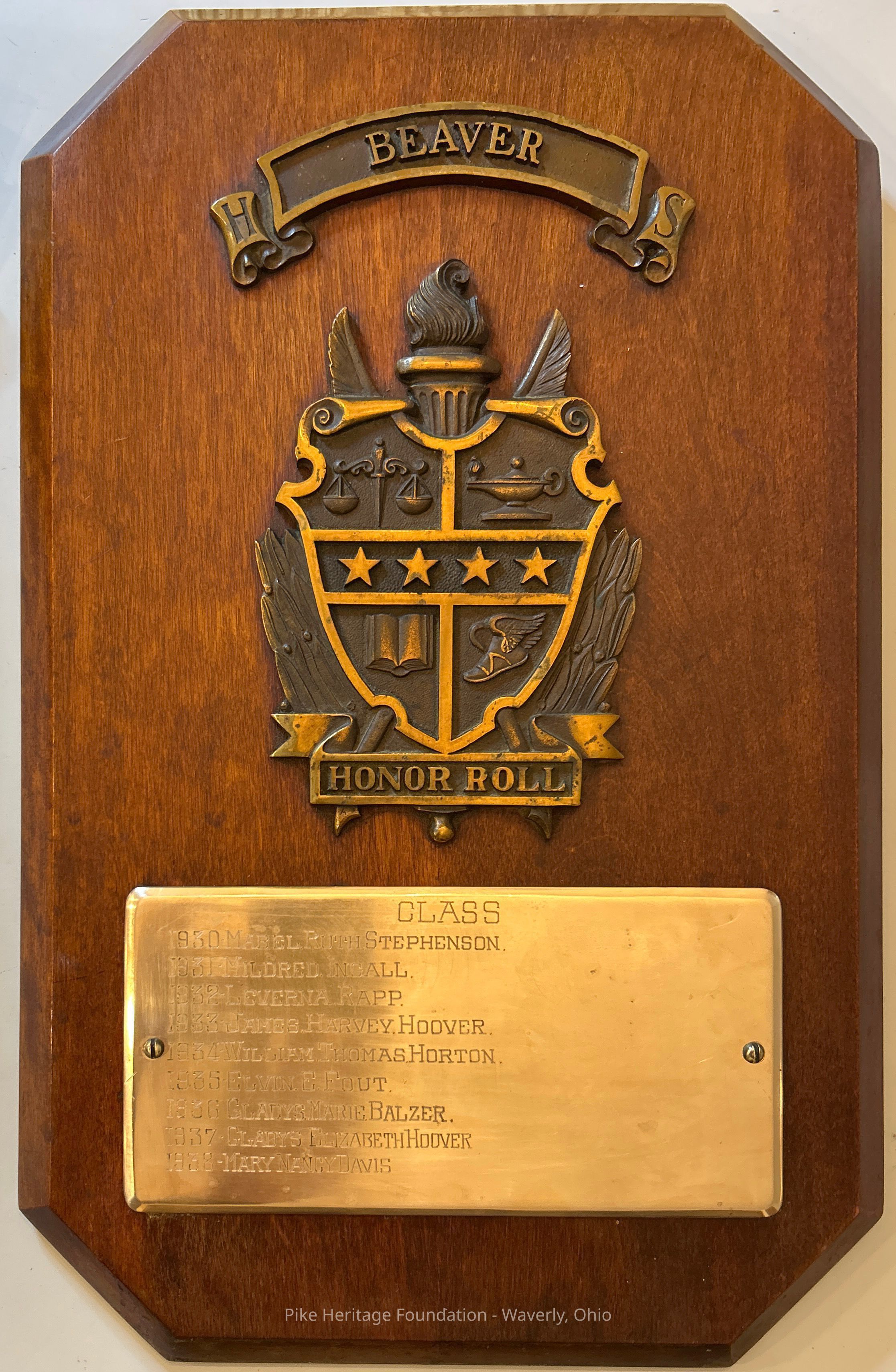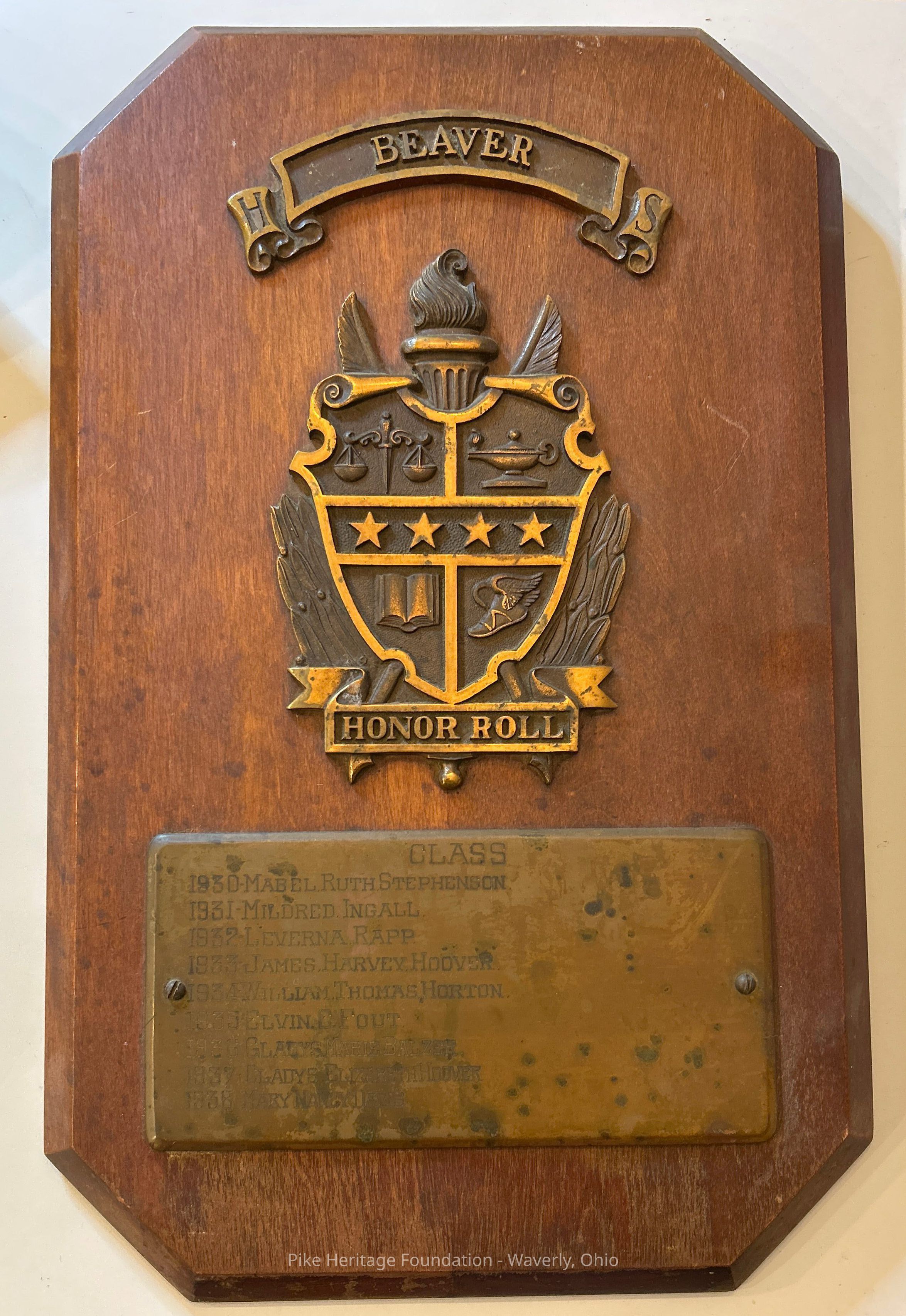 Beaver High School Honor Roll Plaque - 1930Entry/Object ID