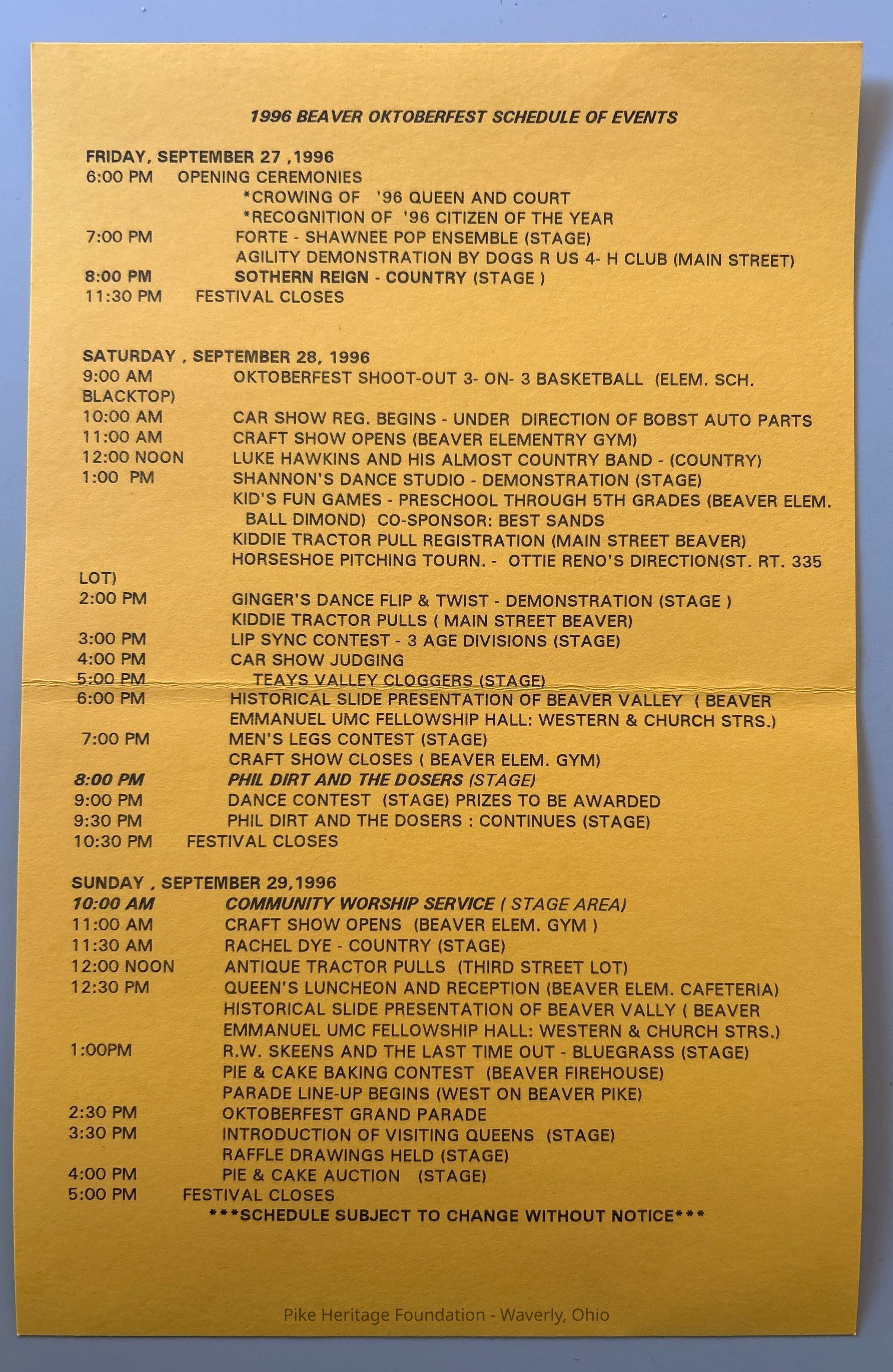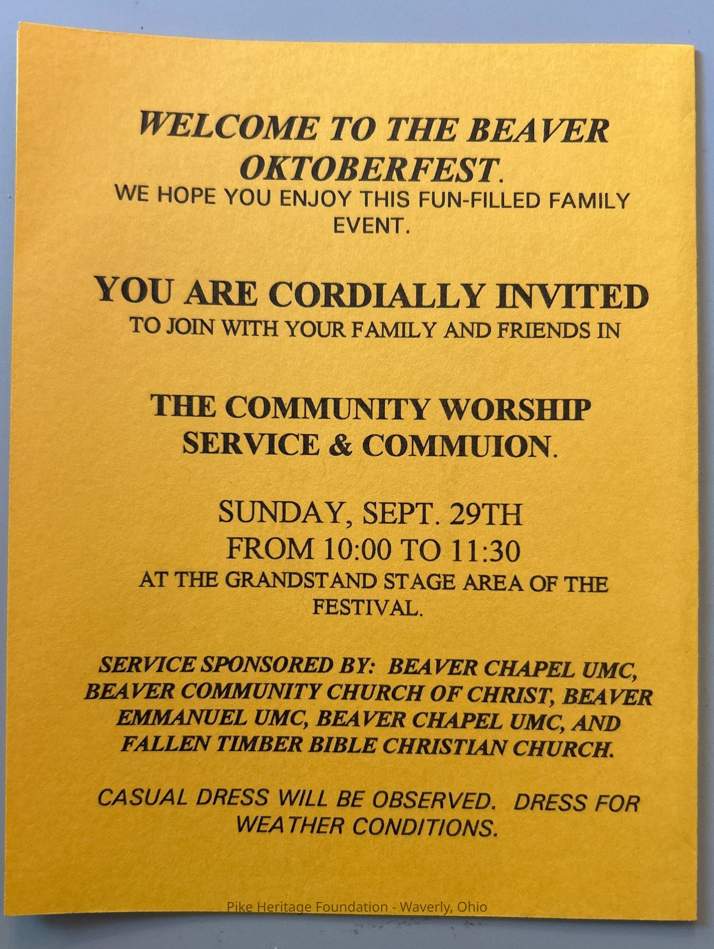1996 Beaver Oktoberfest ProgramEntry/Object ID