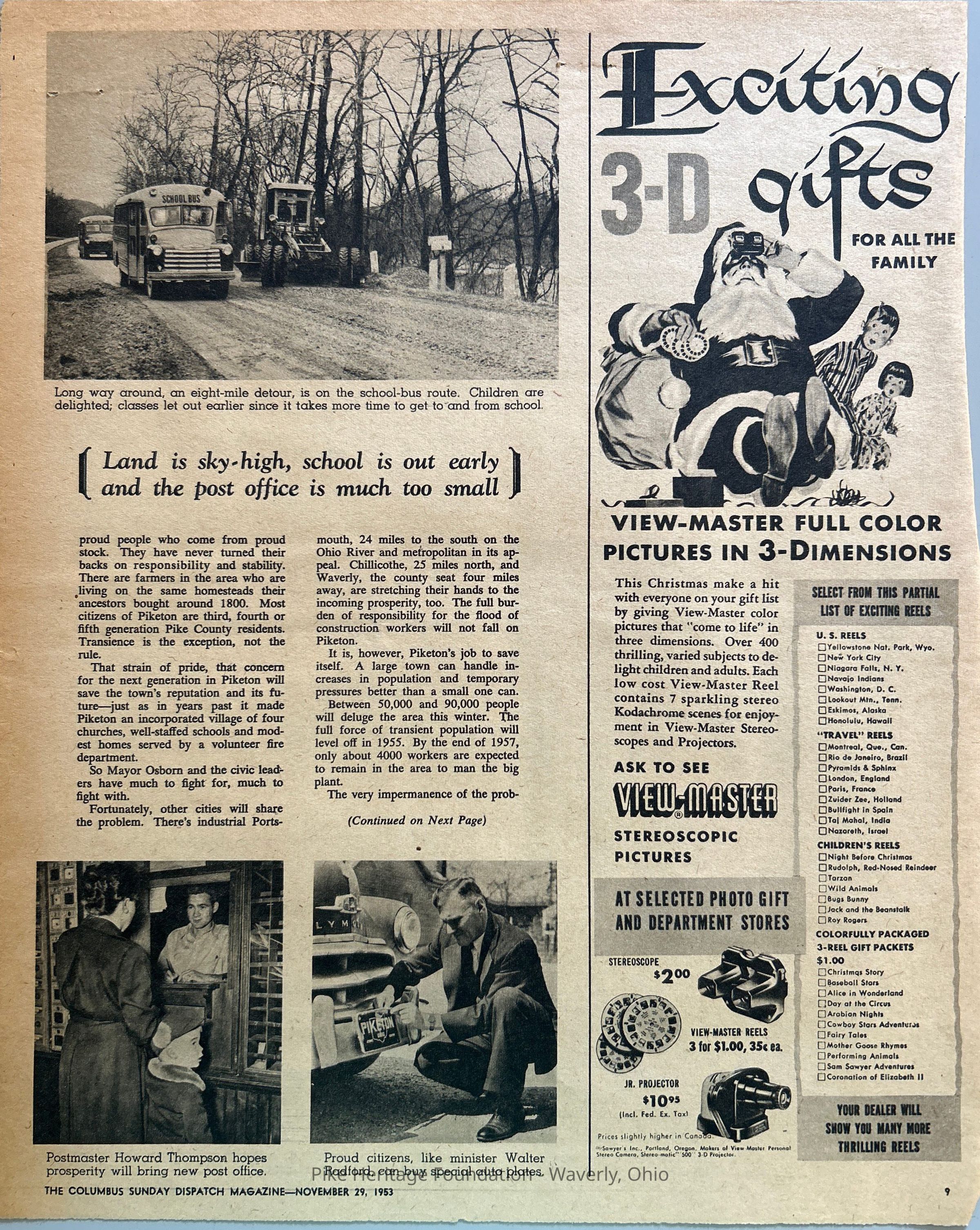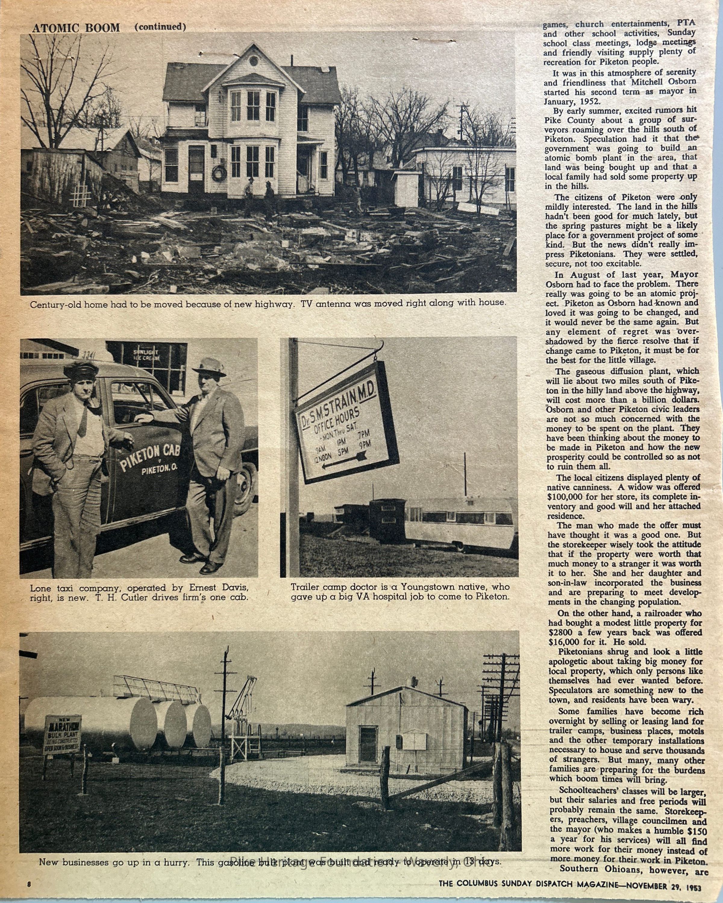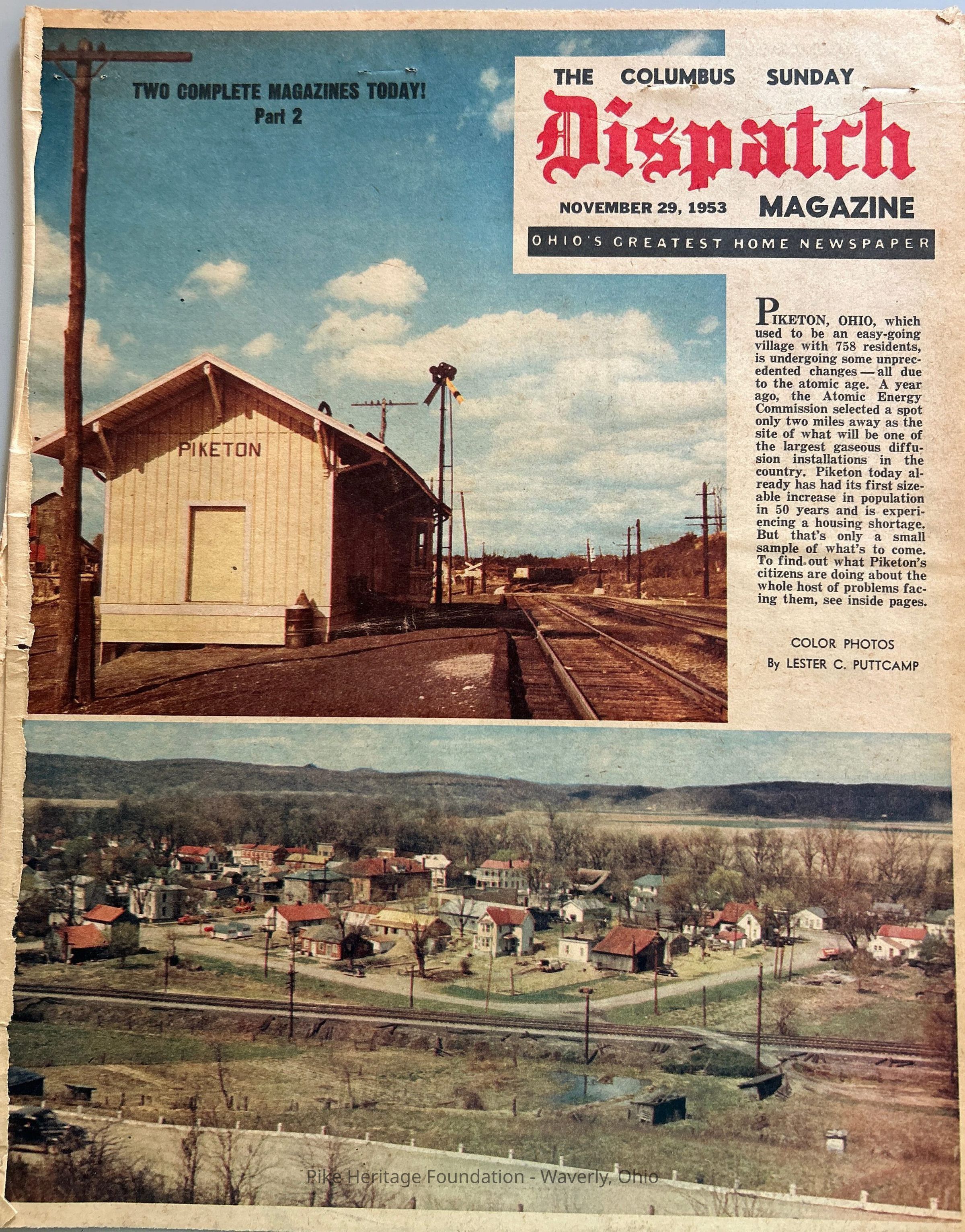 Magazine insert about the progress and change encountered by Pike County one year after the announcement of the construction of the U. S. Government atomic plant.Collection