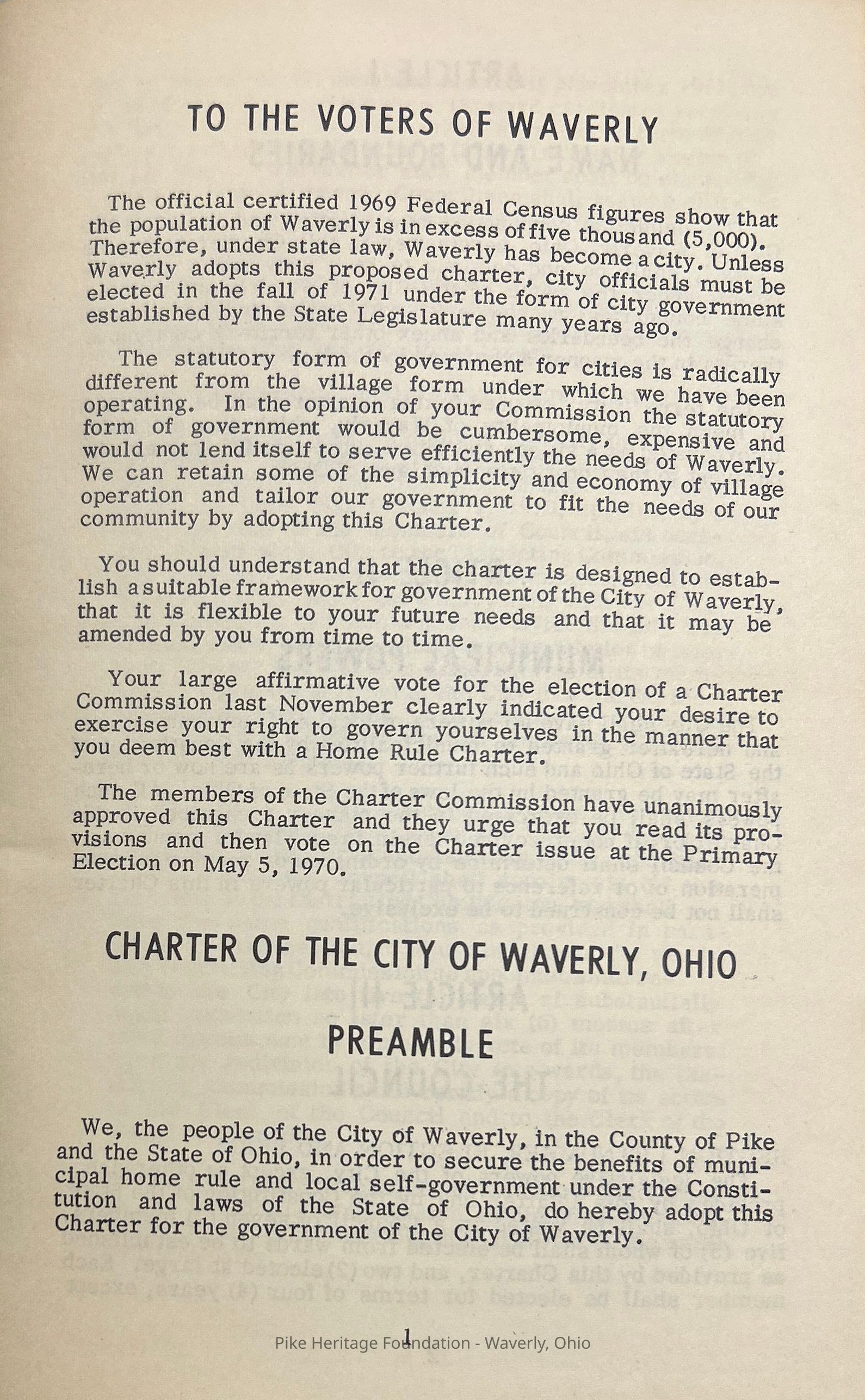 Booklet printed for the general public describing the government structure duly approved in 1970 by an election held May 5,1970.Acquisition