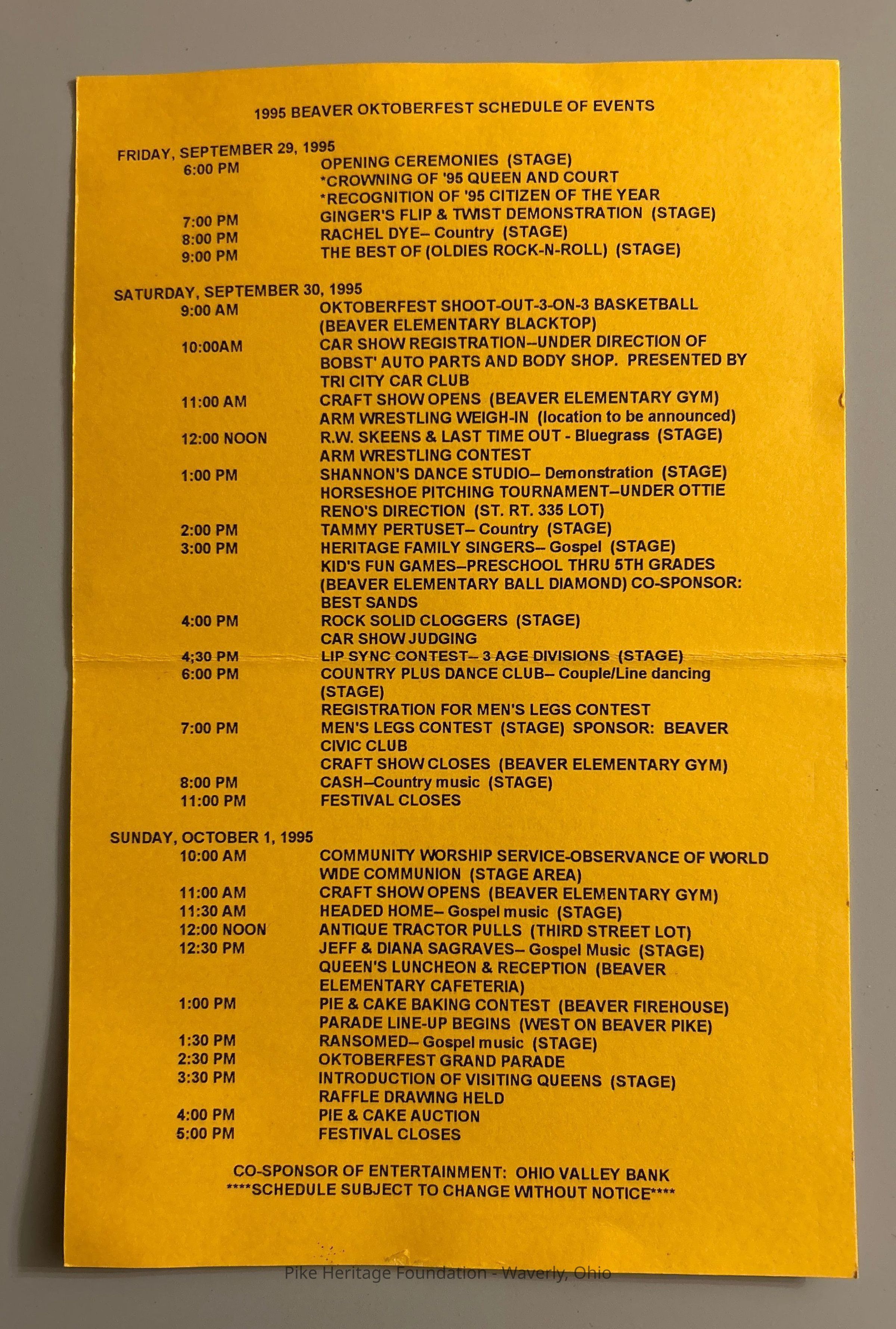 Beaver Oktoberfest Program - 1995Entry/Object ID