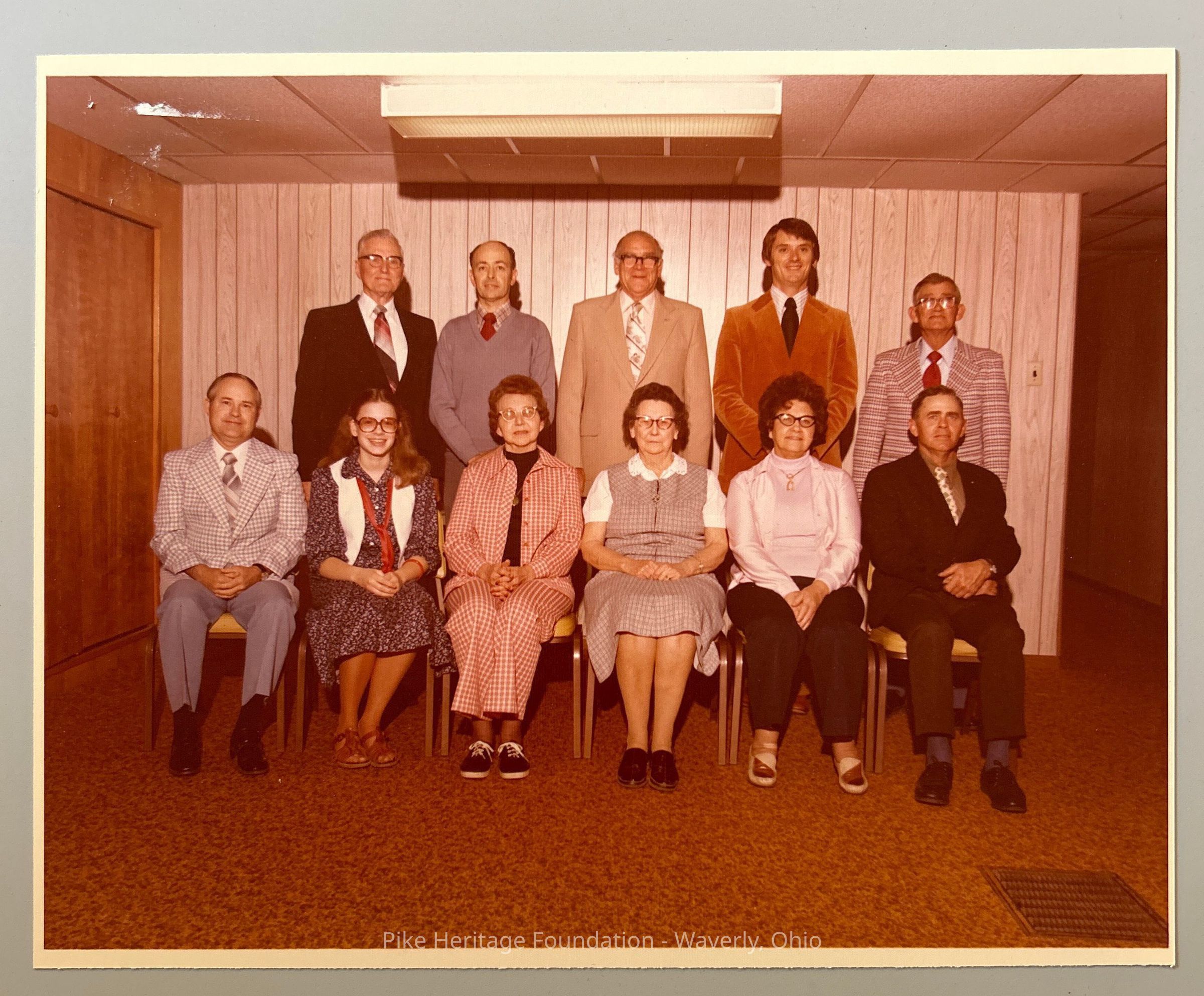 Sitting left to right: Thomas Dent, Vicki Overly, Georgia Cox, Loretta Halterman, Pauline Adam’s, and George Hendricks. Standing left to right: Rev. Waid Redford, Gene Brushart, Roy Manning, Rev. Ken Reagle, and Dick Blake.Collection