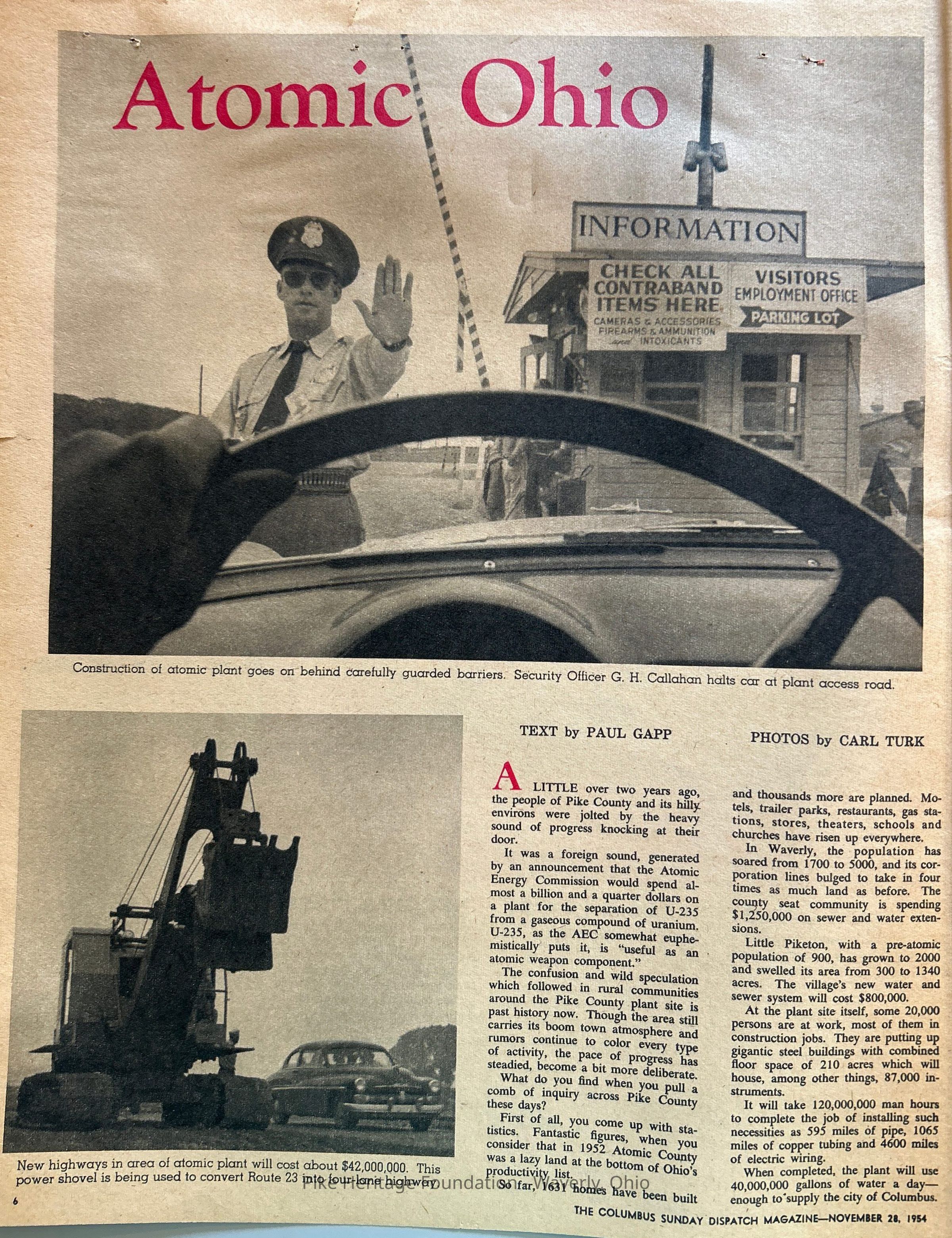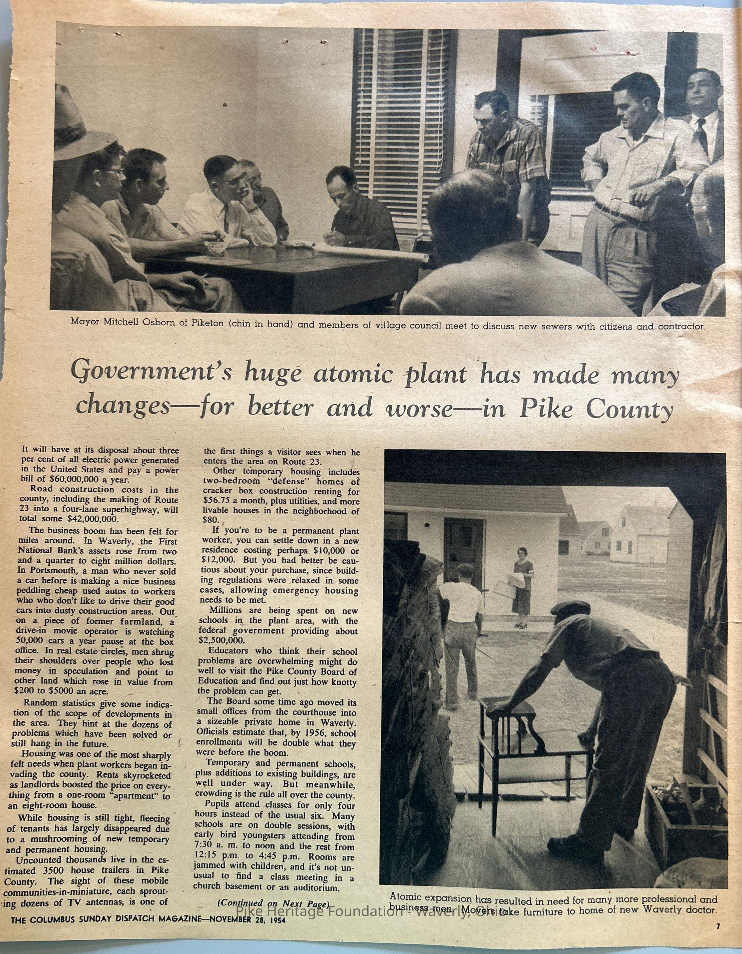 Magazine insert about the progress and change encountered by Pike County one year after the announcement of the construction of the U. S. Government atomic plant.Collection