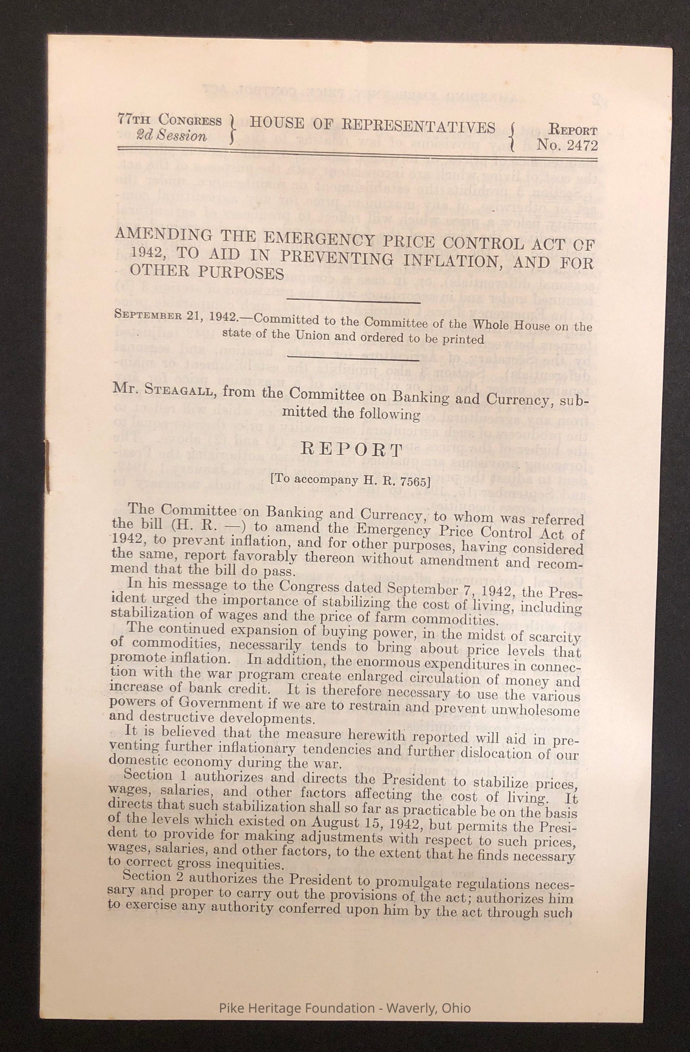 United States 77th Congress Emergency Price Control Act of 1942Entry/Object ID