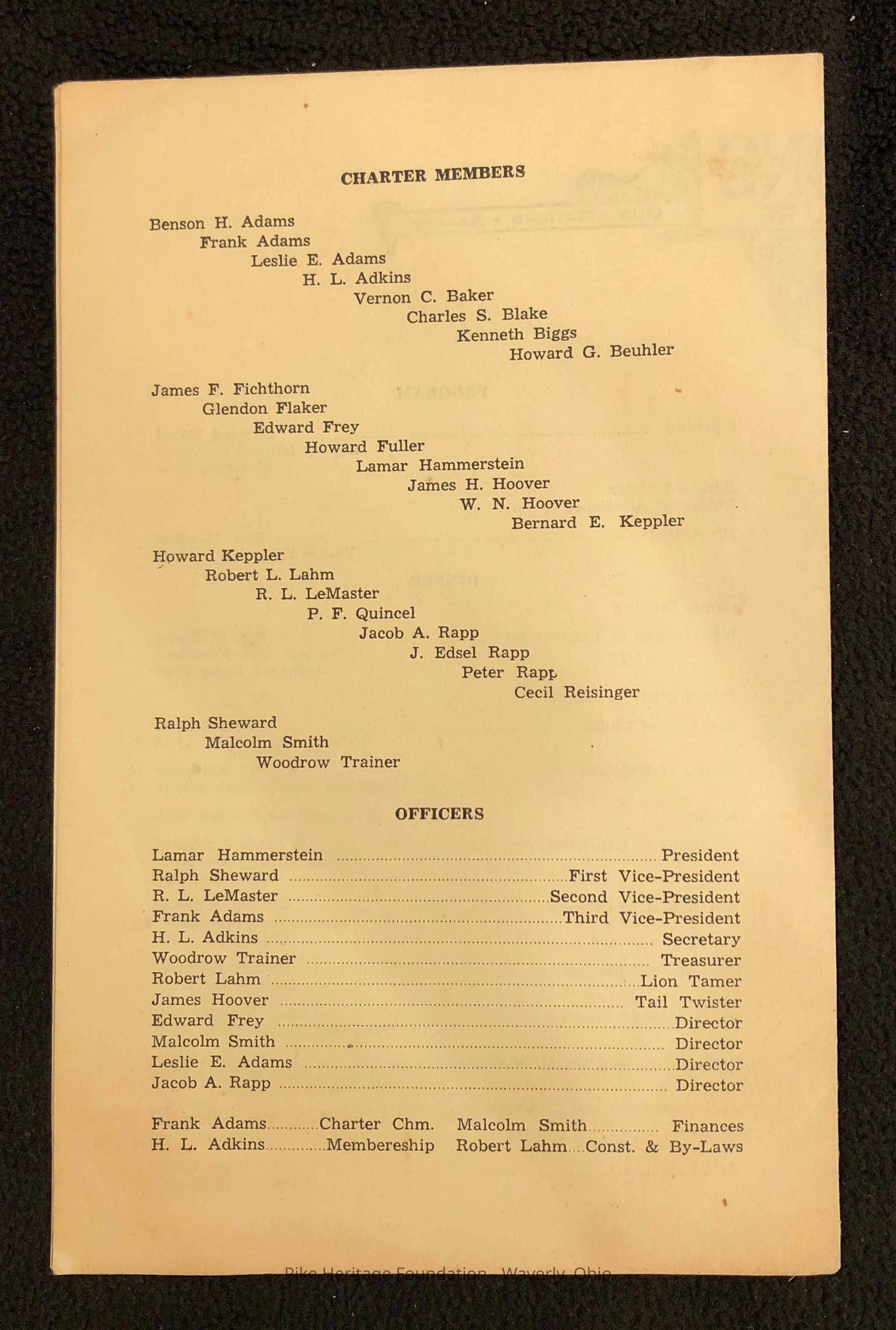 Beaver Lions Club Charter Night ProgramEntry/Object ID