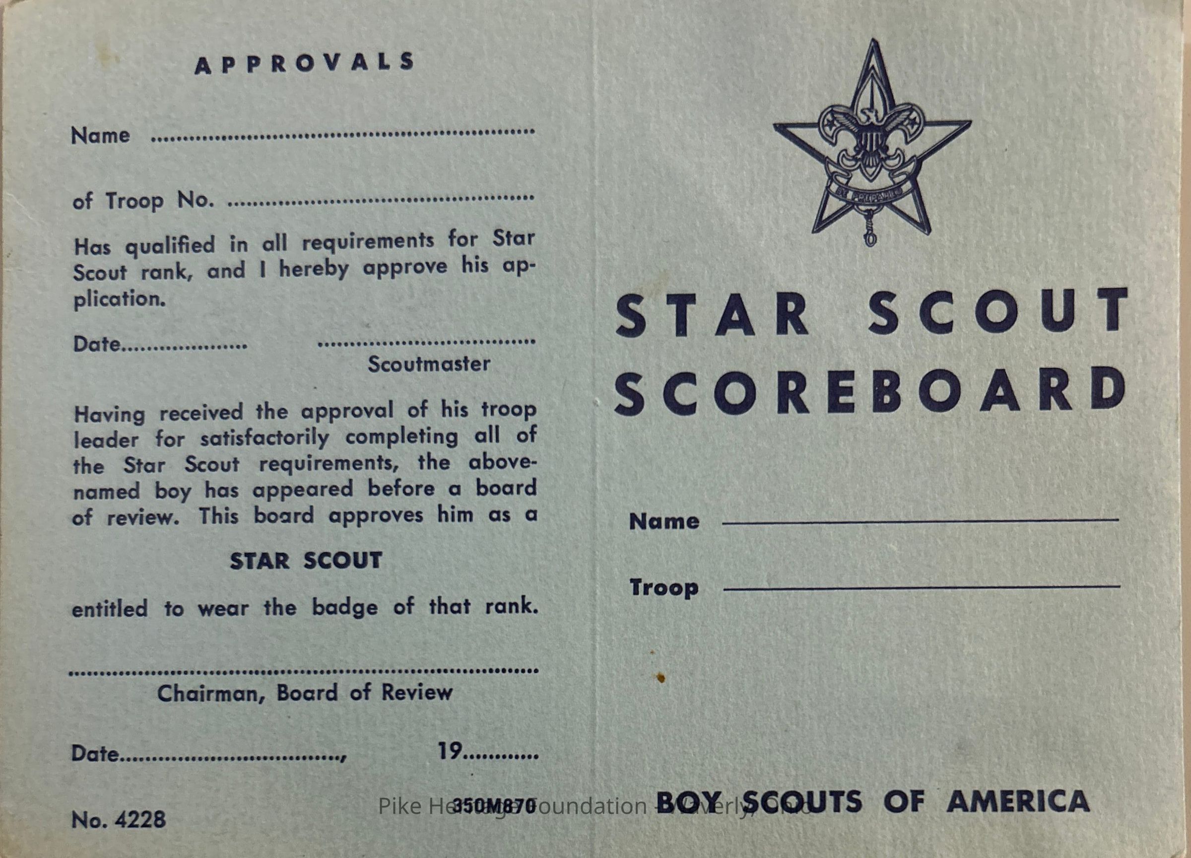 Boy Scout Rank ScorecardEntry/Object ID