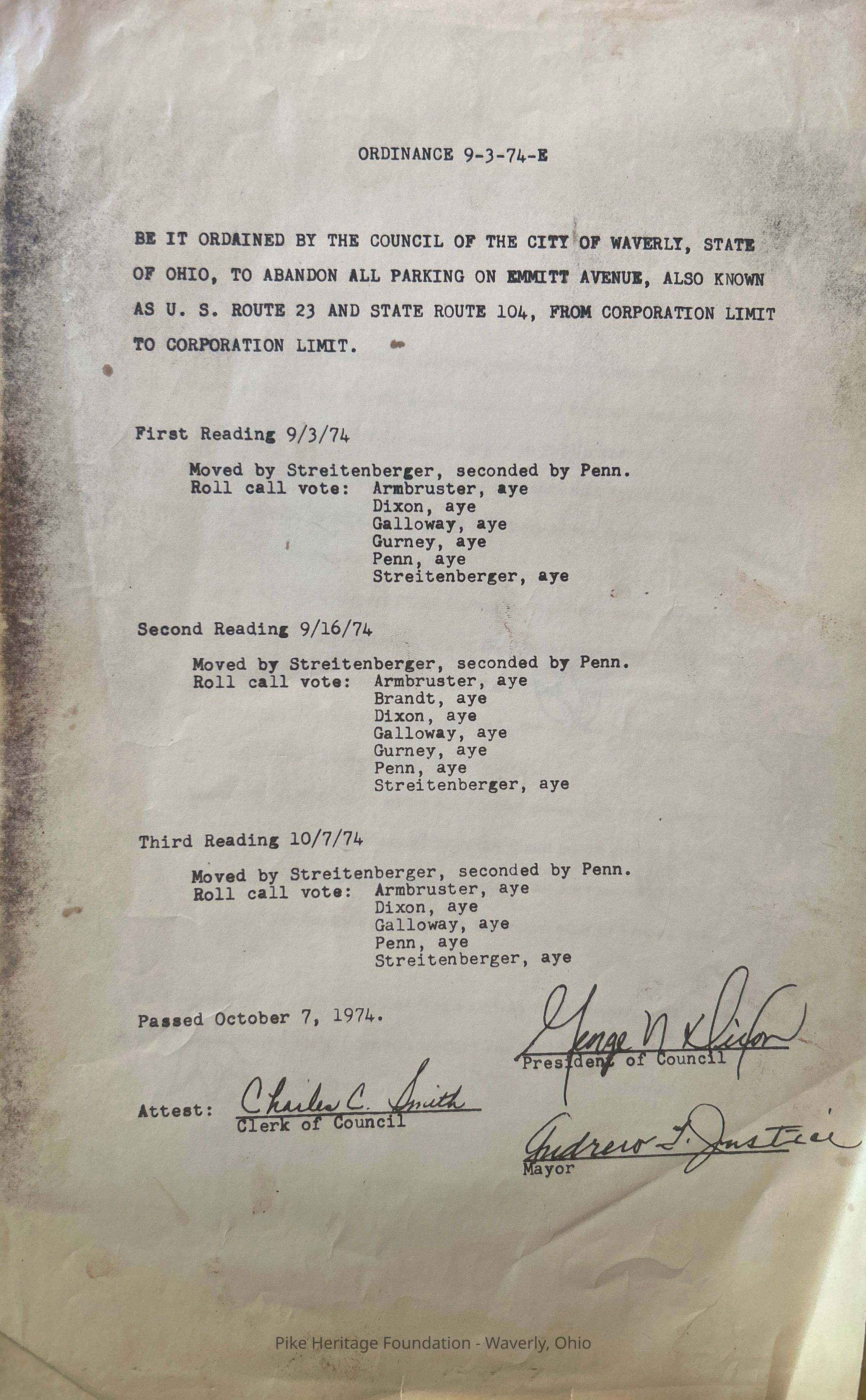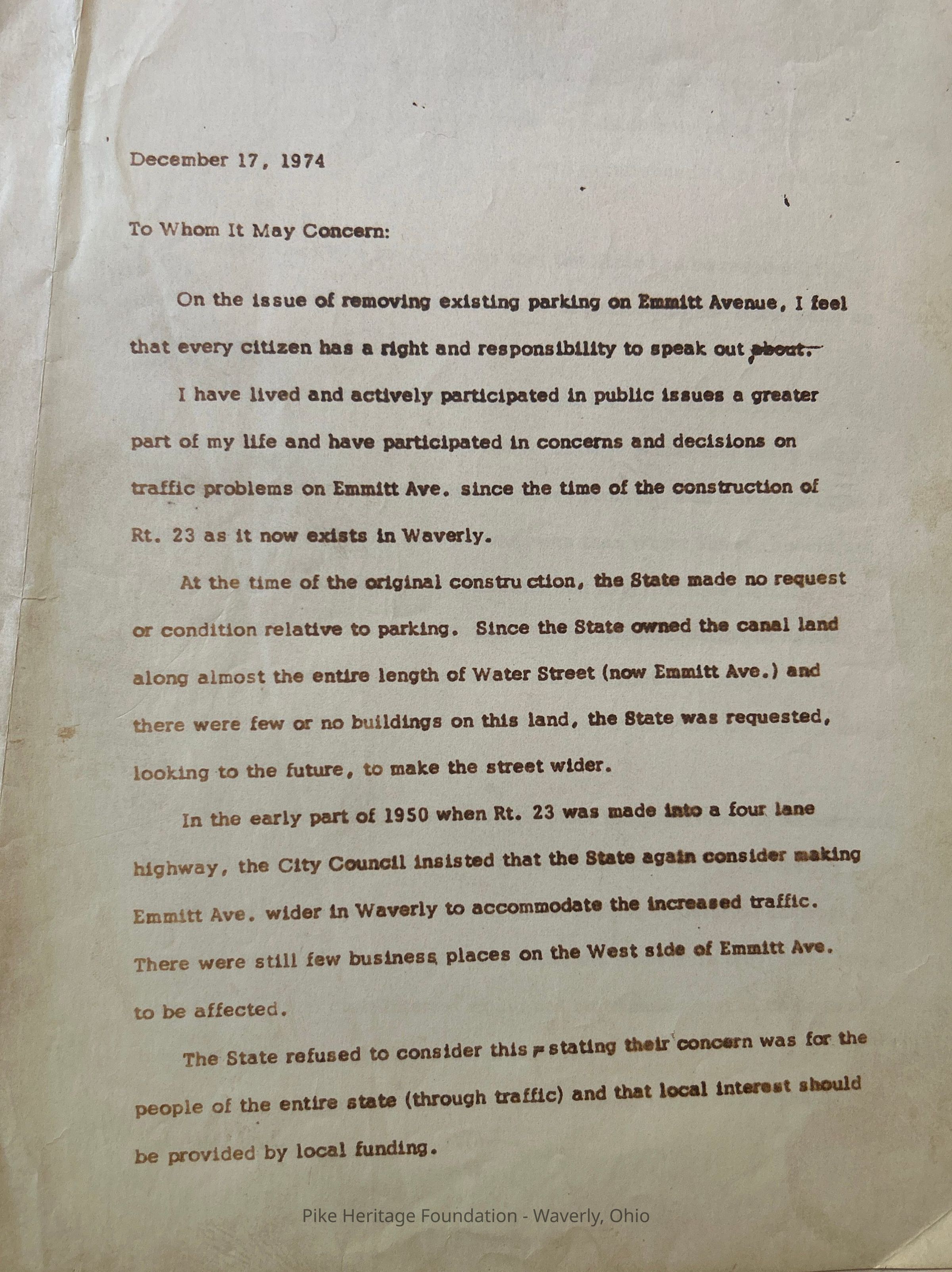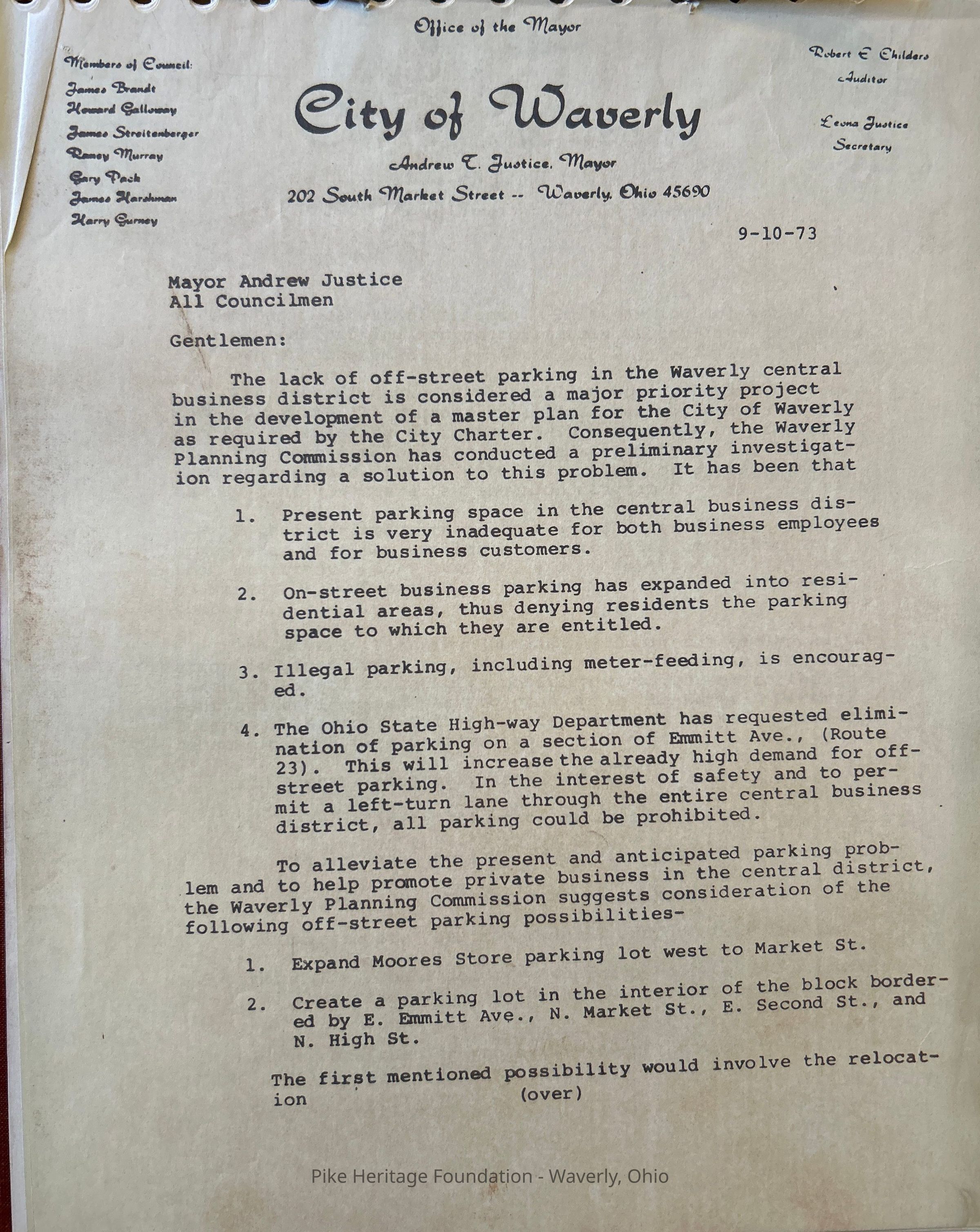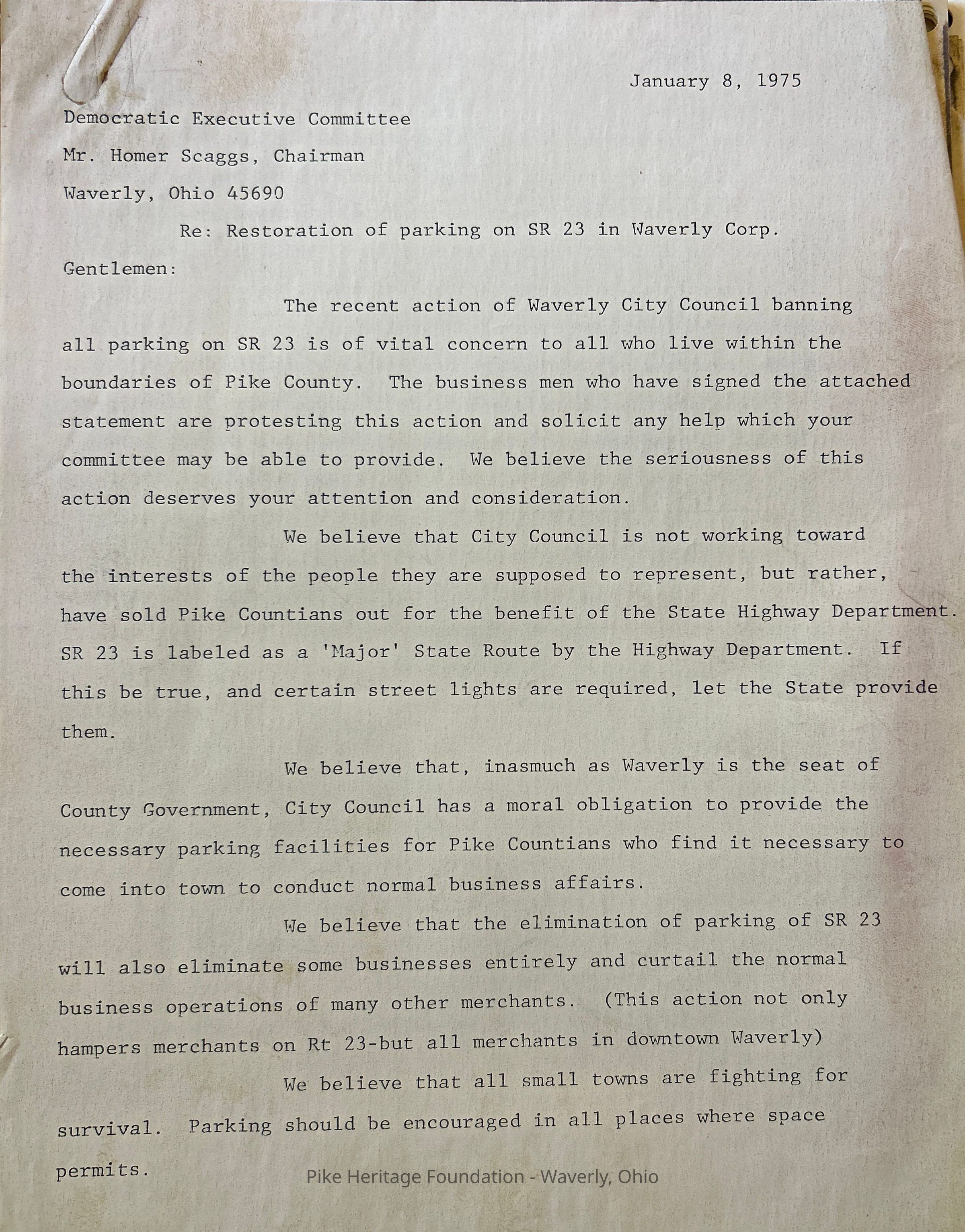 1975 legal papers pertains to parking issues in Waverly, OhioEntry/Object ID