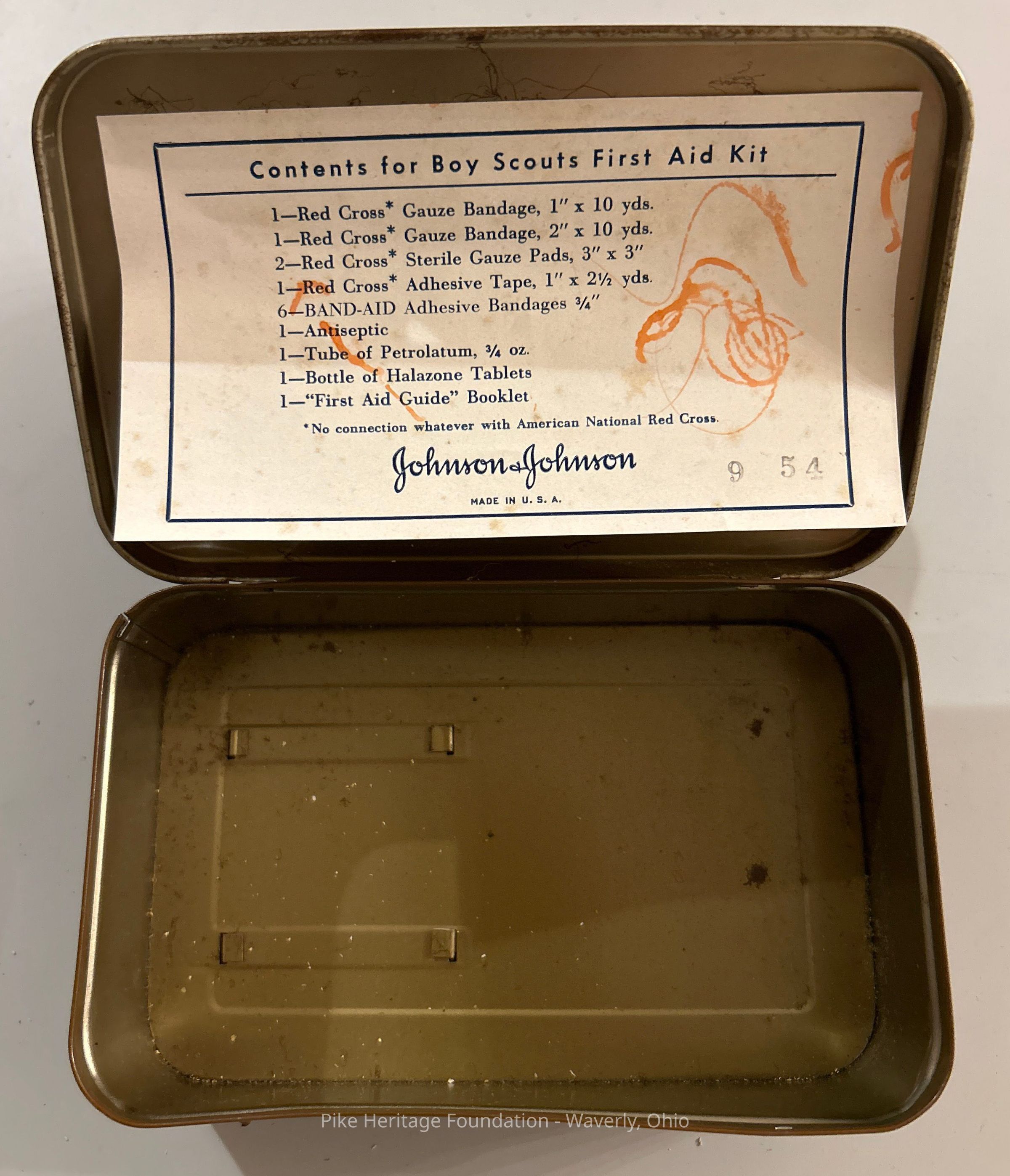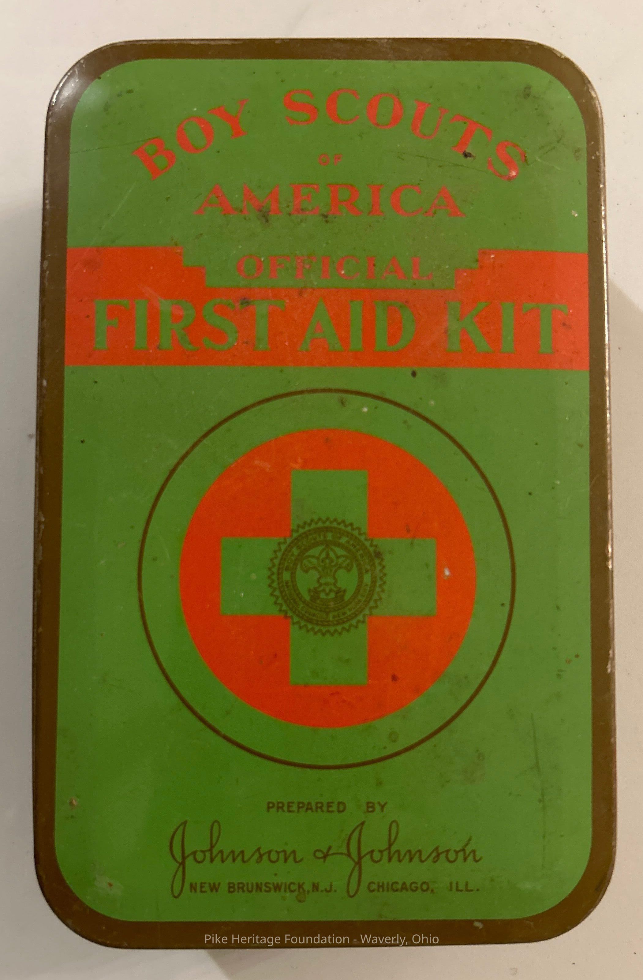 Tin first aid kit used by the Boy Scouts of America and prepared for by the Johnson & Johnson Company of Chicago Illinois.Collection