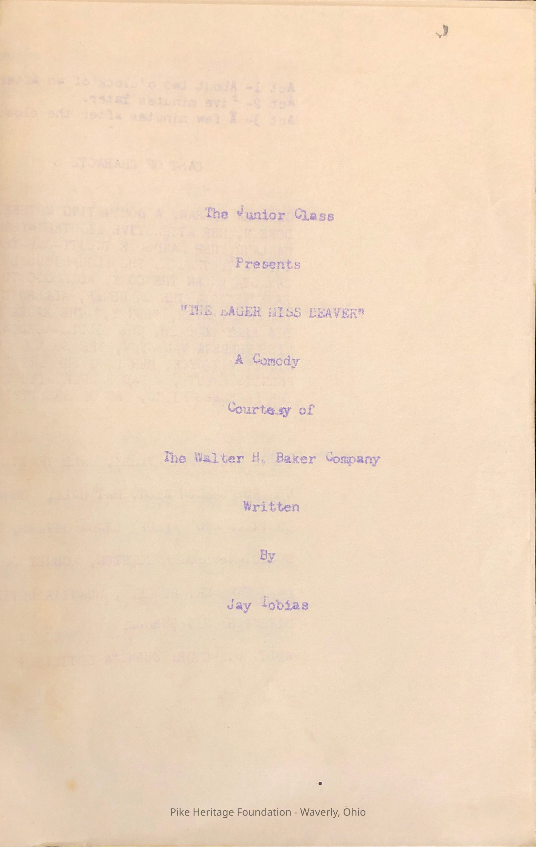 Beaver High School Class PlayEntry/Object ID