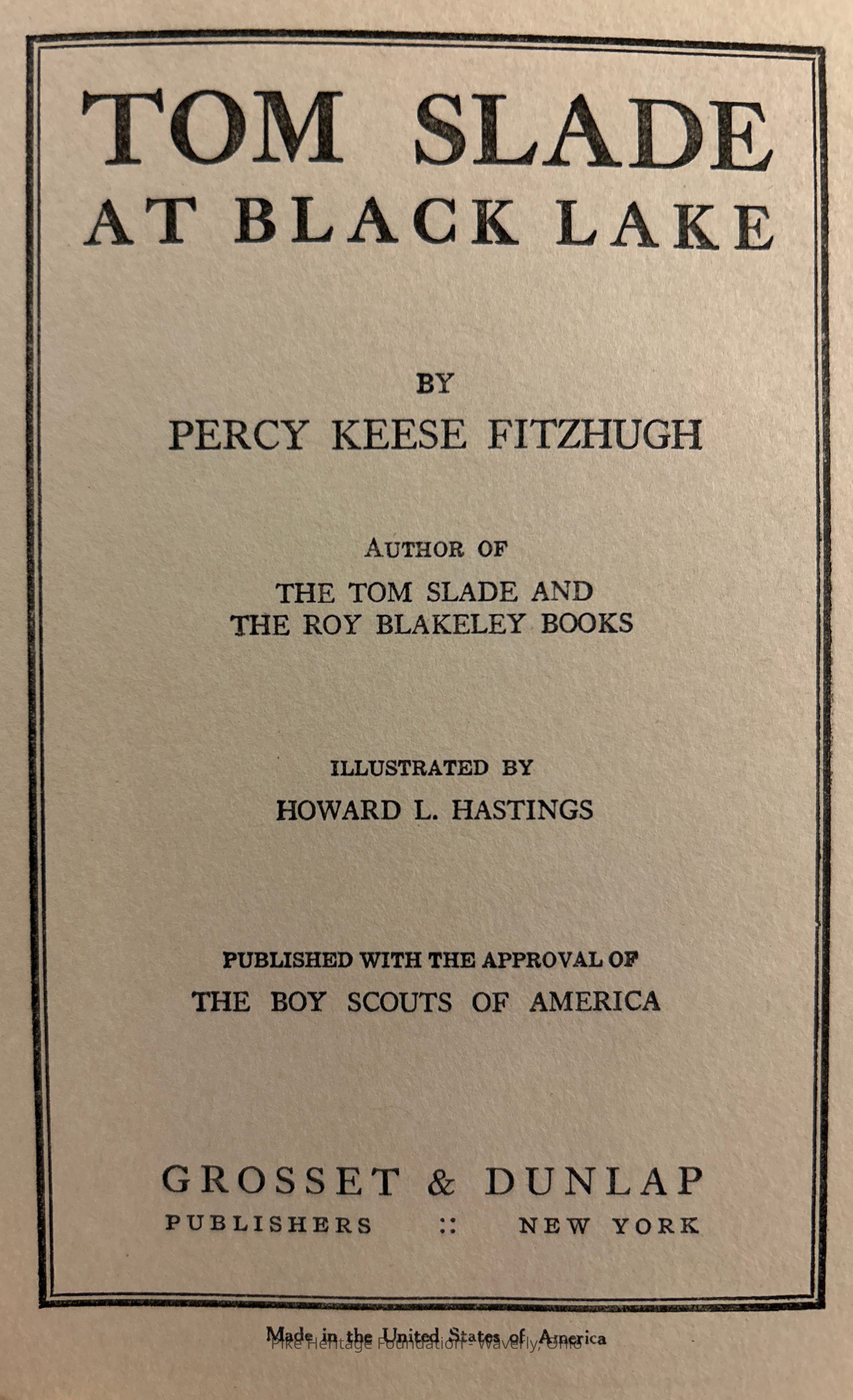 Tom Slade at Black LakeEntry/Object ID