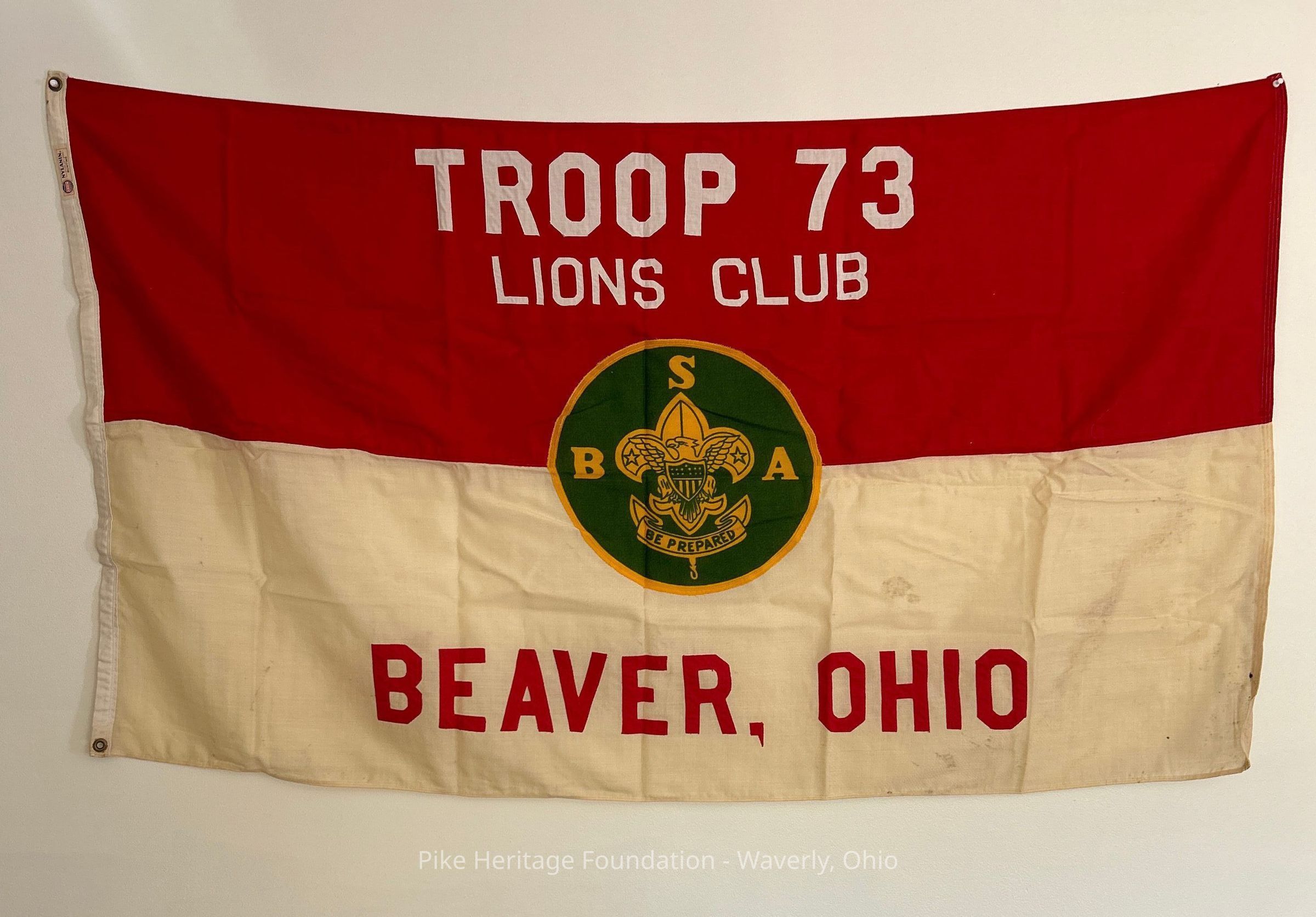 Flag used by Boy Scout Troop 73 of Beaver, Ohio. The troop belonged to Chief Logan Council in southern Ohio. The troop was sponsored by the Beaver Lions Club.Collection