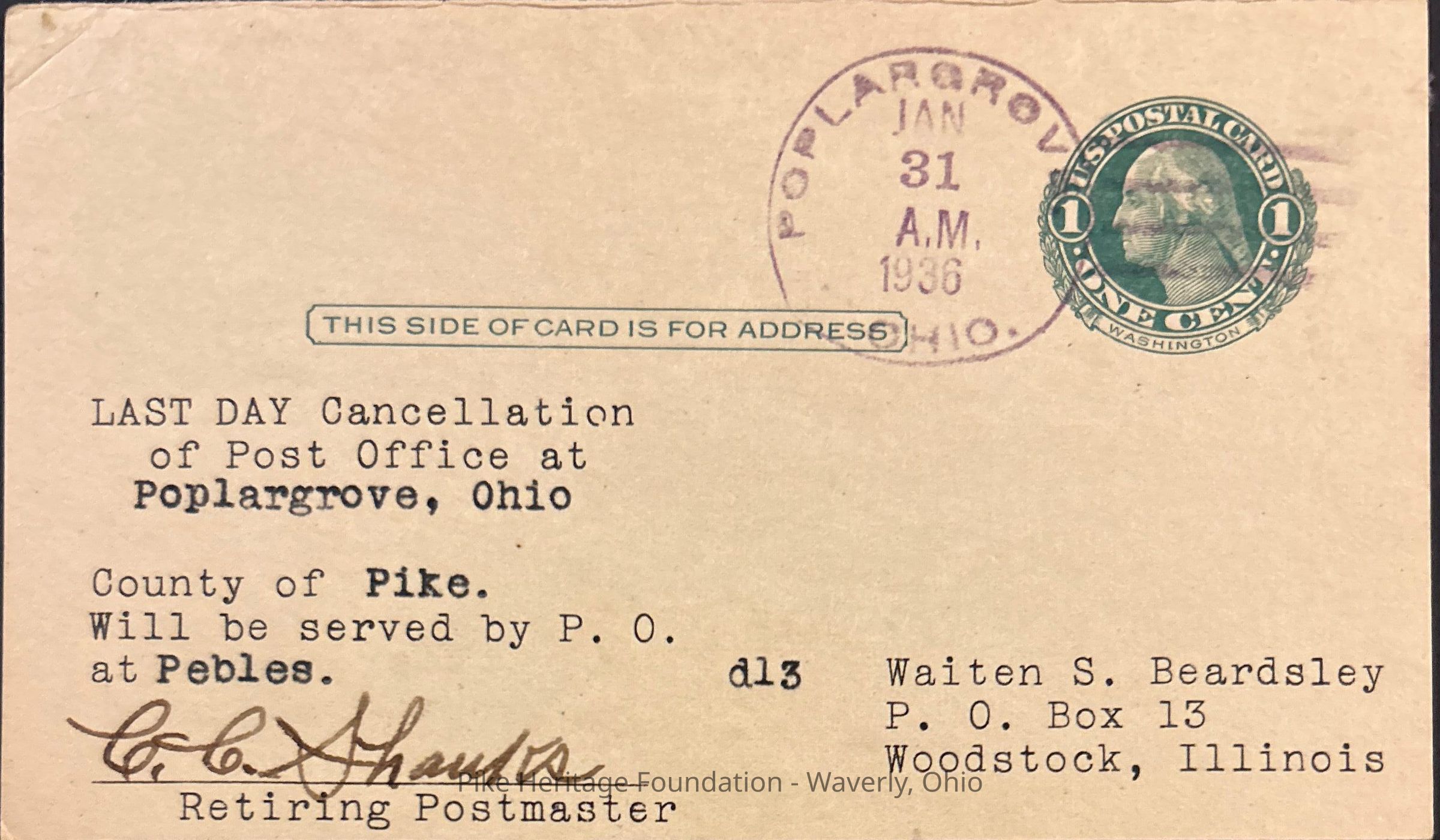 Last Day of Service Postcard- Poplargrove, OhioEntry/Object ID