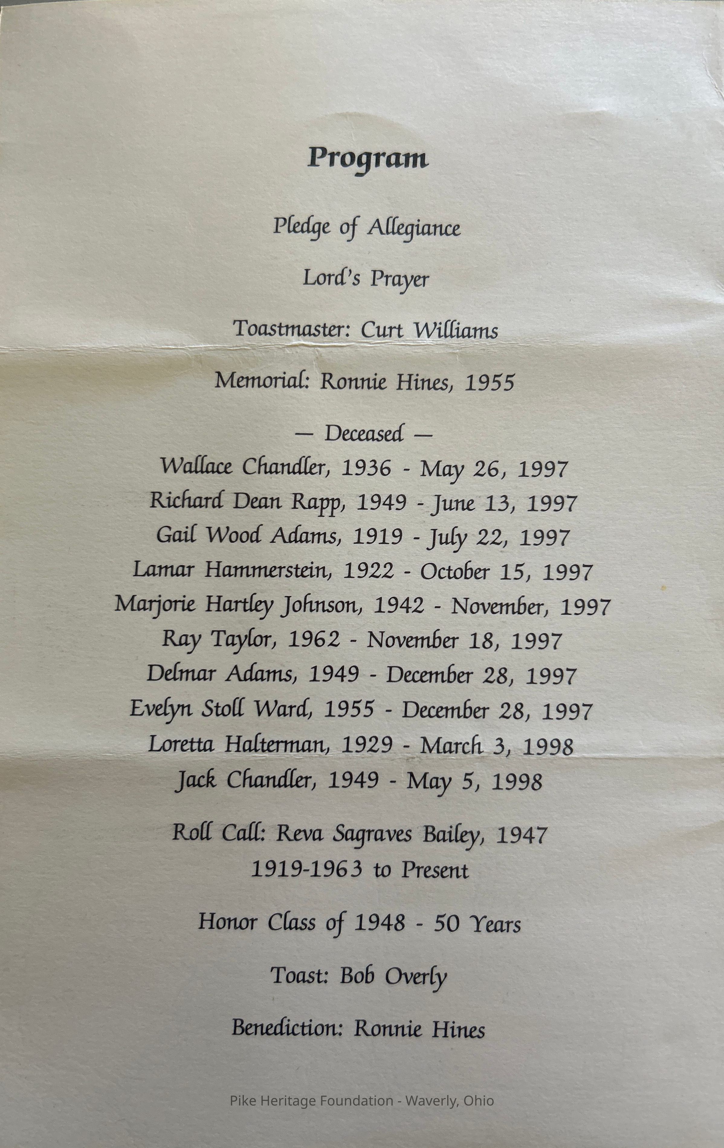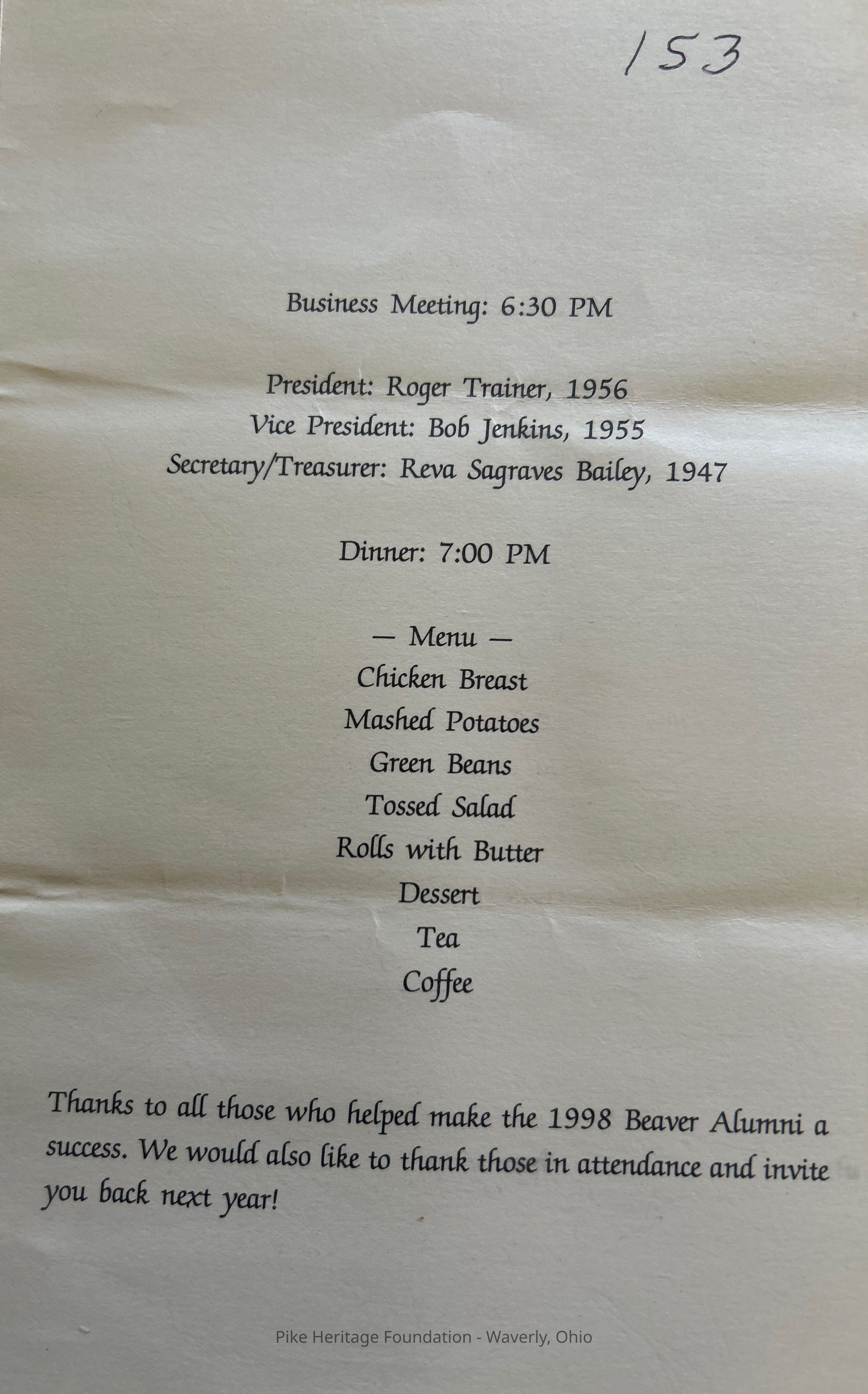 Beaver High School Alumni Banquet Program - 1998Entry/Object ID