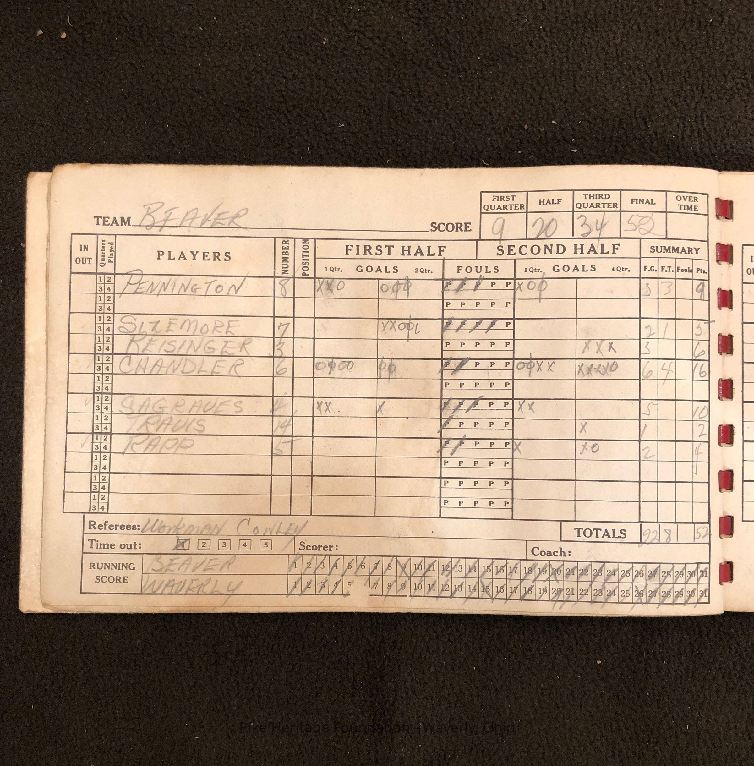 1947-48 Beaver High School Boys Basketball Team Scorebook. Teams played include Waverly, Clay, Western, Scioto Township, Piketon, South Webster, Stockdale, Blackfork, Jackson, South Point, and Oak Hill.Collection