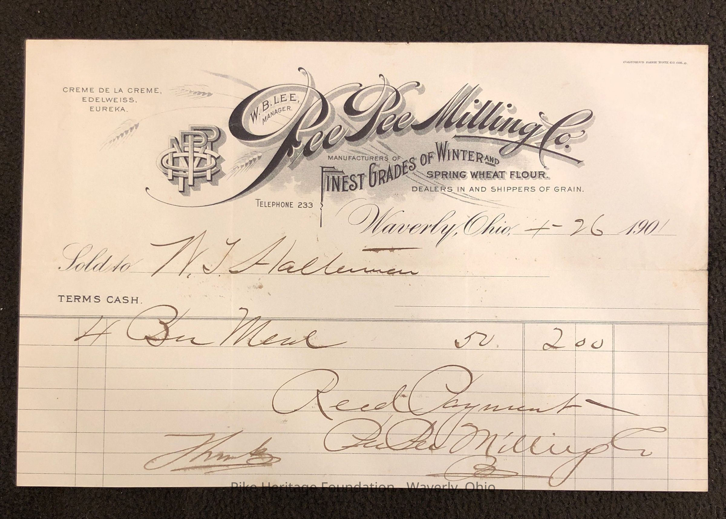 Pee Pee Milling Company Receipt from Waverly, OhioEntry/Object ID