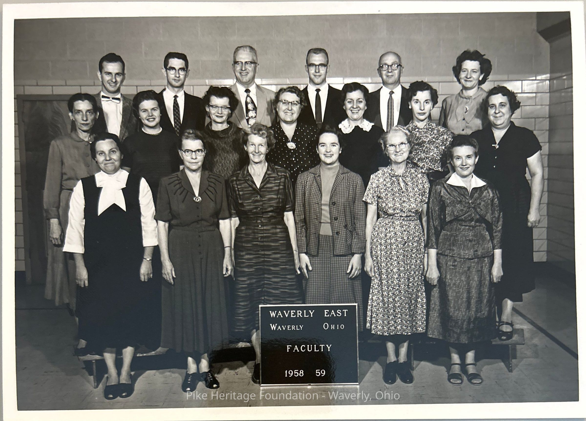 1958-59 teaching staff of East Elemenary located in Waverly, Ohio. Front row left to right: _________________, ______ Heibel, ______________, _______________, _________ Edelman, and ________ Yahraus. Second row left to right: Alberta Citchfield, _________________, _________ Henry, ________________, __________________, __________________, and Avonelle McConkey. Third row left to right: __________ Nutt, ________ Gault, David Roberts, __________________, ________________, ___________________, and ___________________.Collection