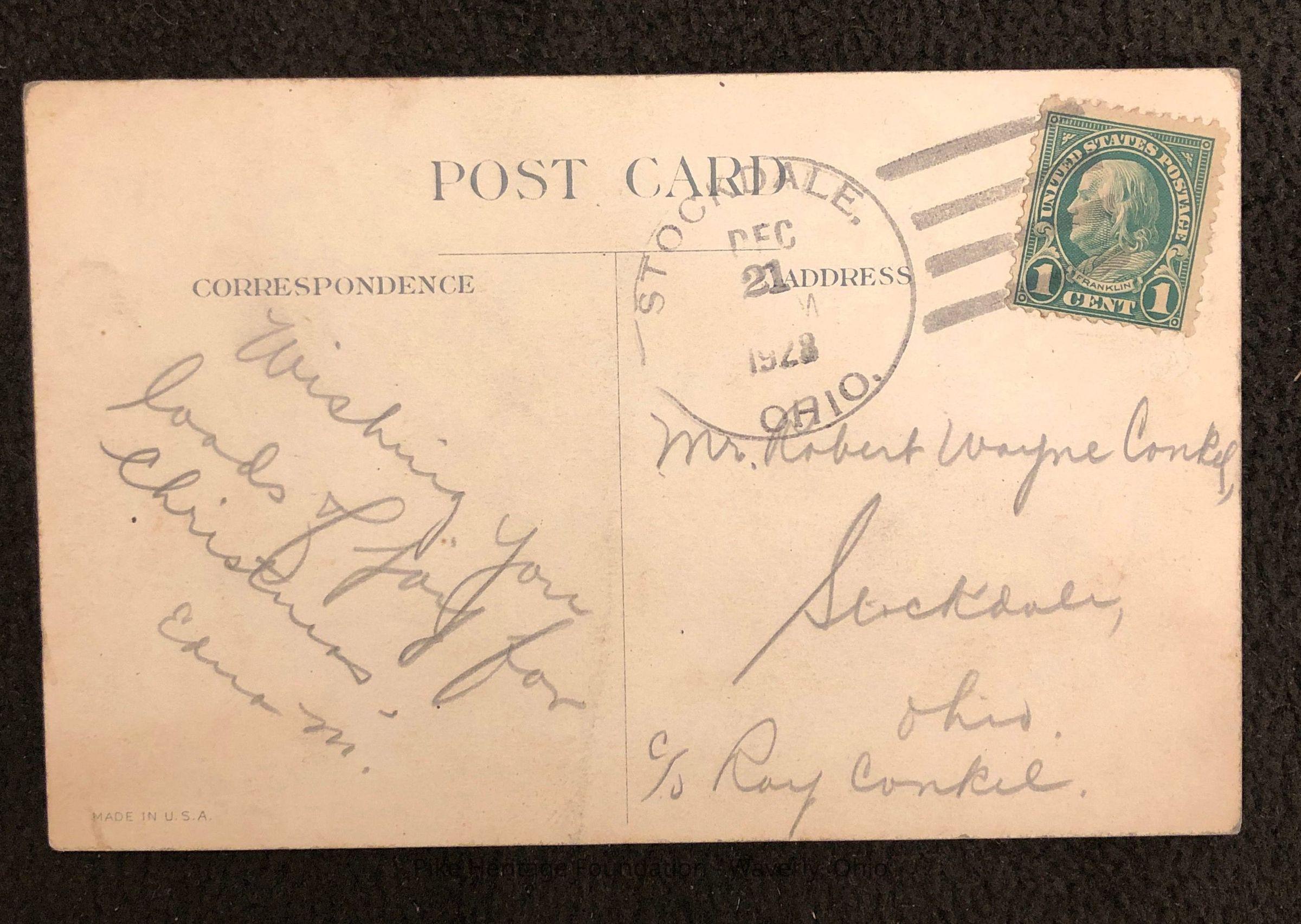 Picture Postcard to Stockdale, Ohio - 1928Entry/Object ID