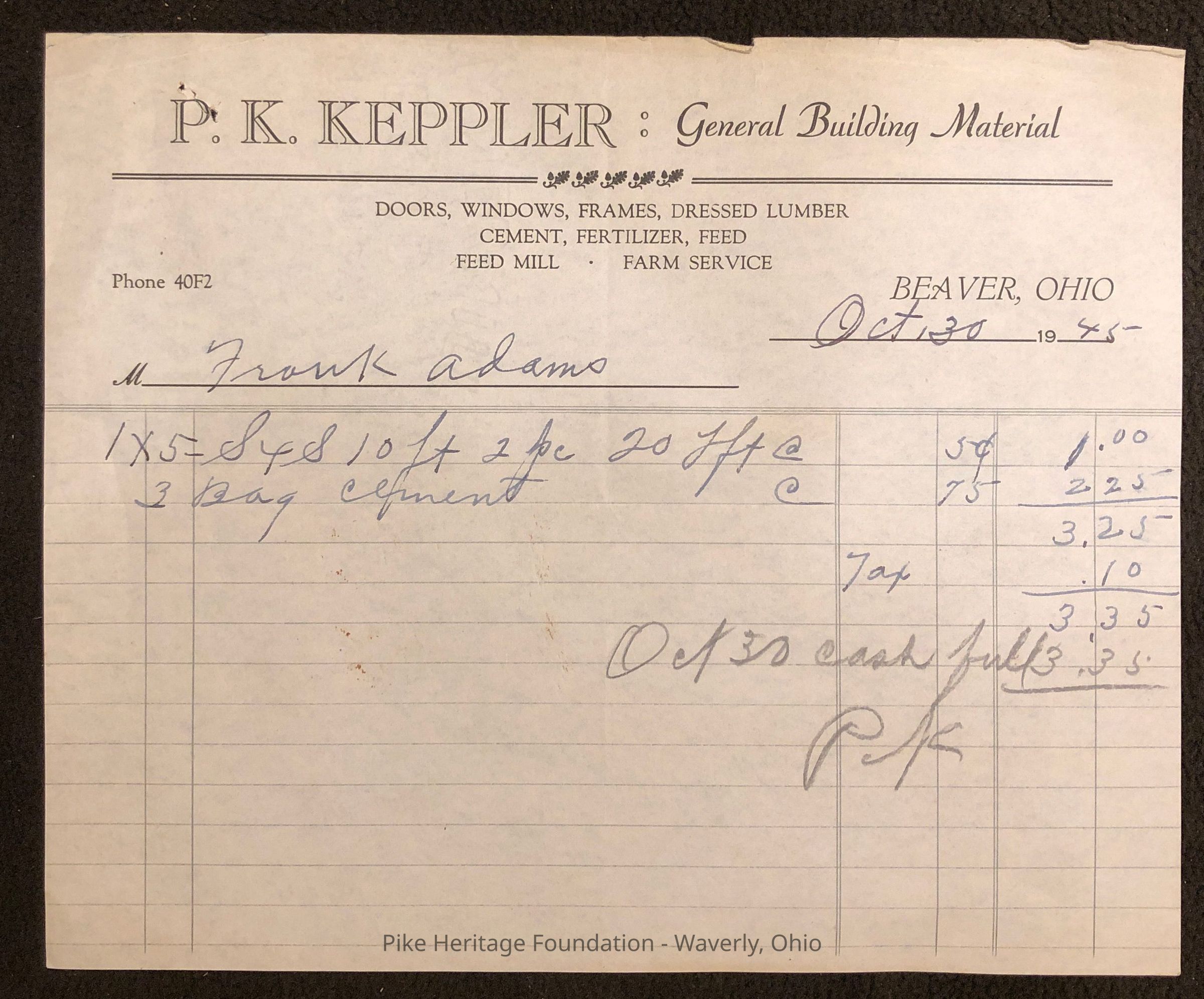 P. K. Keppler Company ReceiptEntry/Object ID