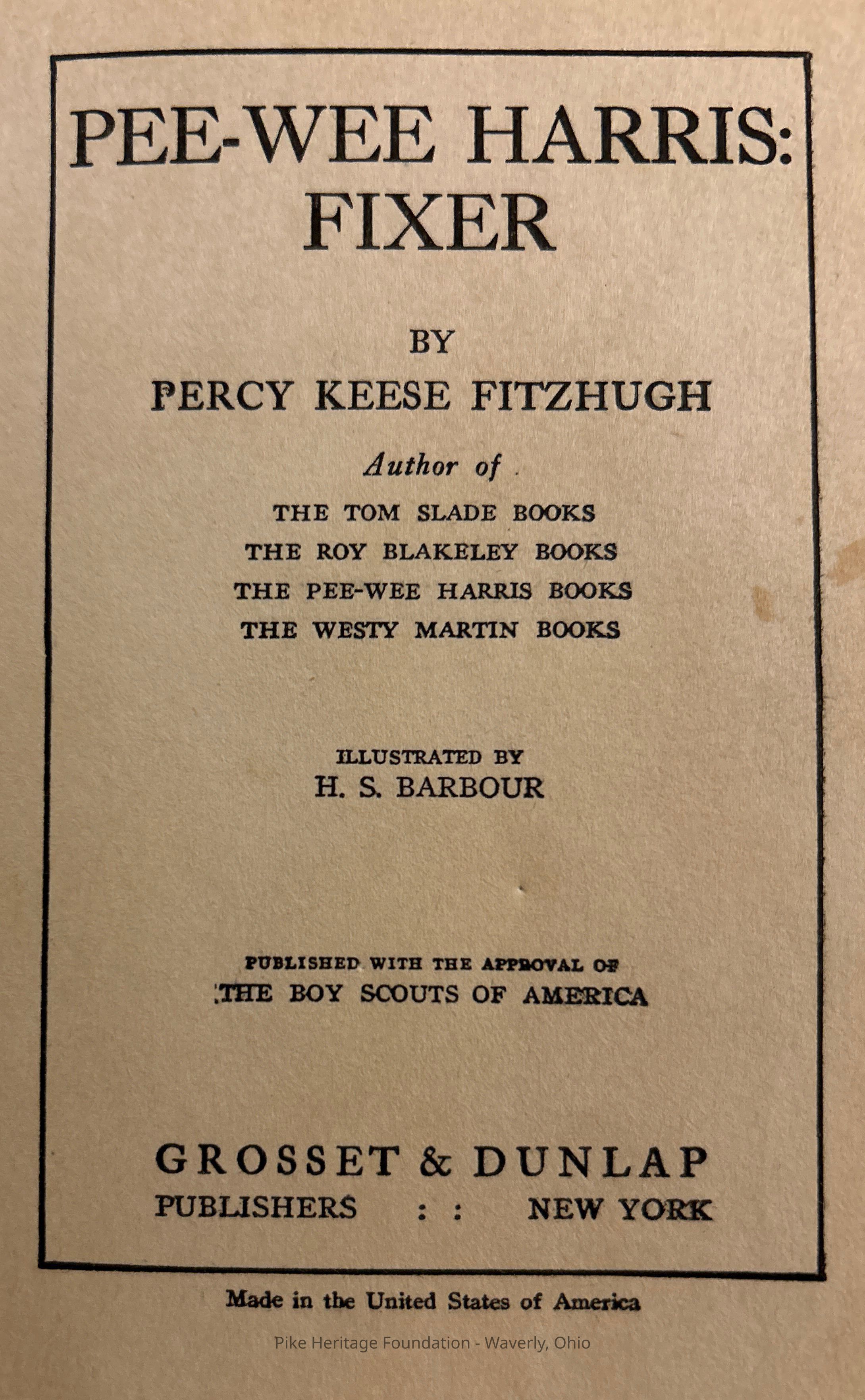 The series also featured other Scouts from the "First Bridgeboro Troop" such as Tom Slade, Roy Blakeley, and Westy Martin, who each also had their own series of books, the first two preceding the Pee-wee series and the last following it. The Pee-wee Harris book series ran until 1930.