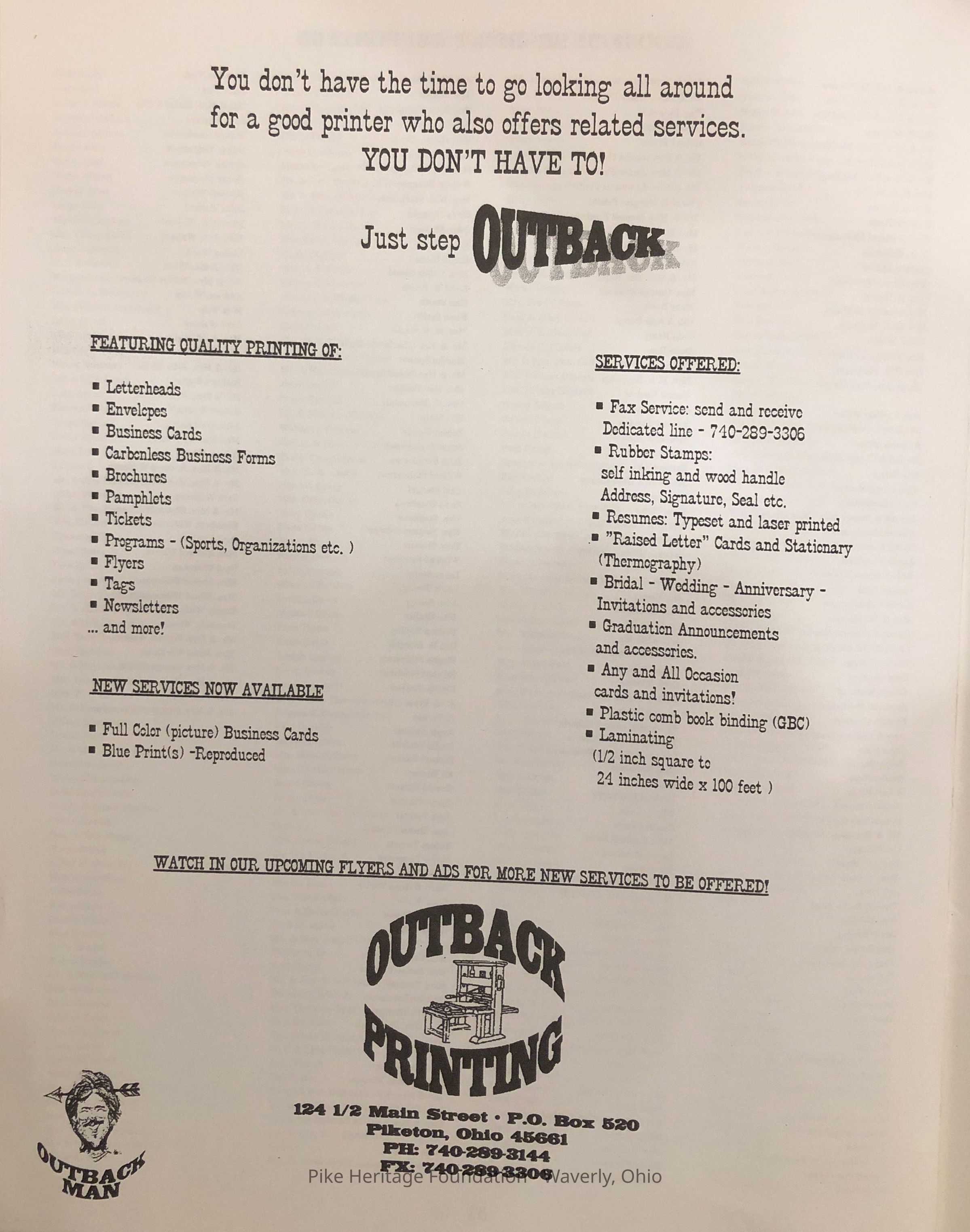 Outback PrintingPlace Printed