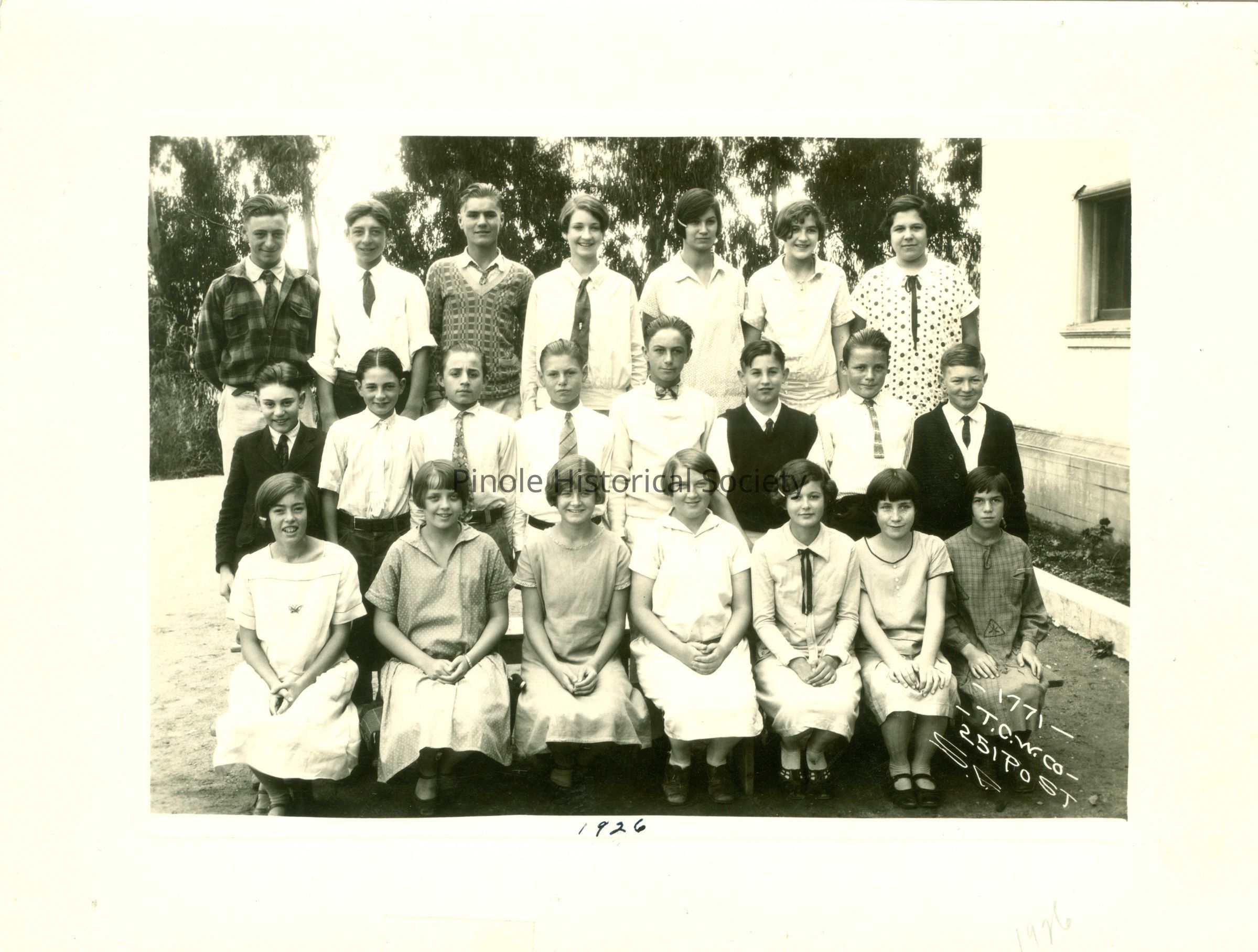 PINOLE-HERCULES SCHOOL #1: Class reunions are still held for graduates of this school, the “School on the Hill” or the “Old School,” which served the Pinole and Hercules communities for 60 years, beginning in 1906. Several of Pinole’s most-beloved teachers taught at this school, including Frances Ellerhorst, Elizabeth Stewart, and Margaret Collins, all of whom have schools named after them in the city. It was razed in 1968 to make way for the Pinole Grove Apartments, a residence for senior citizens, which incorporated some of the architectural elements of the school in its facade.Inscription/Signature/Marks