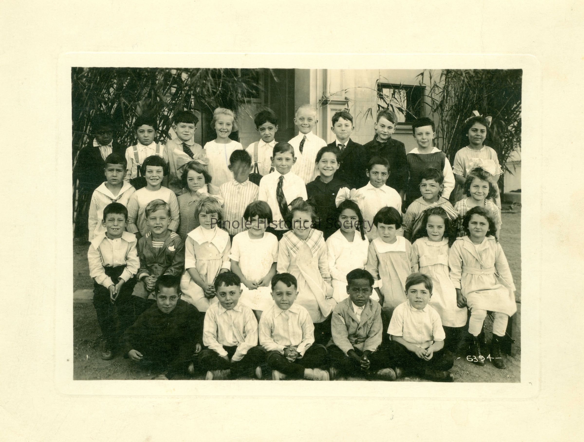PINOLE-HERCULES SCHOOL #1: Class reunions are still held for graduates of this school, the “School on the Hill” or the “Old School,” which served the Pinole and Hercules communities for 60 years, beginning in 1906. Several of Pinole’s most-beloved teachers taught at this school, including Frances Ellerhorst, Elizabeth Stewart, and Margaret Collins, all of whom have schools named after them in the city. It was razed in 1968 to make way for the Pinole Grove Apartments, a residence for senior citizens, which incorporated some of the architectural elements of the school in its facade. This class photo includes names of students on back.Copyright