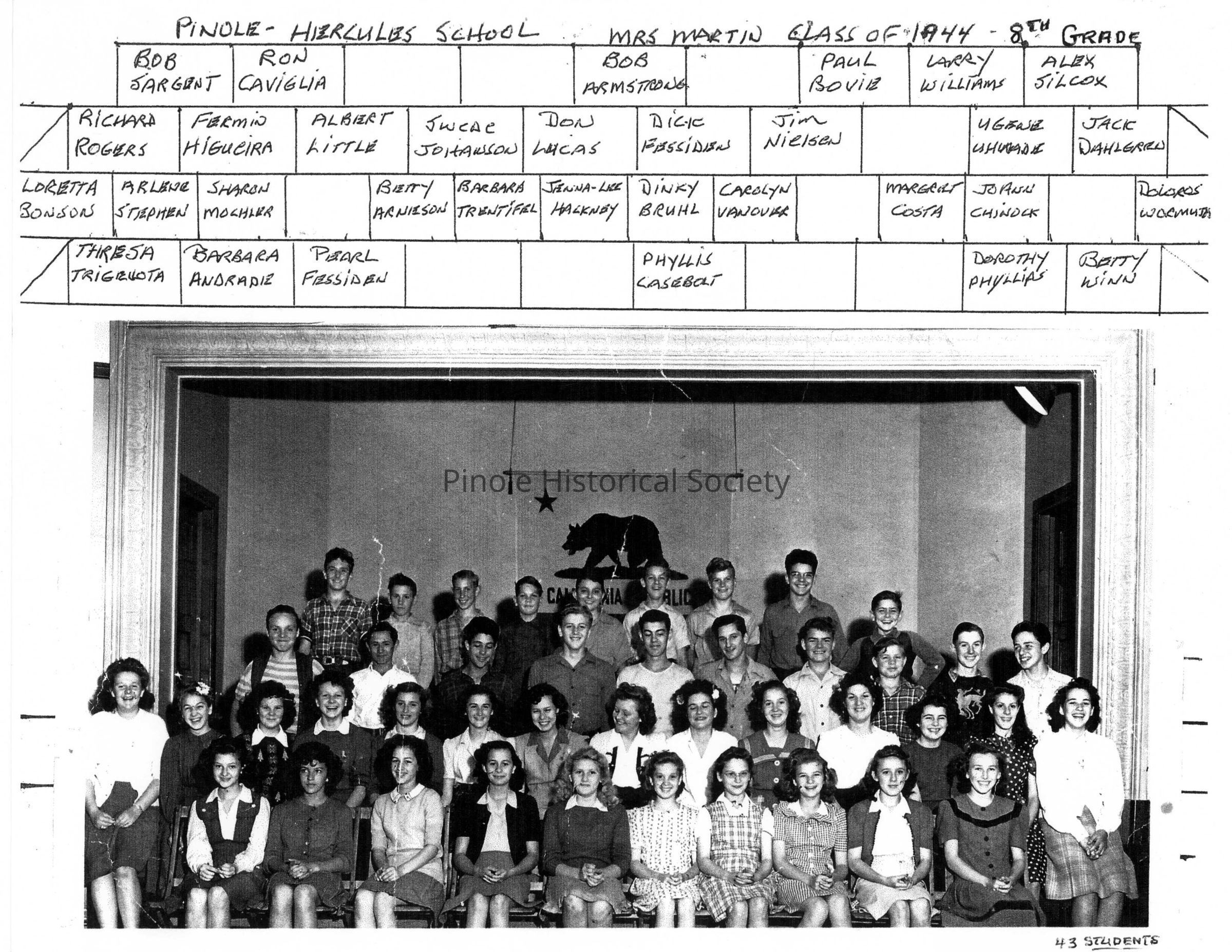 1944 Pinole-Hercules School, Mrs. Martin's 8th-grade class (Shirley Ramos)Description
