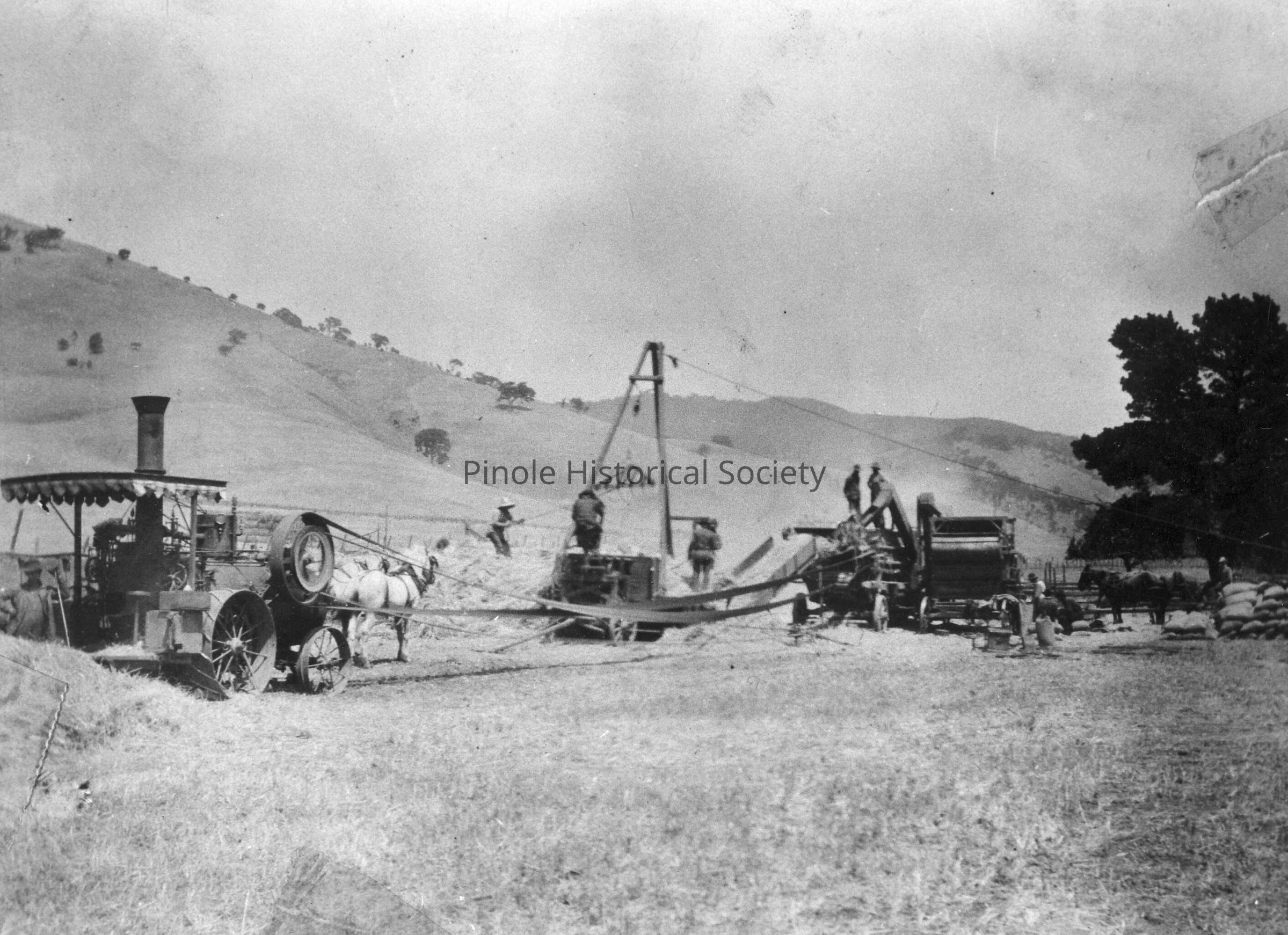 This Amend steam tractor worked the land in this 1920 photo. Farmers, mostly Portuguese, worked the land from near downtown Pinole deep into Pinole Valley for about six miles, to the edge of Alhambra Valley. There were about 20 farms in the area.Copyright