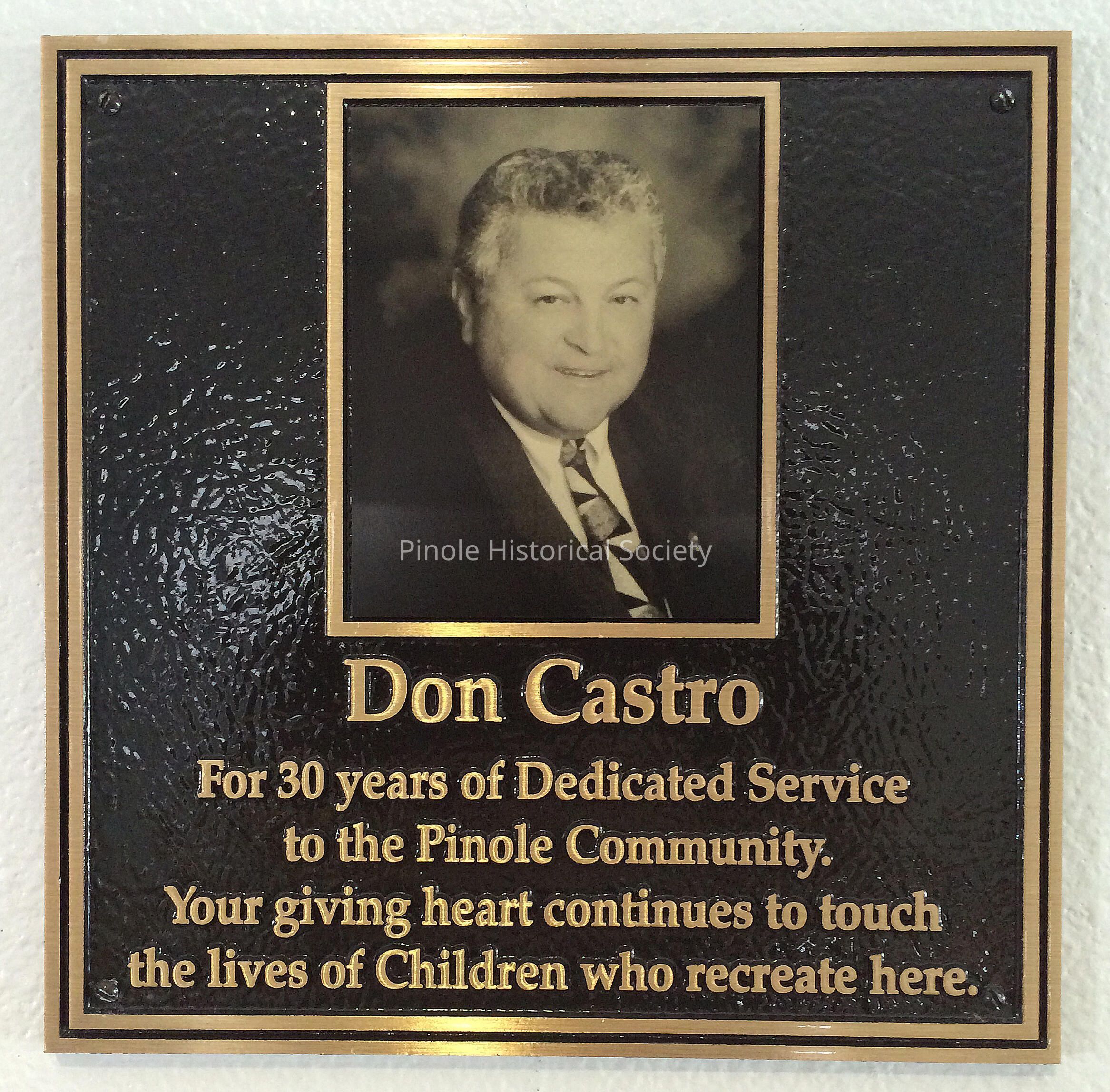 The life of Don Castro was celebrated July 28 with the unveiling of a plaque in his honor at the Pinole Youth Center. The plaque is on the wall at the entrance to the building.