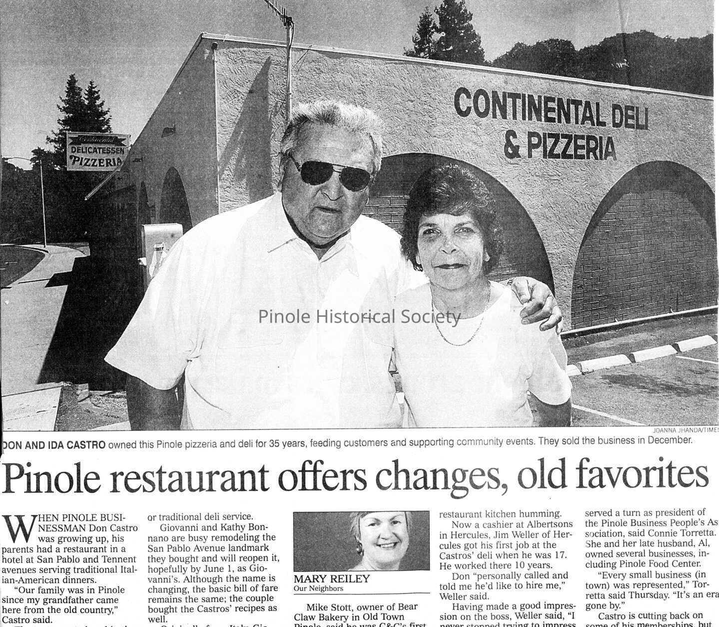 Don was a graduate of Richmond Union High School, served in the U.S. Navy, and was energetic in promoting Pinole as a great place to live and dine. In 1968, he and a partner opened the popular C&C Continental Deli on San Pablo Avenue. For 35 years Don, his wife Ida, and family treated Pinoleans to their specialties of family style meals seasoned with Don's humor and Ida's cheerful smiles.