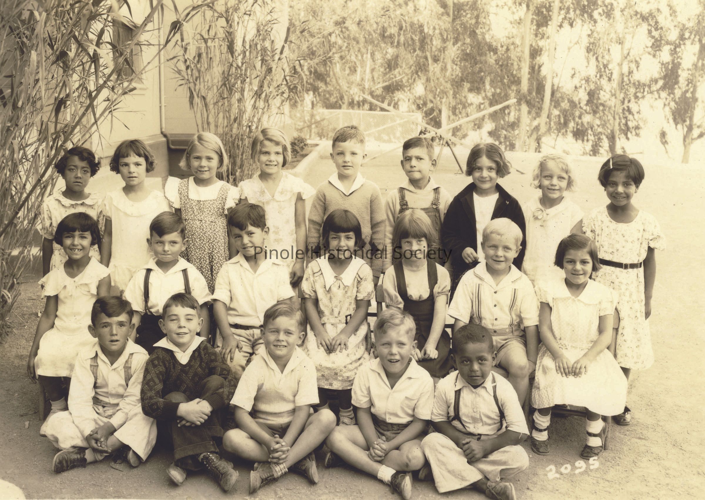 PINOLE-HERCULES SCHOOL #1: Class reunions are still held for graduates of this school, the “School on the Hill” or the “Old School,” which served the Pinole and Hercules communities for 60 years, beginning in 1906. Several of Pinole’s most-beloved teachers taught at this school, including Frances Ellerhorst, Elizabeth Stewart, and Margaret Collins, all of whom have schools named after them in the city. It was razed in 1968 to make way for the Pinole Grove Apartments, a residence for senior citizens, which incorporated some of the architectural elements of the school in its facade. This is a 2nd grade class photo.Inscription/Signature/Marks
