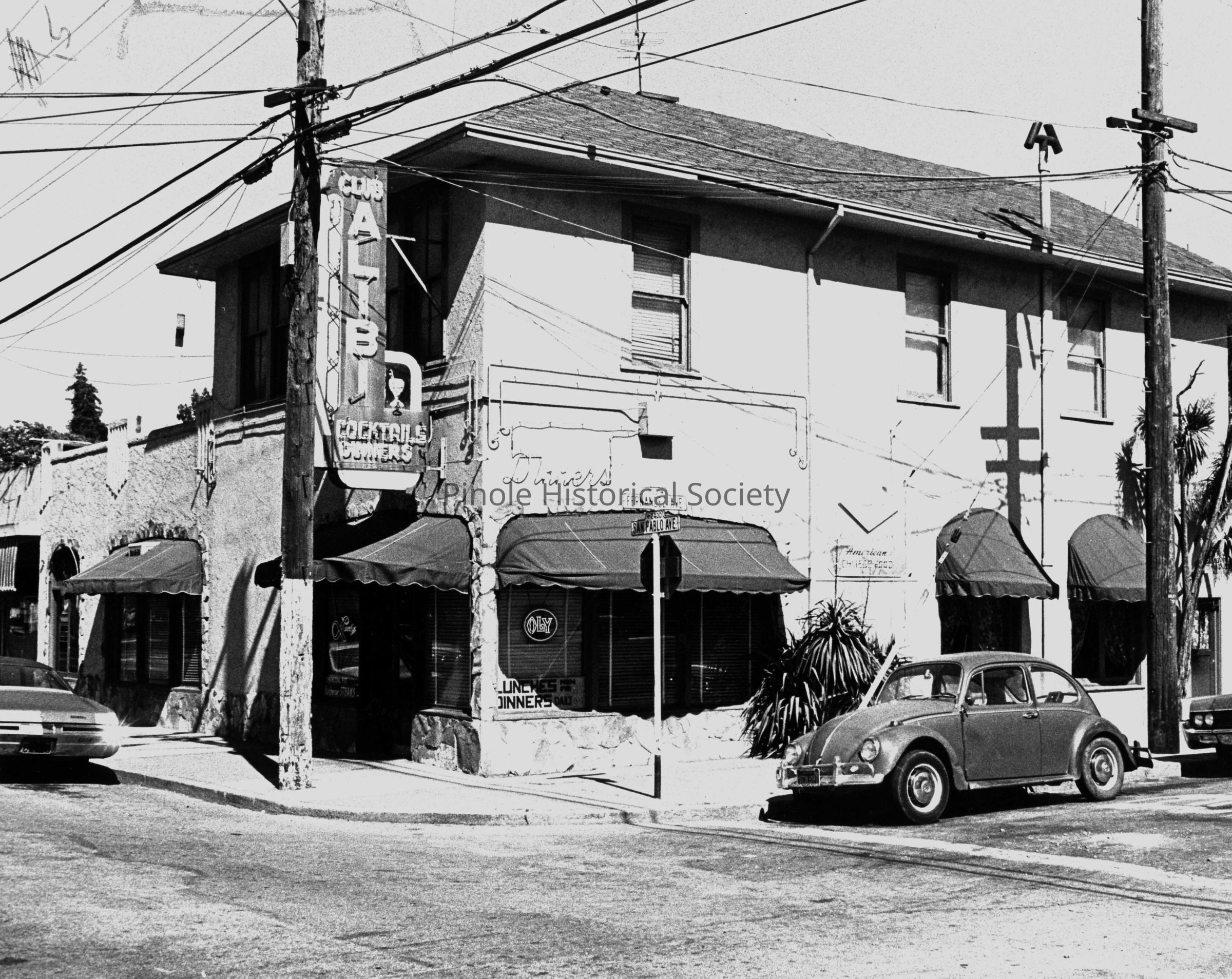 GONDOLA RESTAURANT/CLUB ALIBI: In the early 1900s, this site on the southeast corner of San Pablo and Fernandez avenues was the Charles Vincent Saloon. It was Val and Nina Pera’s Gondola Restaurant from the 1930s to the 1940s, serving drinks and Italian food. From the 1940s through the 1970s, it was the Club Alibi, run by Mike Lewis and Joe Costa; it had a bar and served Chinese and American food. The club was known for a female mannequin dressed in a blue formal seated on a toilet in the men’s room. When the door to the men’s room opened, her arm raised up with toilet paper in her hand; astonished men thought they were in the wrong restroom.Copyright