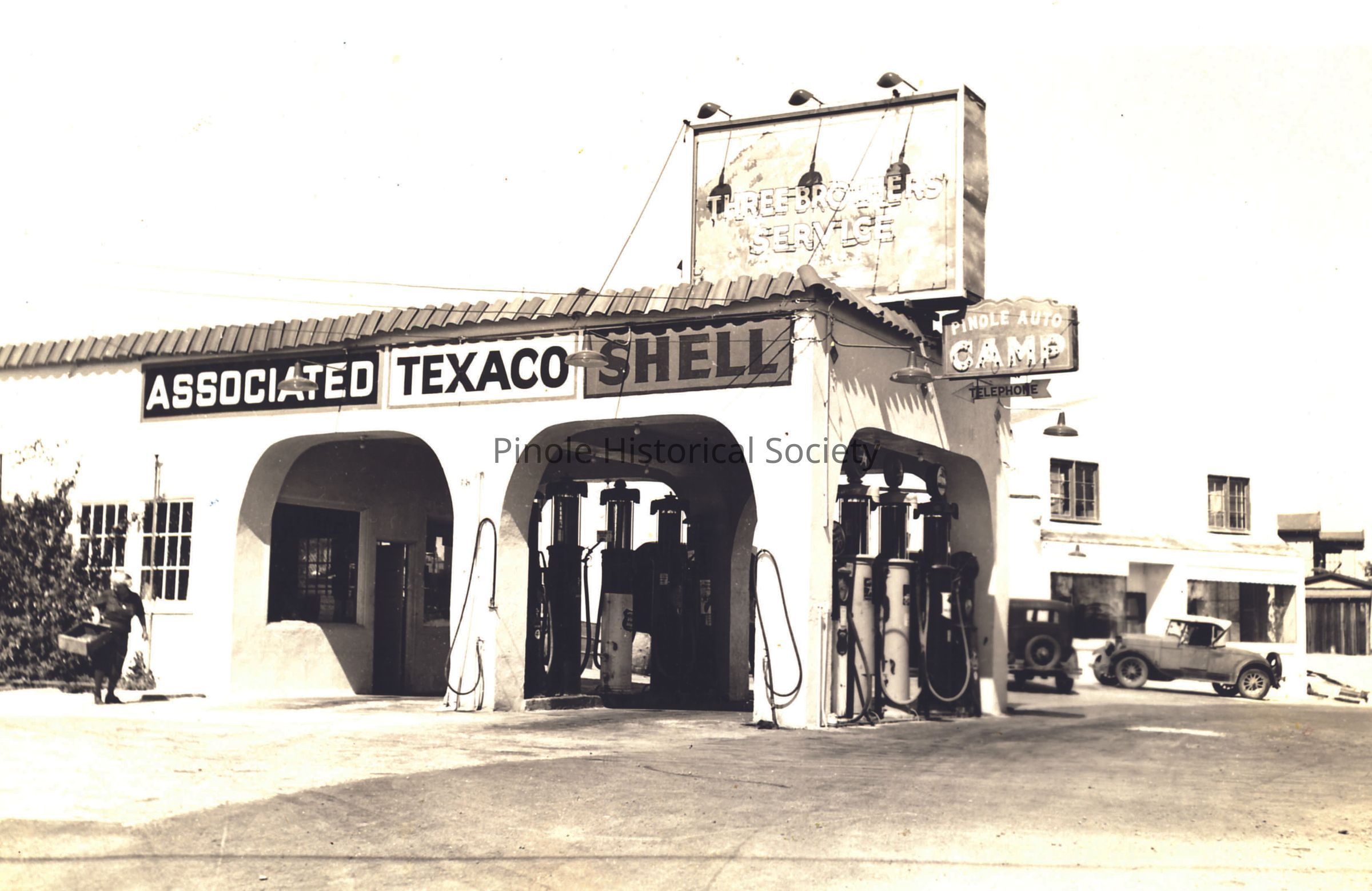 Rene, Lucien, and Louis de la Briandais opened a service station and a sixteen unit auto court on their father’s ten acre property on the north side of San Pablo Avenue, just east of Appian Way. Then they built an appliance/hardware store called Three Brothers. On August 1, 1989, Gregg Fehr, who had started a screen-printing business in his El Sobrante home’s garage in 1980 and had small Blue Sky Sports stores in several locations in the city, moved into the former hardware store. He opened the immensely popular batting cages in 1992.Copyright