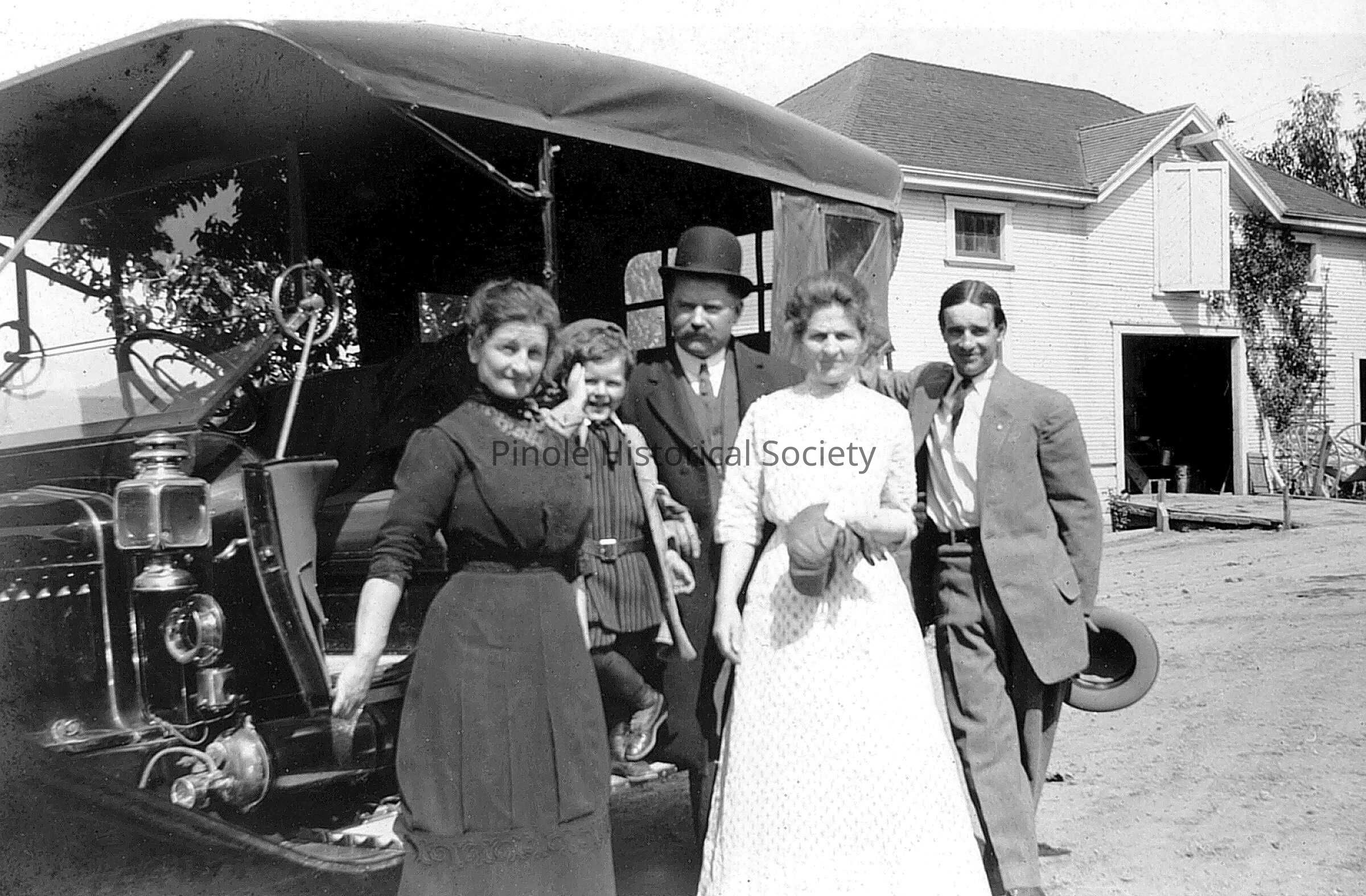 By Edward Downer’s automobile are Tracy (Bouquet) Gates, Edward M. Downer Jr., Edward M. Downer Sr., Mrs. Elizabeth Bouquet Poinsett Downer, and Howard Poinsett, Mrs. Downer’s son from her first marriage. Mrs. Downer’s maiden name was Bouquet. Mrs. Downer was a widow who married Edward M. Downer in 1895.Copyright