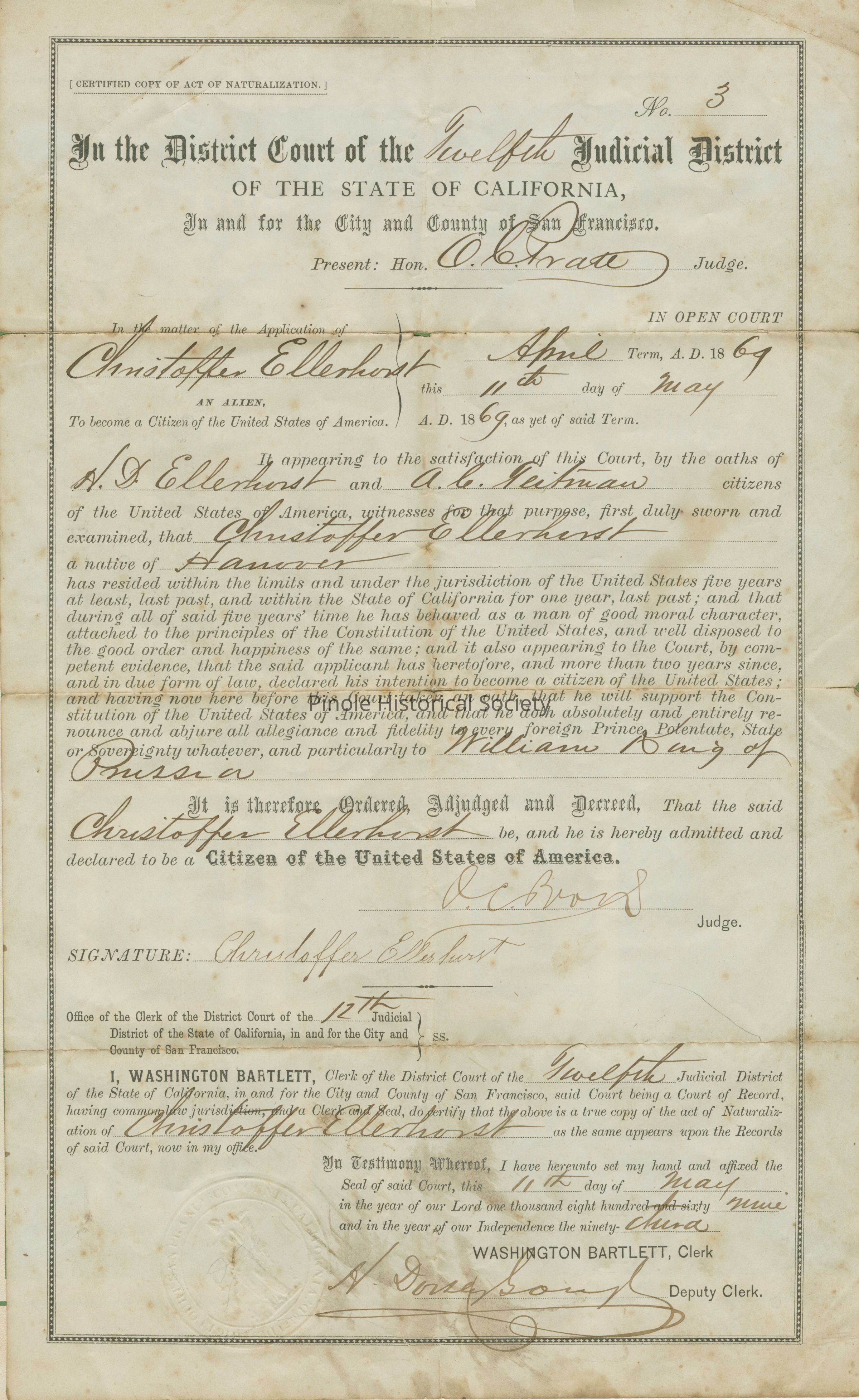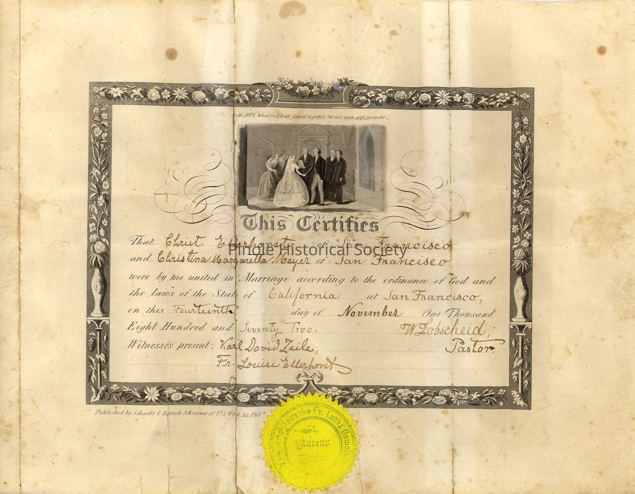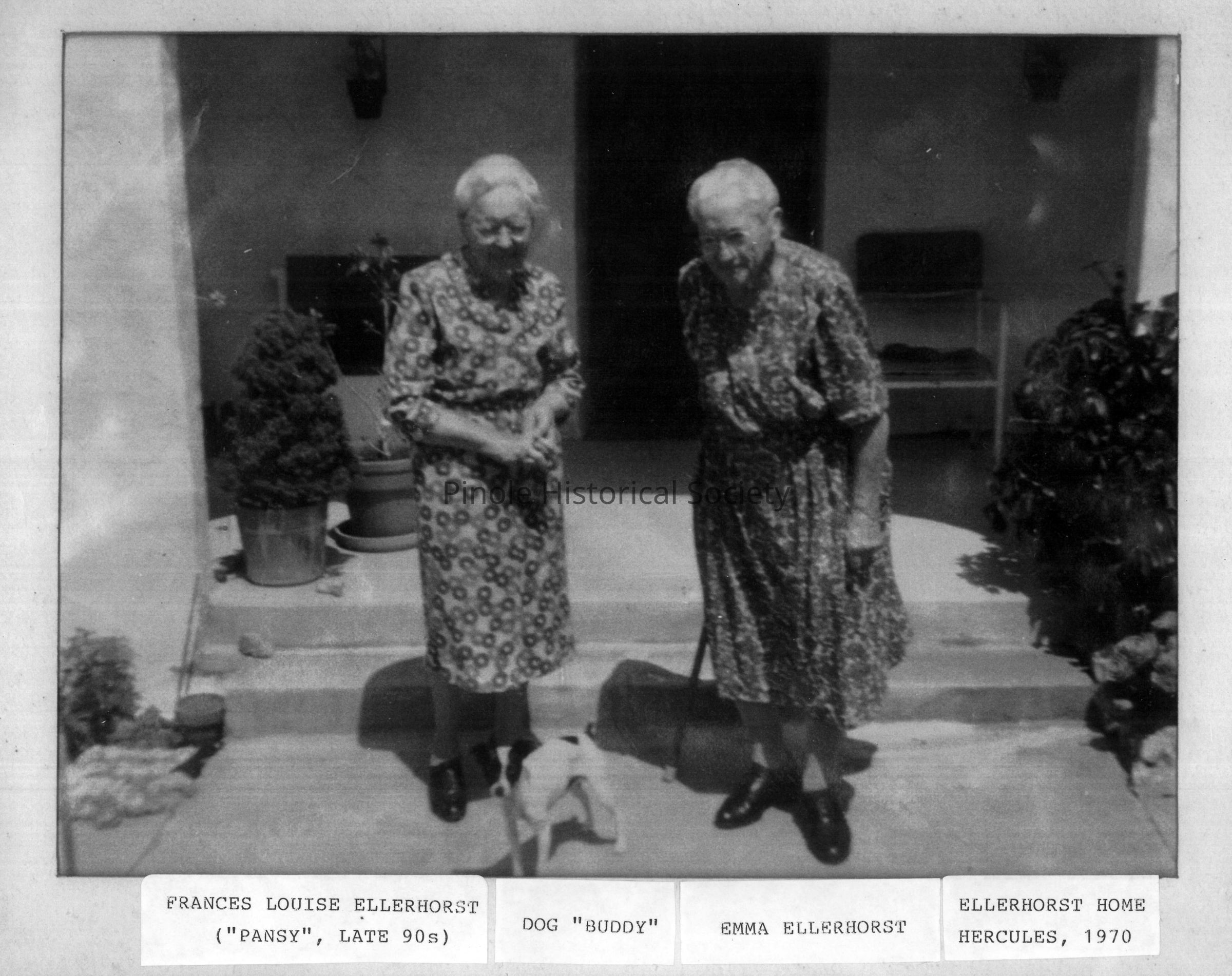 The C.H. and Christina Ellerhorst children were made up of five girls and one boy: Annie, Dora, Alice, Emma, Frances (Pansy), and Henry. His daughter, Miss Frances L. Ellerhorst began teaching at the Sheldon School in 1895 at the age of 21. She taught in Pinole schools and was the Principal for 40 years, retiring in 1950. Ellerhorst School in Pinole Valley is named after her.Copyright