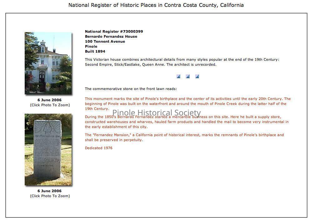Fernandez eventually purchased the waterfront lands from Tennent. His last home, the 22-room Fernandez Mansion, was built in 1894. From the lighthouse-like cupola at the top, Fernandez watched his enterprise. Bernardo’s son, Manuel Fernandez, served as Pinole’s beloved doctor for 47 years.