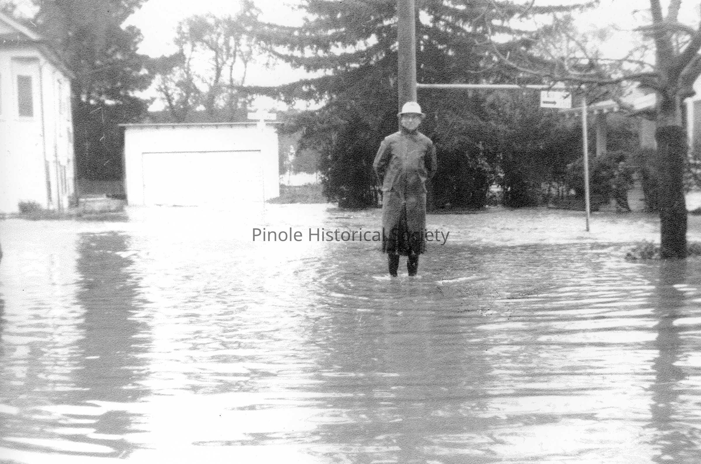 On April 2, 1958, after several days of hard rain, high tides contributed to the overflow of Pinole Creek, which flooded the downtown area. Boats tied up along Tennent Avenue so the Pinole Fire Department could rescue people from their flooded homes. Boats went up and down Tennent Avenue, which was like a river. Fernandez Park was under three feet of water. Children got on the bridge connecting Valley Avenue with Prune Street in makeshift rafts and “surfed” down the creek. In the 1960s the U.S. Army Corps of Engineers came to Pinole and widened, straightened, and deepened the creek. The corps took only three homes to realign the creek. Downtown Pinole has not flooded since.Copyright