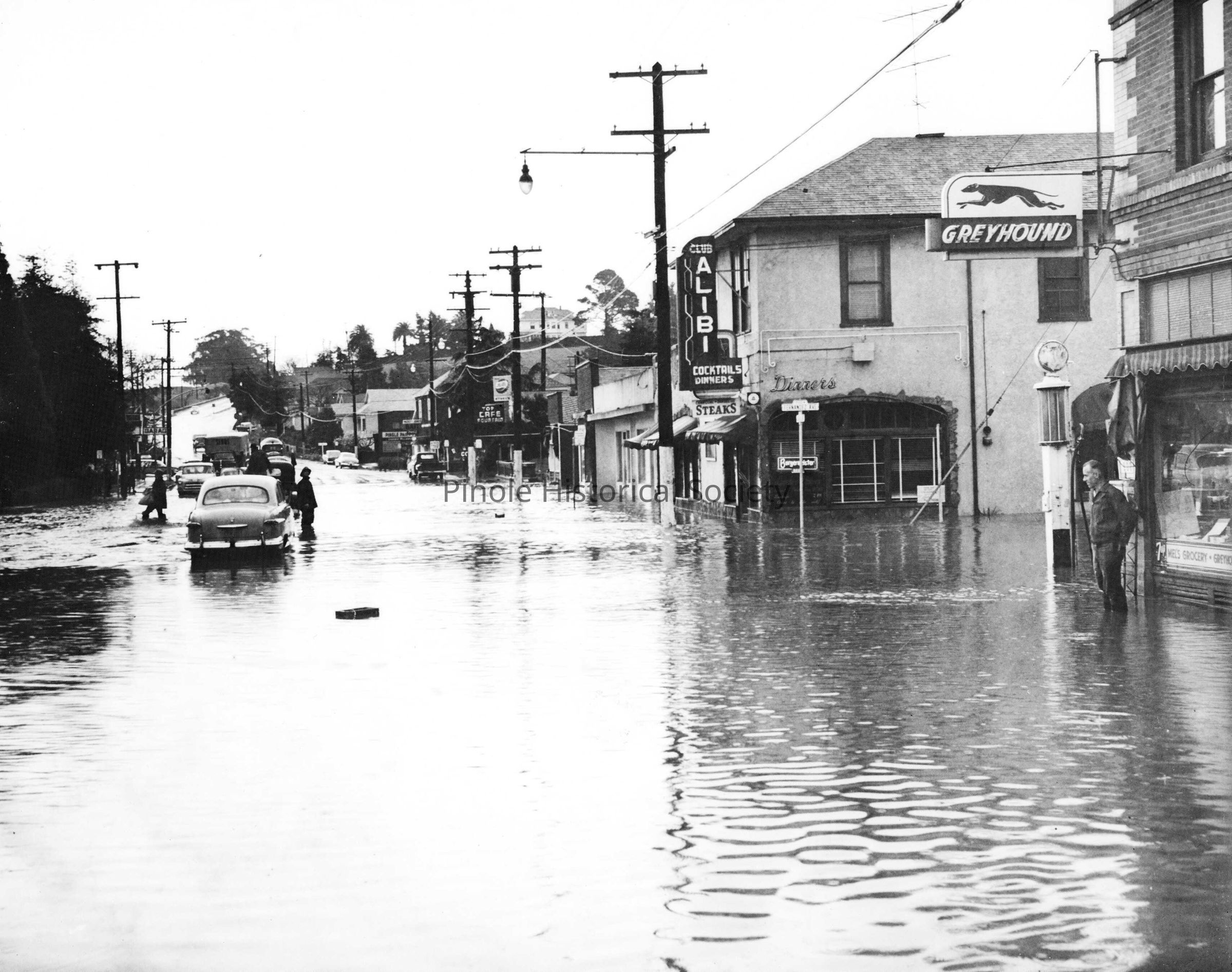 On April 2, 1958, after several days of hard rain, high tides contributed to the overflow of Pinole Creek, which flooded the downtown area. Boats tied up along Tennent Avenue so the Pinole Fire Department could rescue people from their flooded homes. Boats went up and down Tennent Avenue, which was like a river. Fernandez Park was under three feet of water. Children got on the bridge connecting Valley Avenue with Prune Street in makeshift rafts and “surfed” down the creek. In the 1960s the U.S. Army Corps of Engineers came to Pinole and widened, straightened, and deepened the creek. The corps took only three homes to realign the creek. Downtown Pinole has not flooded since.Copyright