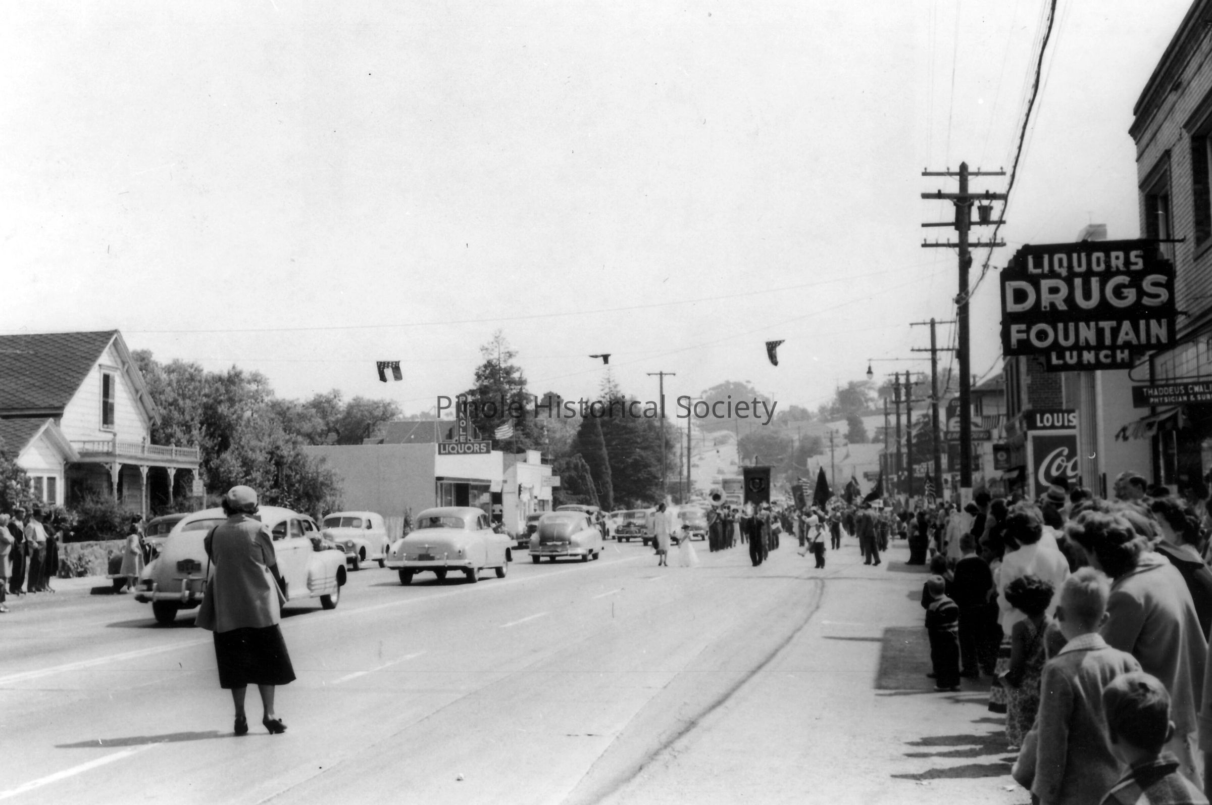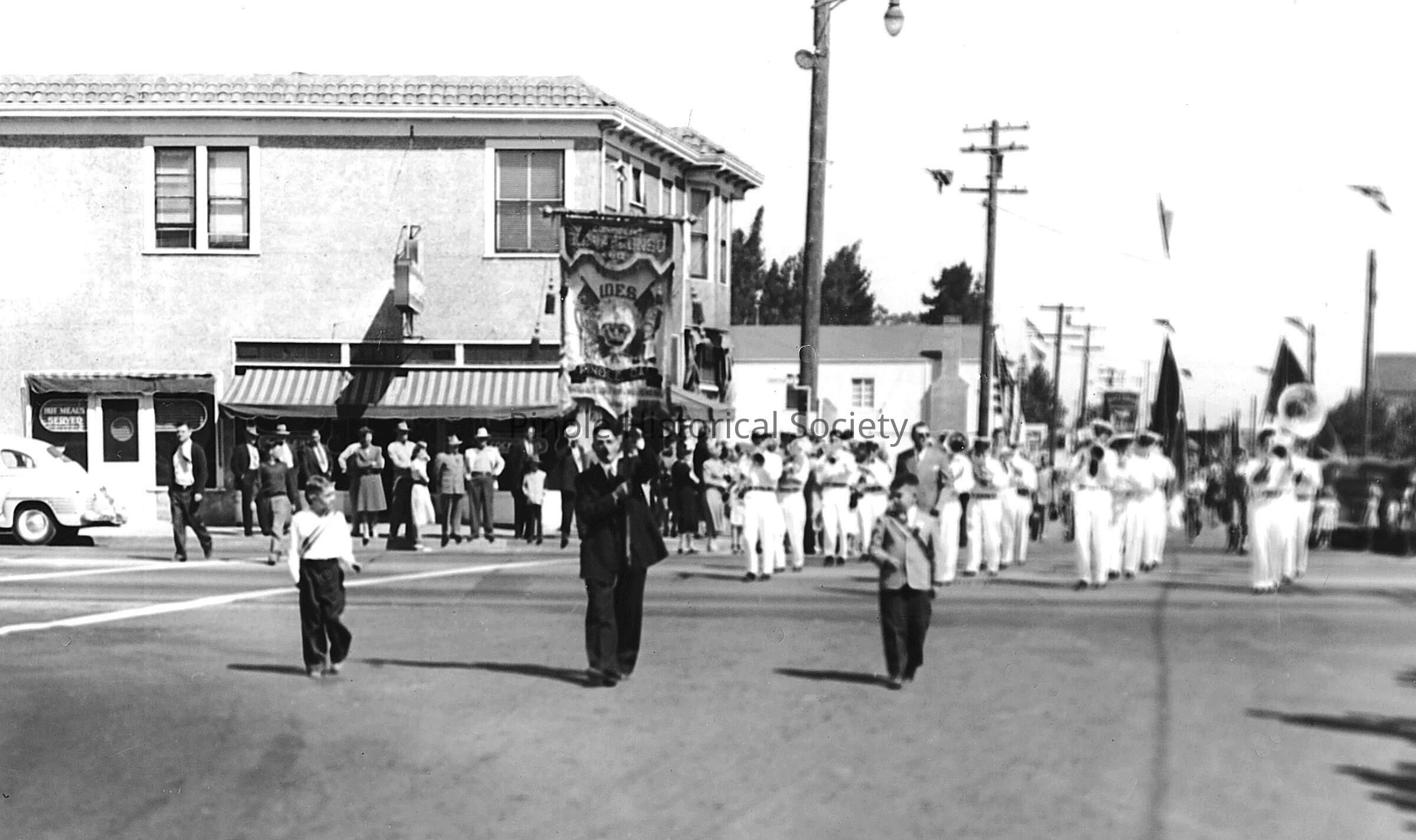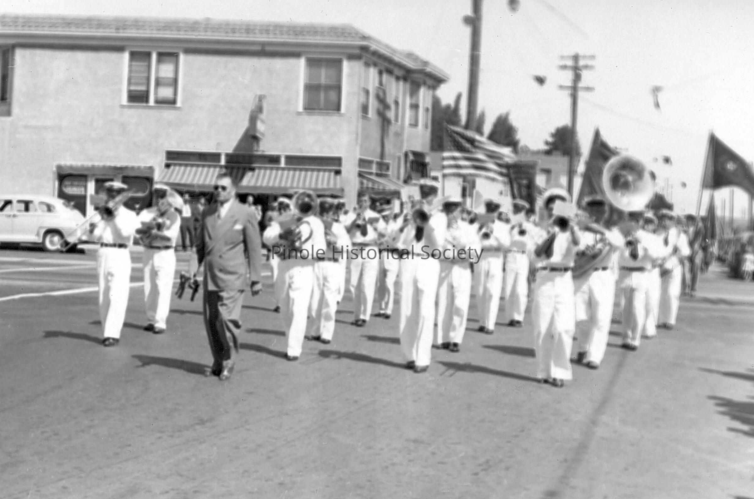 Pinole’s band was a fixture in the city’s parades for much of the 20th century. Bill Lewis founded the Pinole Municipal Band. It was a time of community involvement and pride, even during the Depression. Pinole’s ethnic backgrounds mixed together and found their fun in lodges, social clubs, sports teams, bands, and parades. The Pinole Municipal Band was at the forefront of many parades, and led the procession in the 1926 Holy Ghost Parade.Copyright