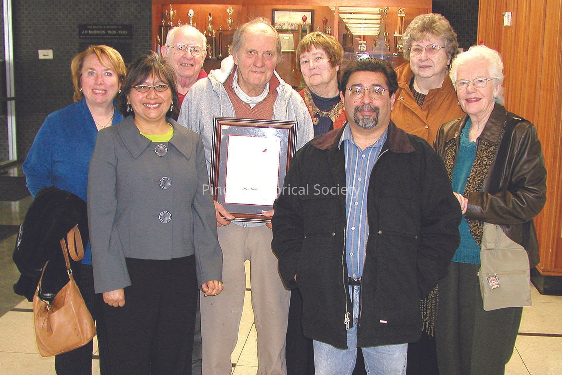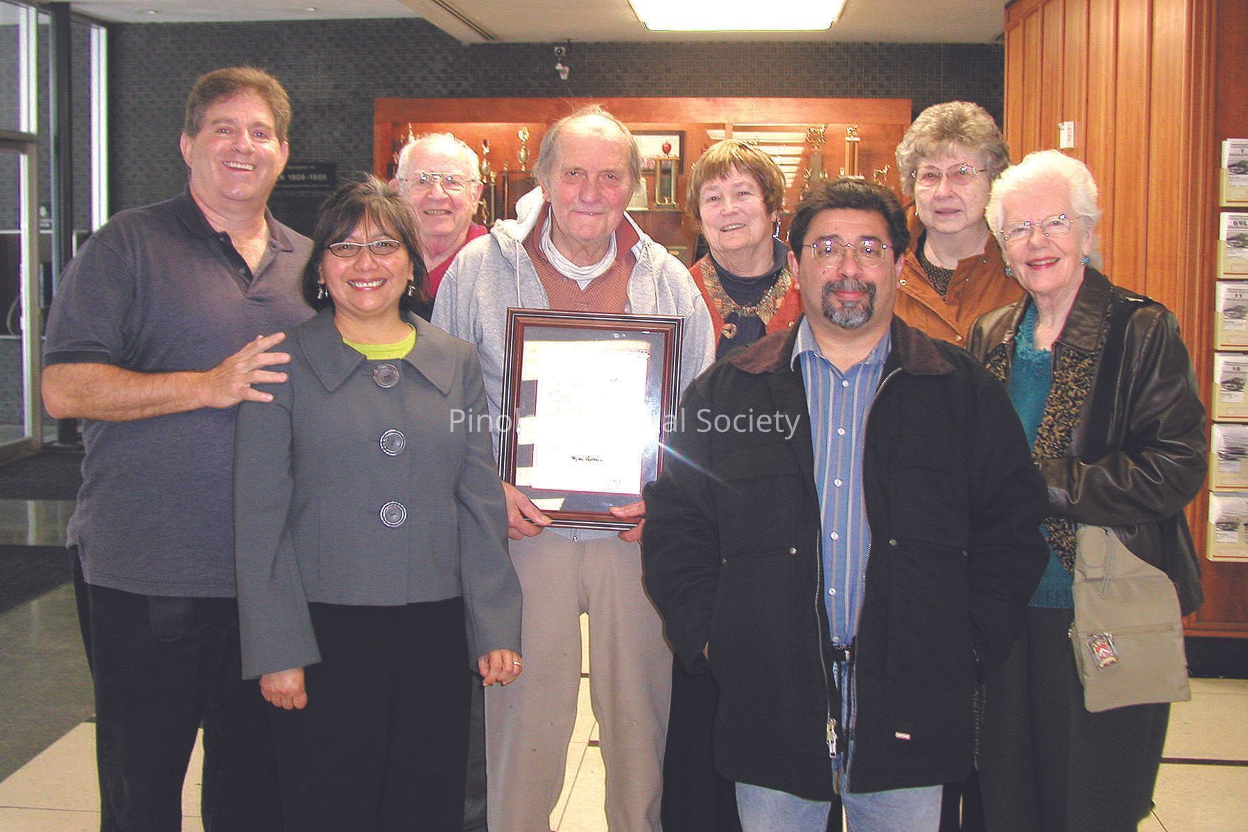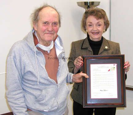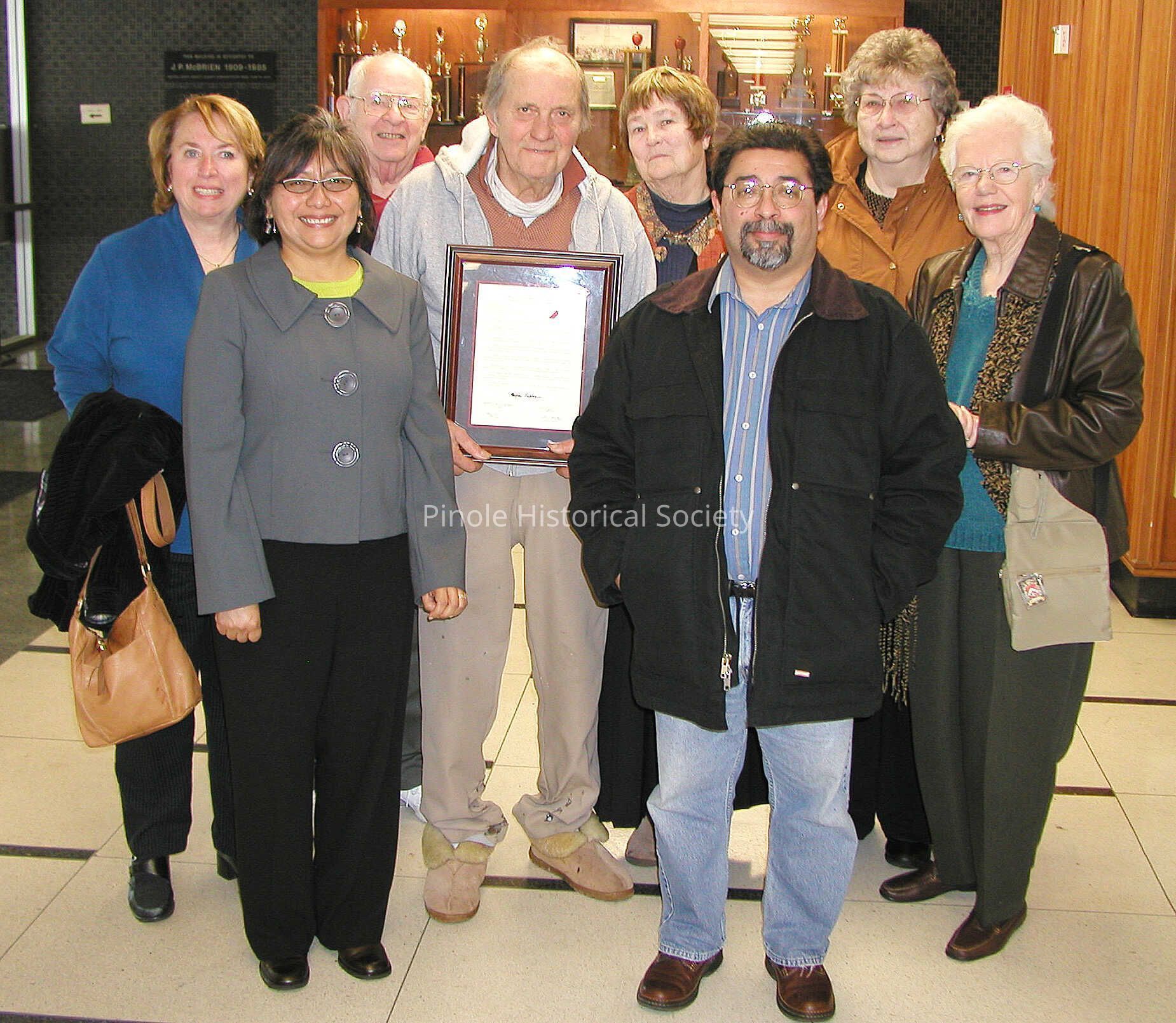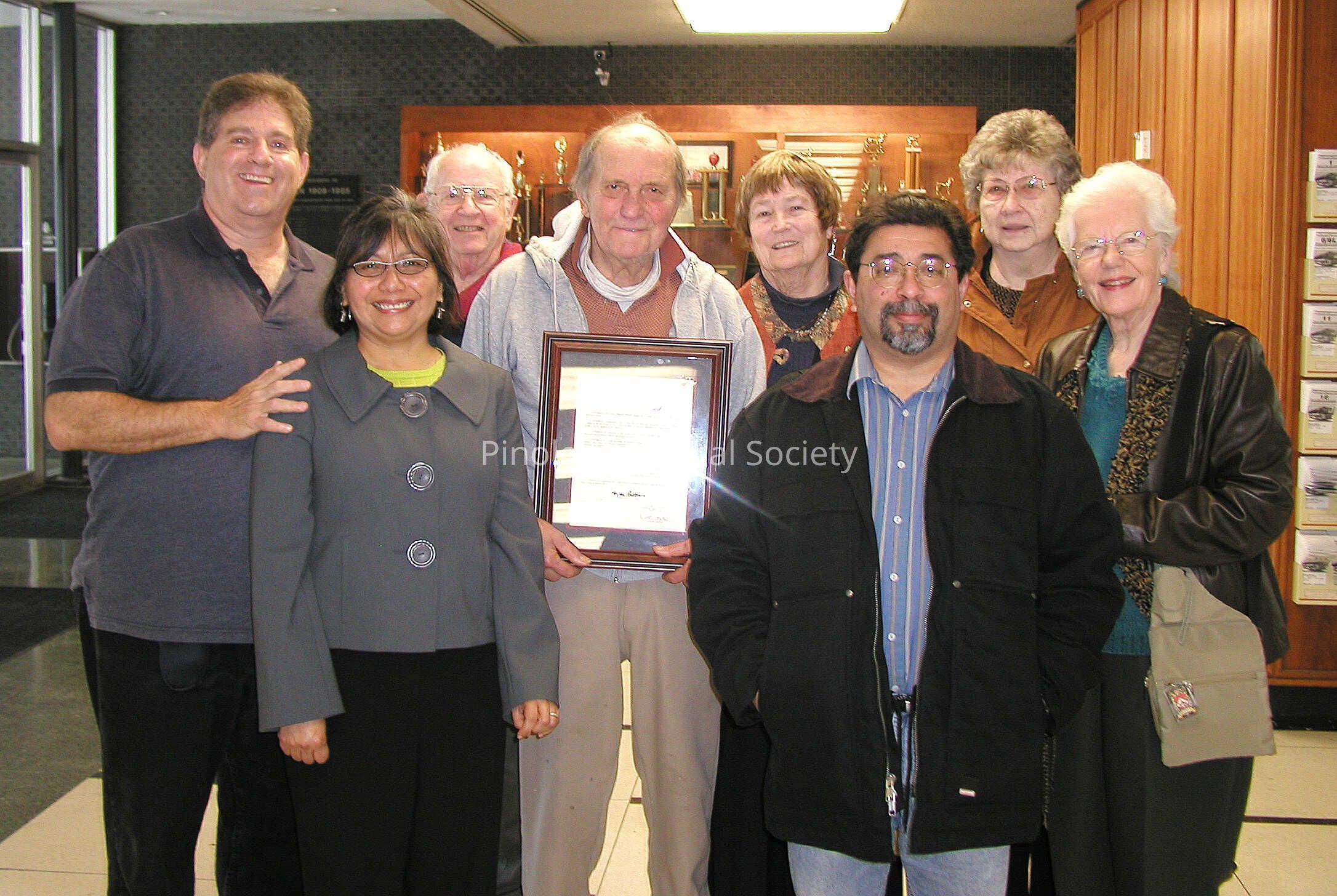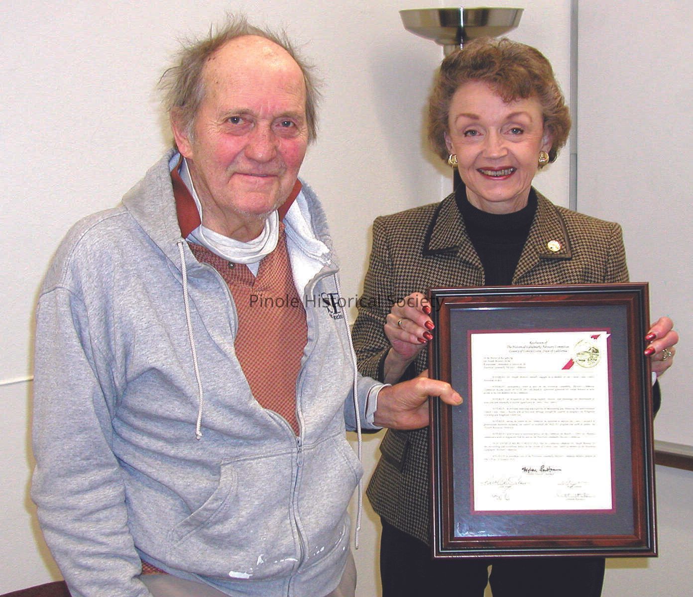 On January 13, 2010 Joe Mariotti receives a commemorative plaque from the Historical Landmarks Advisory Committee for his contributions to the identification and preservation of historical sites in Pinole, California.Copyright