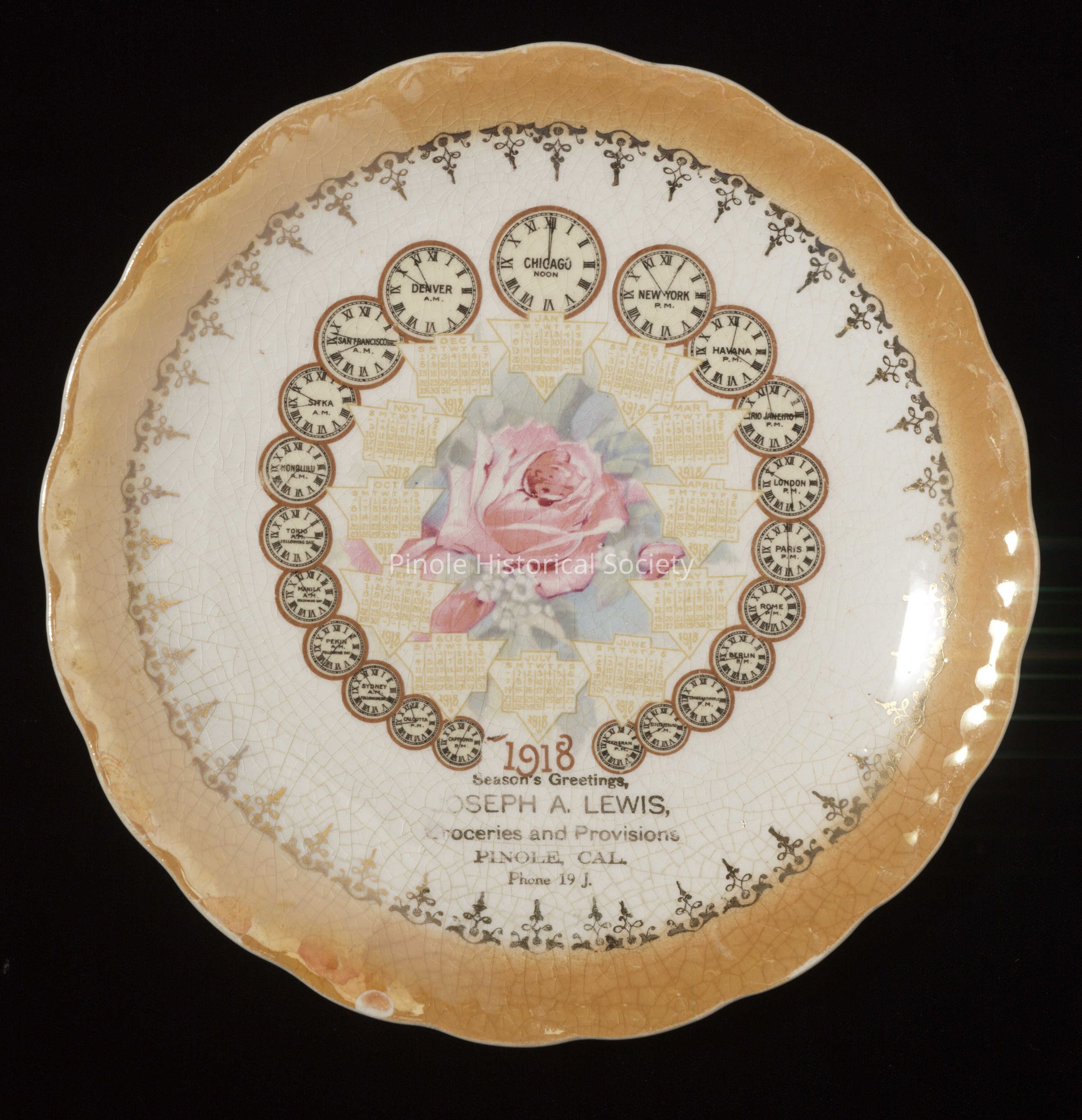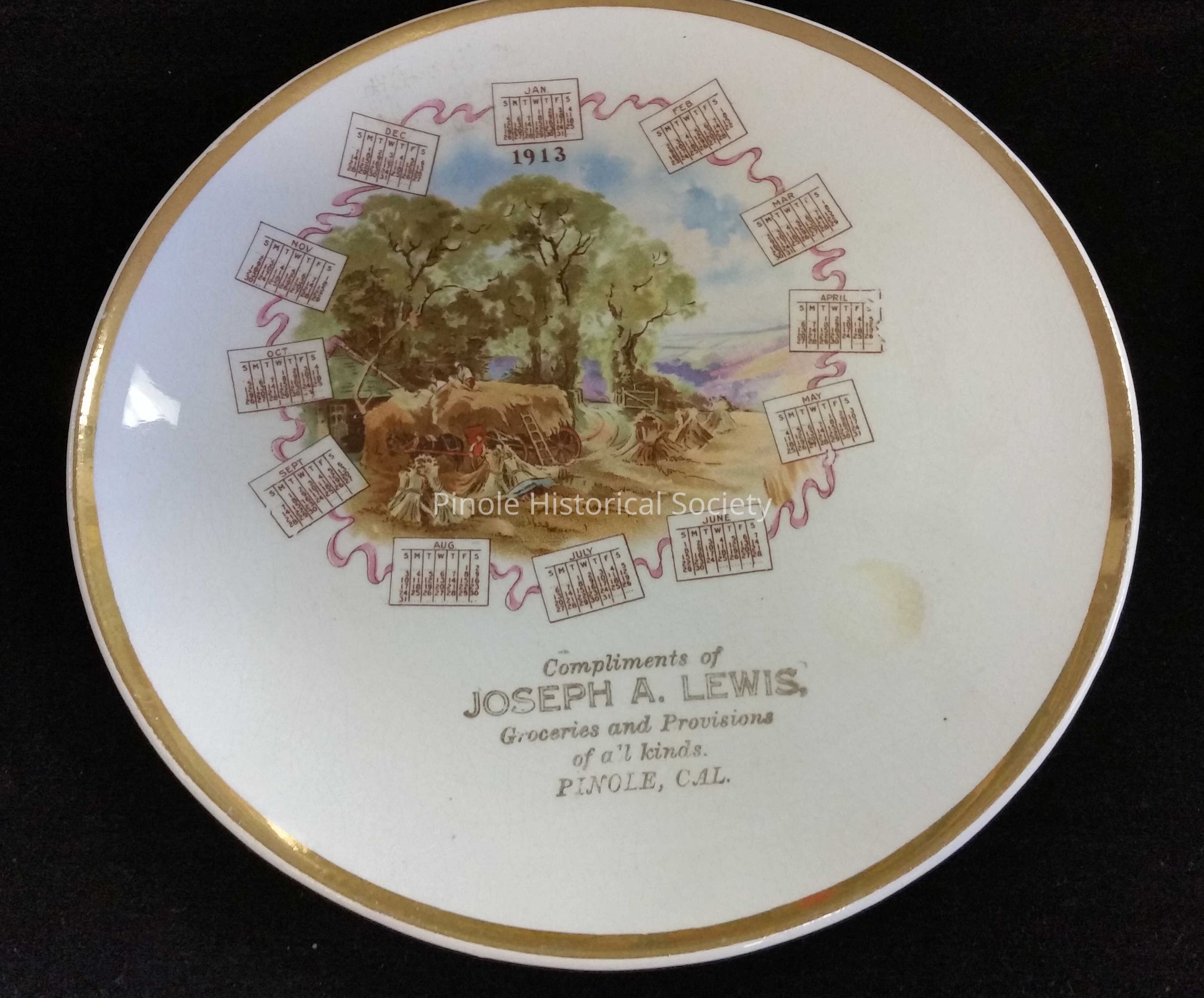 JOSEPH LEWIS STORE: Charles Clark sold his grocery store to Joseph Lewis in 1912 and went to work for Hercules Powder Company. Lewis delivered groceries in a horse cart, accompanied by his dog, Star. Every year he gave commemorative china plates to his customers. The Pinole Historical Society has several of them, donated by Marilyn Ponting. In 1920, Joseph Lewis sold the grocery store to his brother, Bill. In the 1940s it was sold to Glen Ellis and remained the only grocery store at the east end of the city. Then came Mickey’s Bait Shop and Clark Rentals. Sabor Latino 17, a Mexican restaurant, and Amazing Haircuts, are in this building now.Copyright